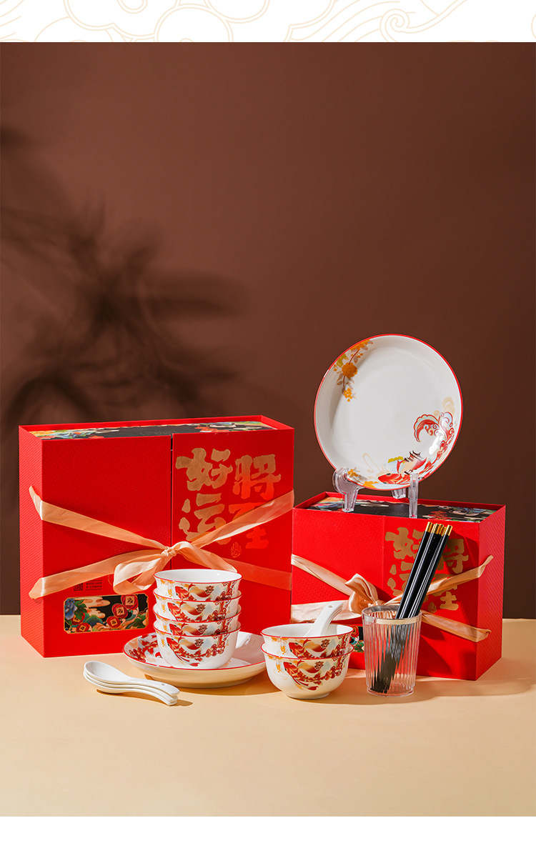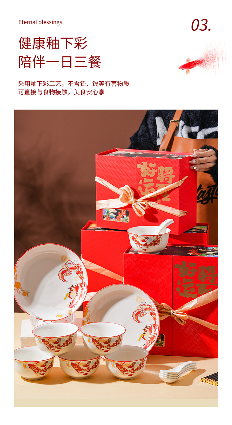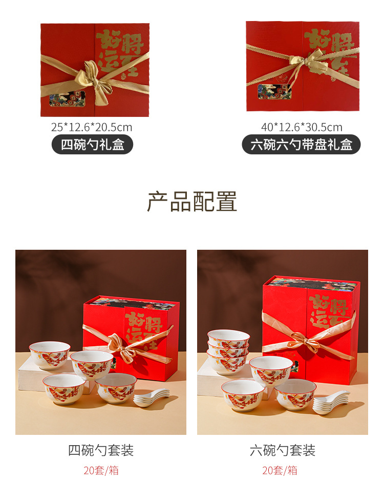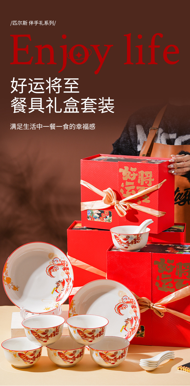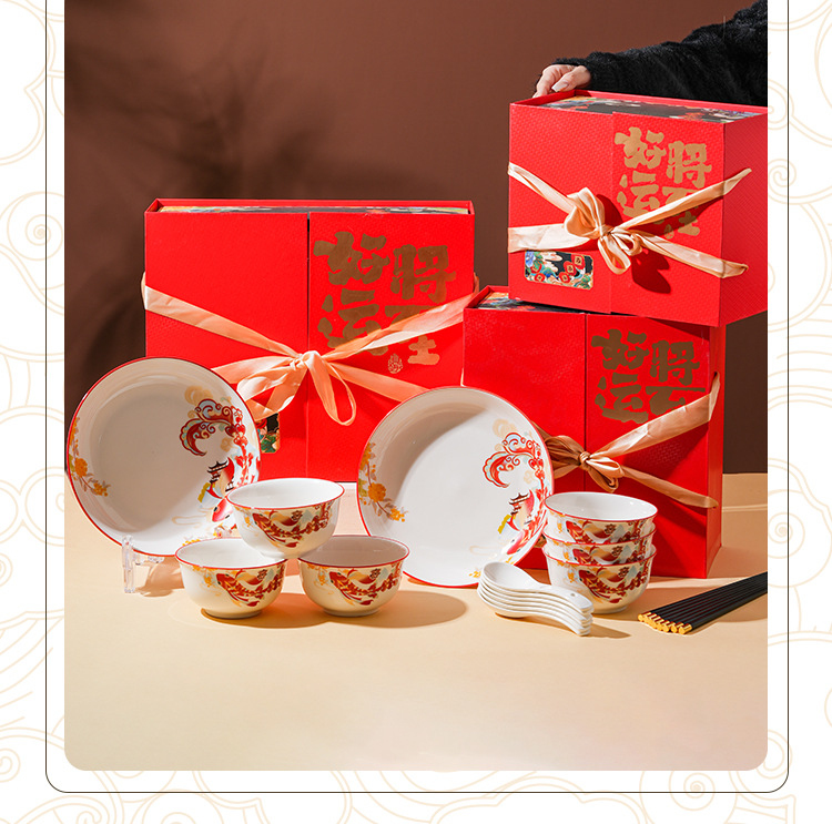 好运将至陶瓷餐具礼盒装碗勺礼品活动商务乔迁家用伴手礼碗筷套装