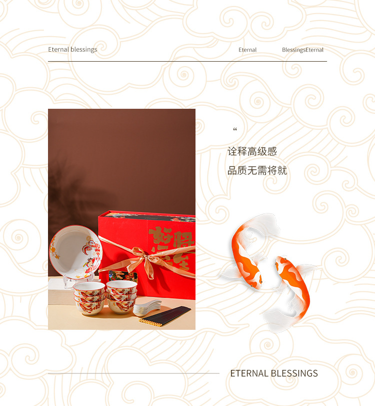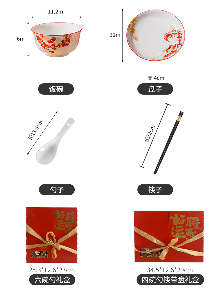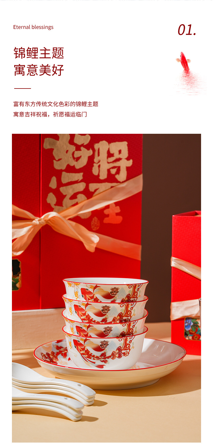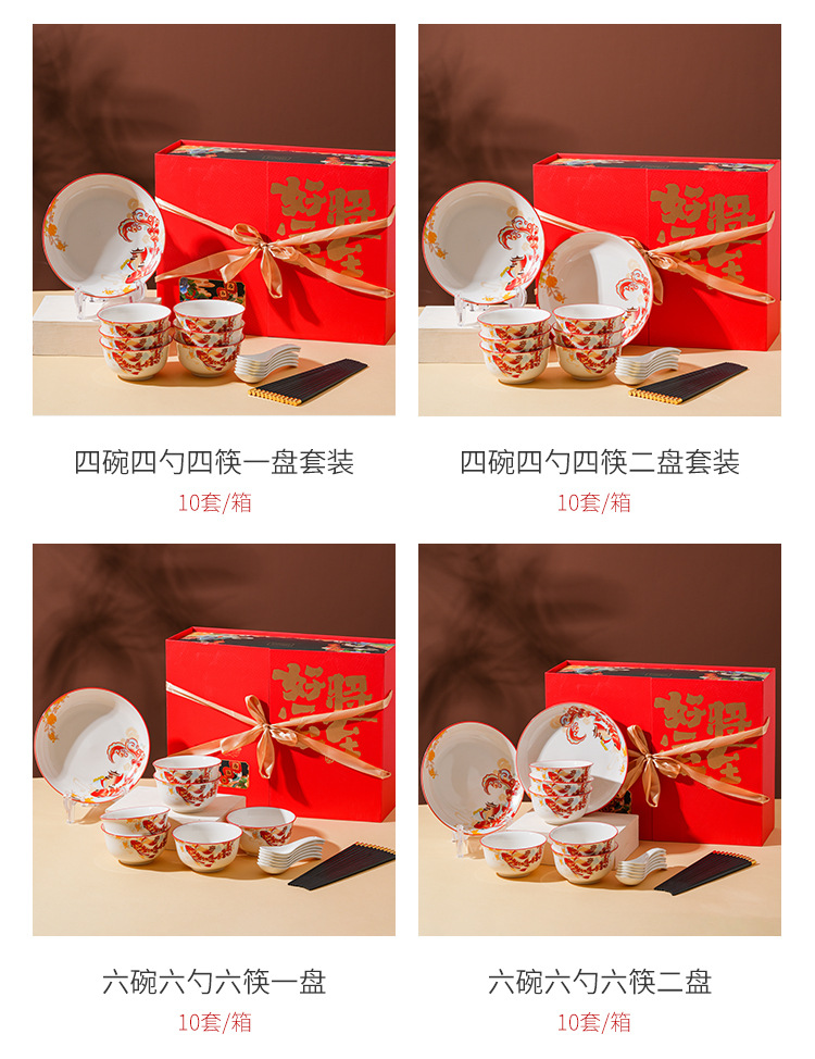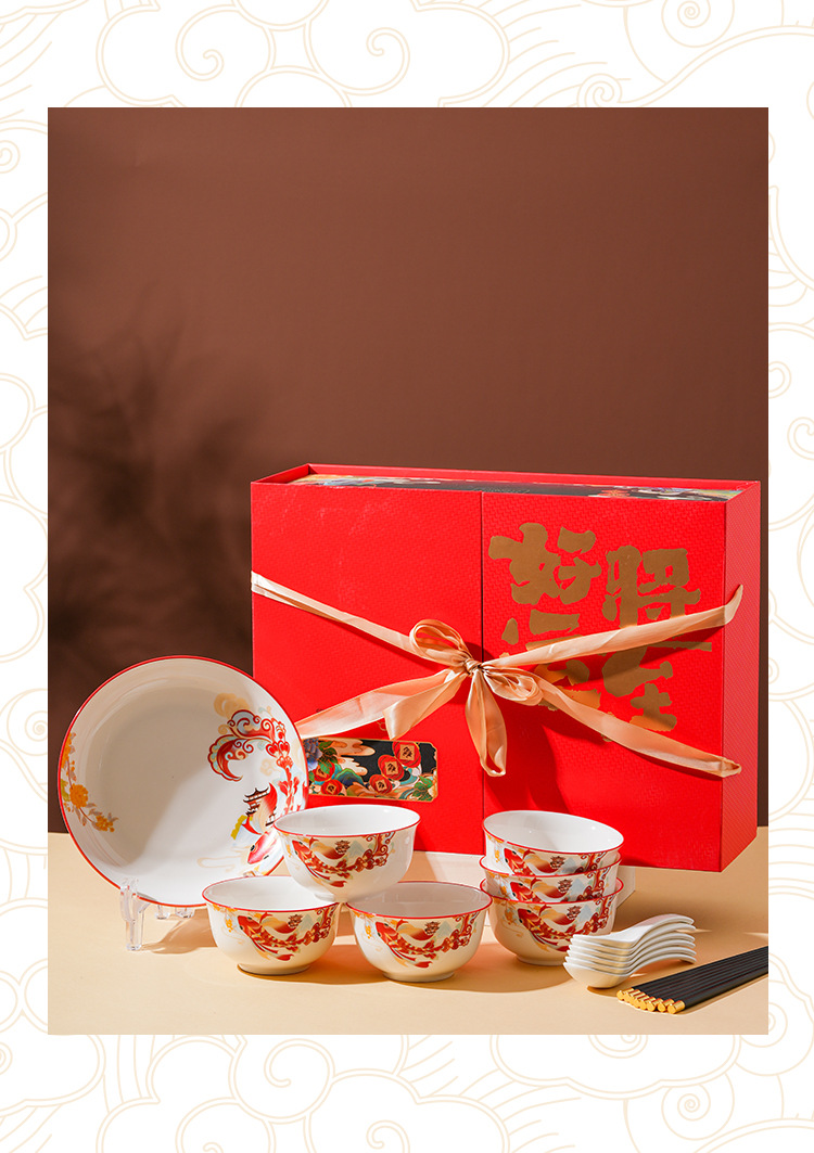 好运将至陶瓷餐具礼盒装碗勺礼品活动商务乔迁家用伴手礼碗筷套装