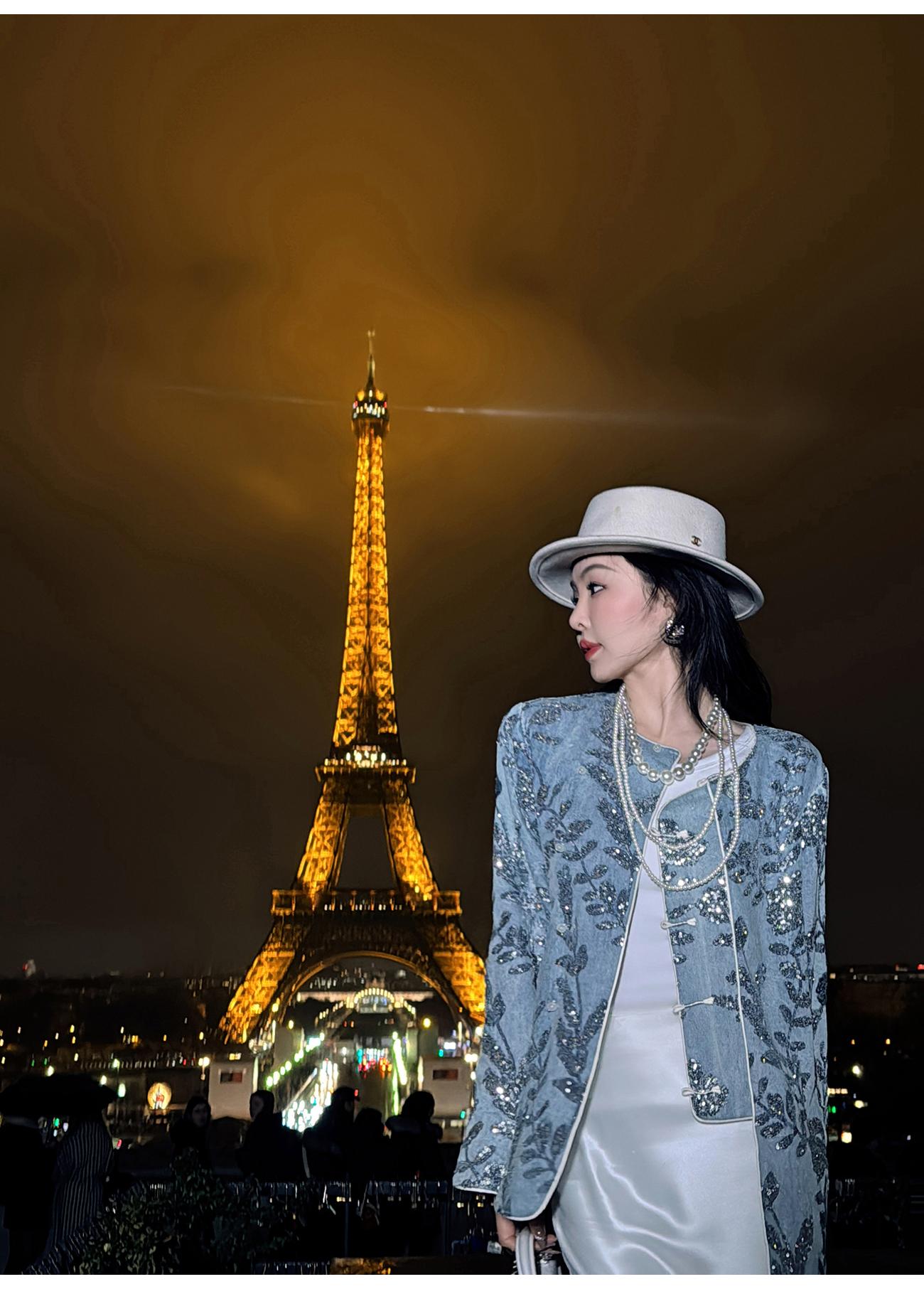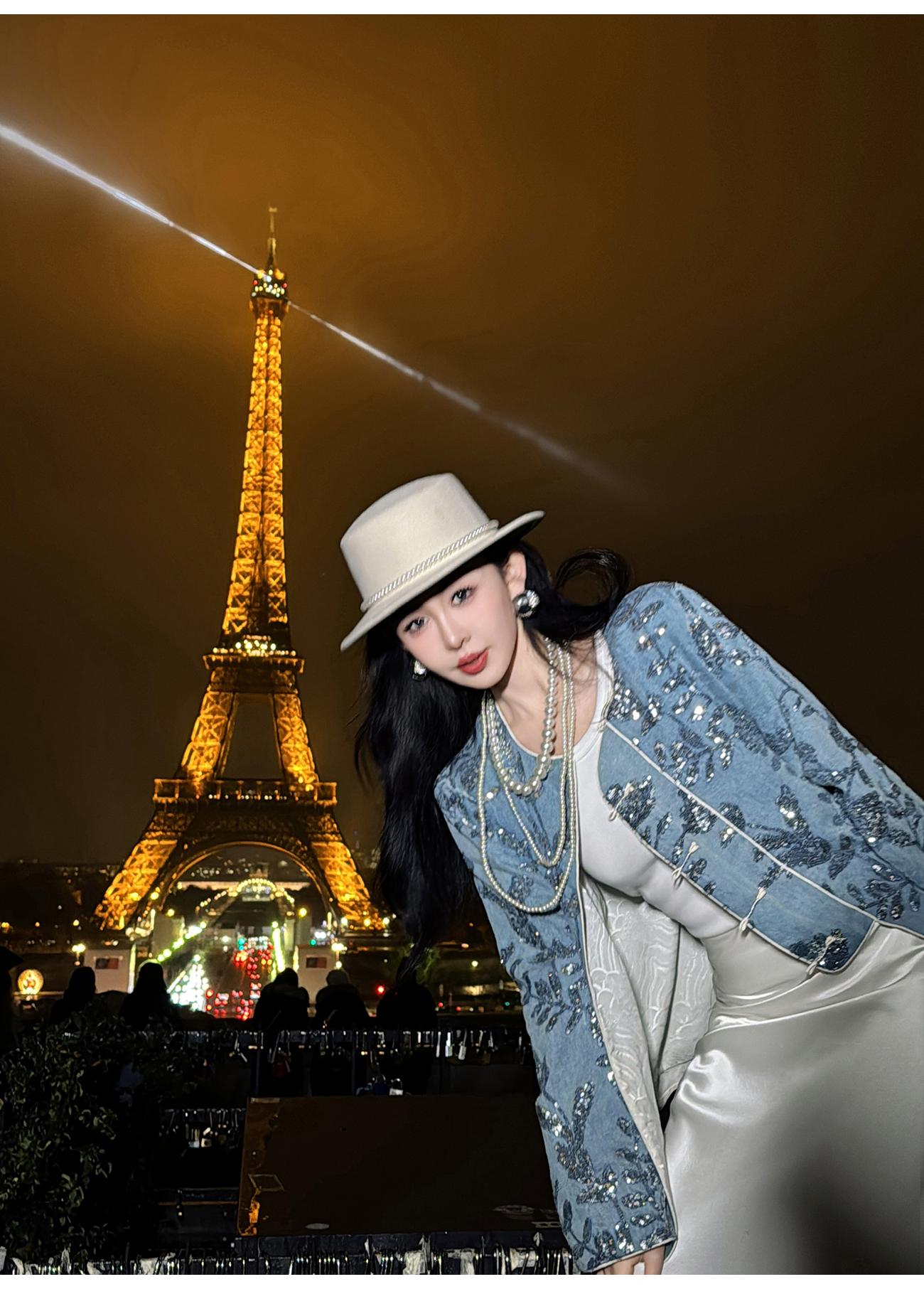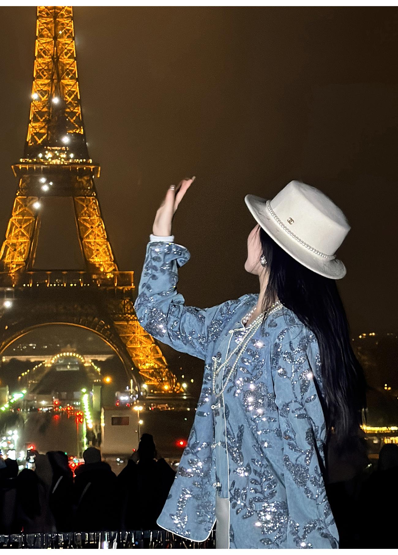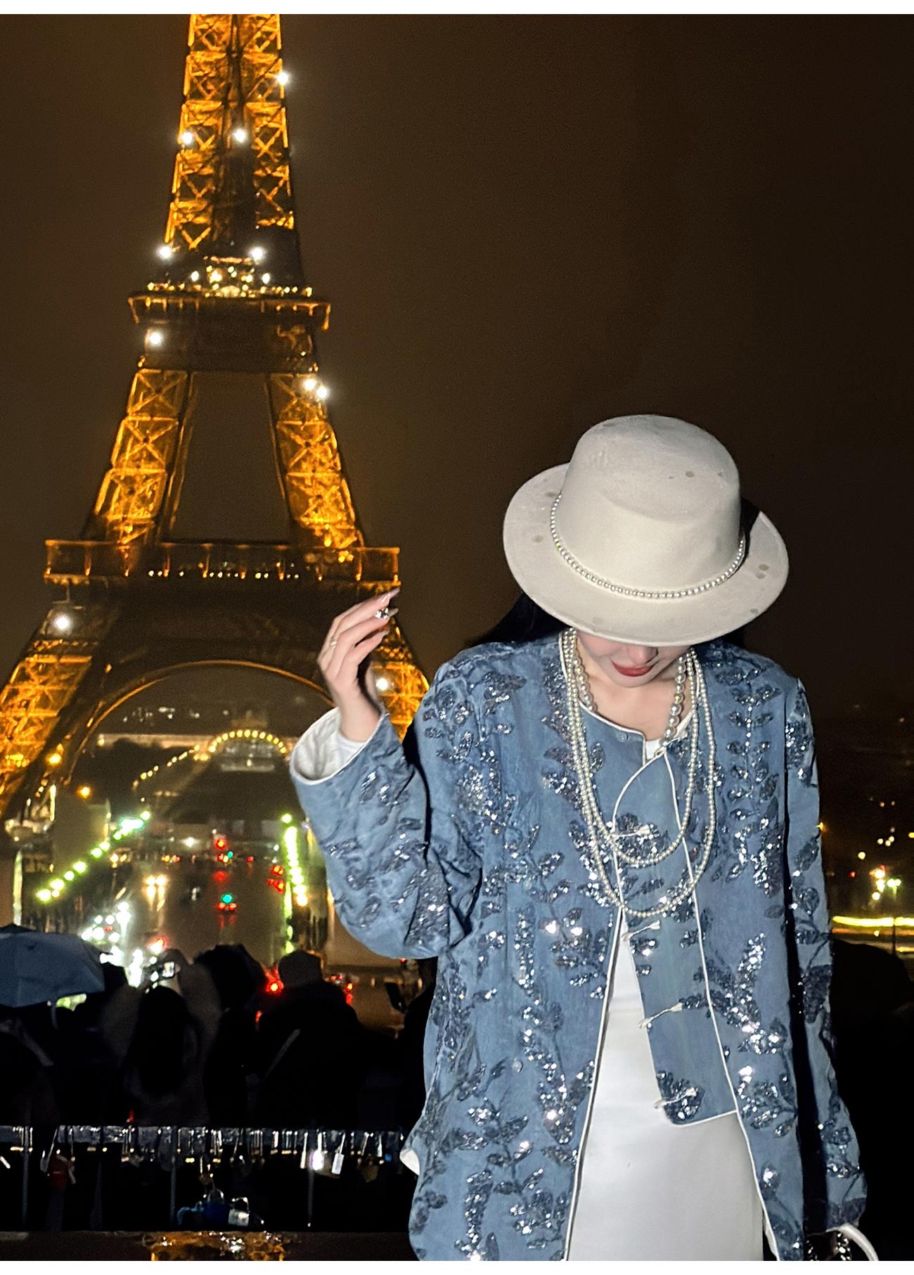 BeQueenStory【暗香浮动】新中式重工珠片绣斜门襟提花水洗牛仔外套