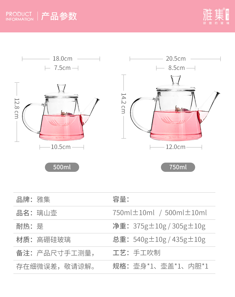 雅集玻璃壶璃山壶750ml(透明)