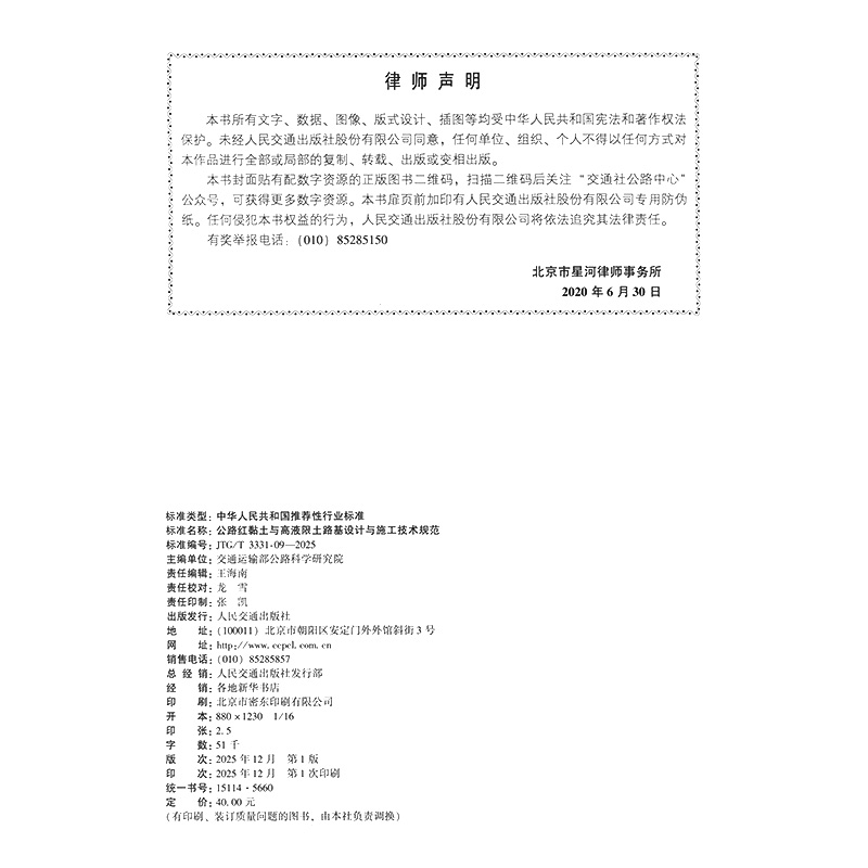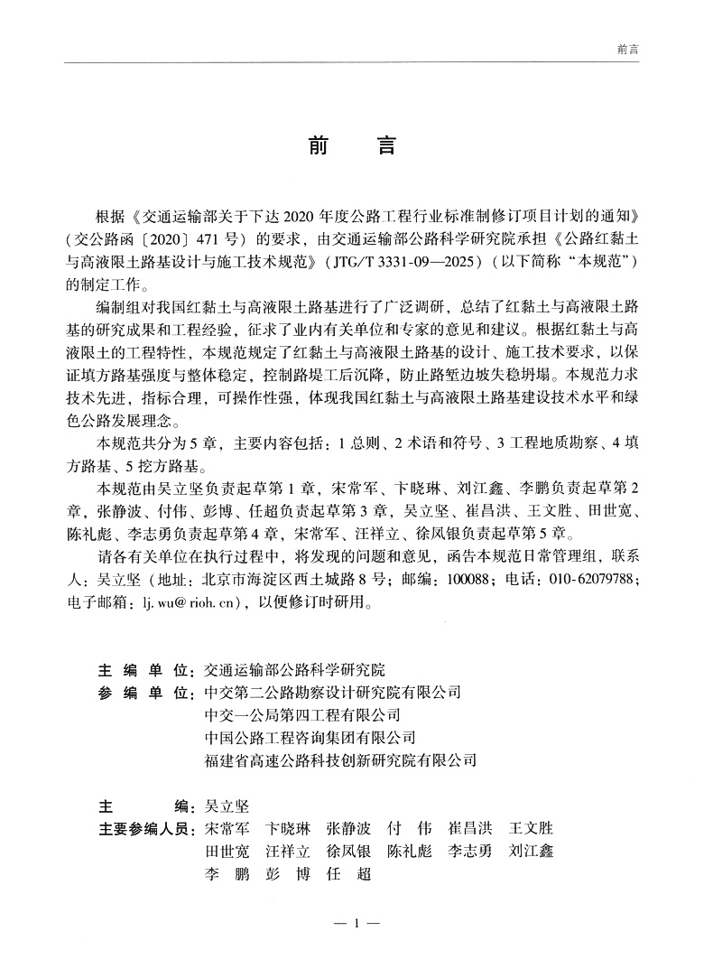 书名:公路红黏土与高液限土路基设计与施工技术规范(JTG/T 3331-09—2025)