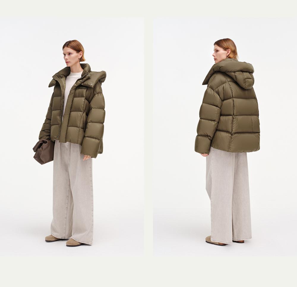 舒库羽绒服女2024冬匈牙利进口鹅绒服气质连帽外套