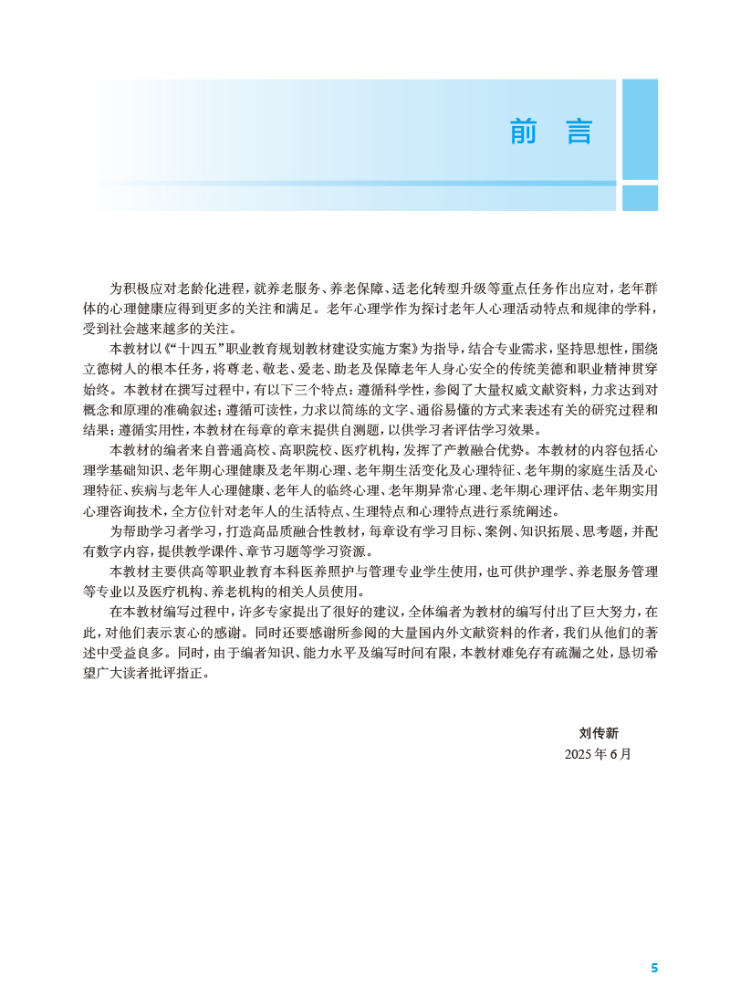 老年心理学 十四五规划教材全国高等职业教育本科教材 刘传新 主编 供医养照护与管理专业用 医养照护与管理 人民卫生出版社