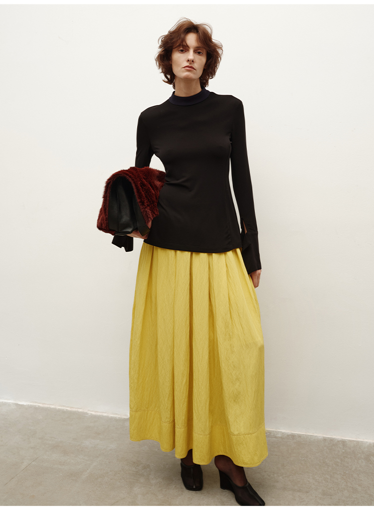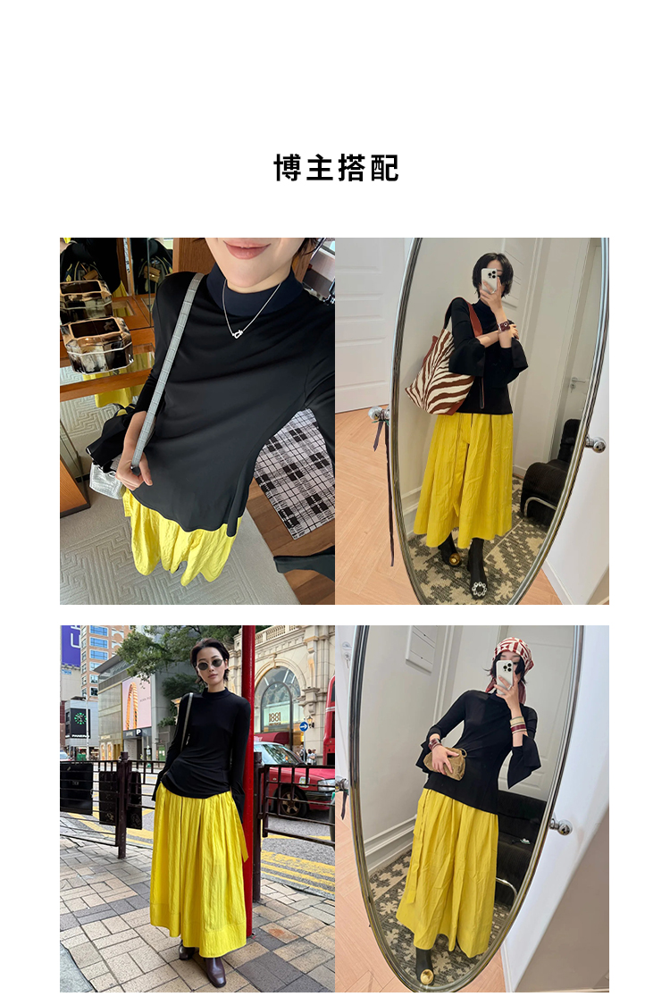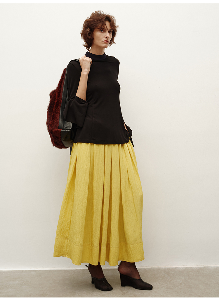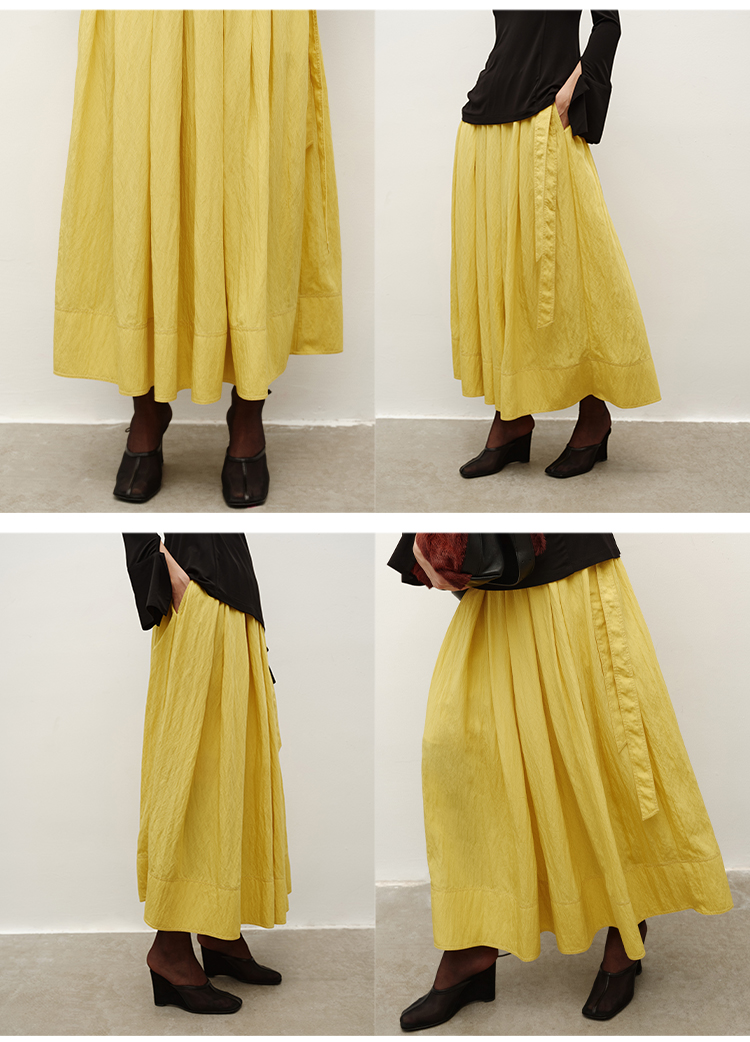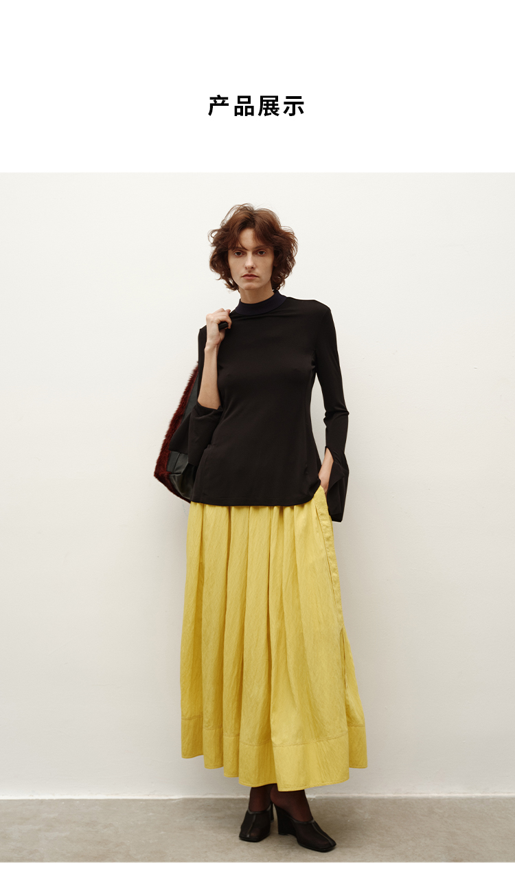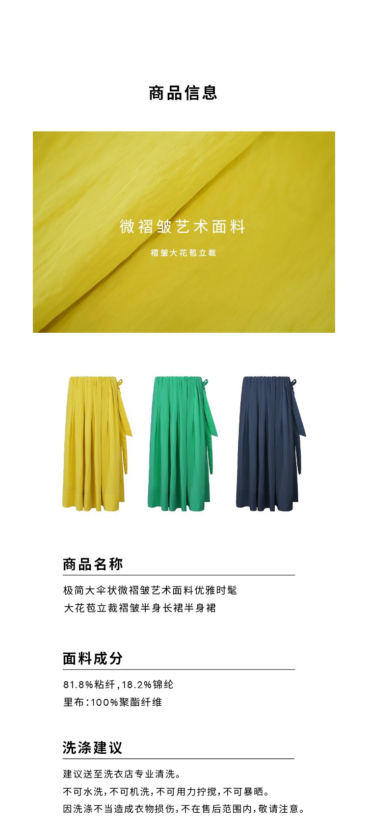 HIDEMI 【董生活同款】极简大伞状微褶皱艺术面料优雅时髦大花苞立裁褶皱半身长裙半身裙