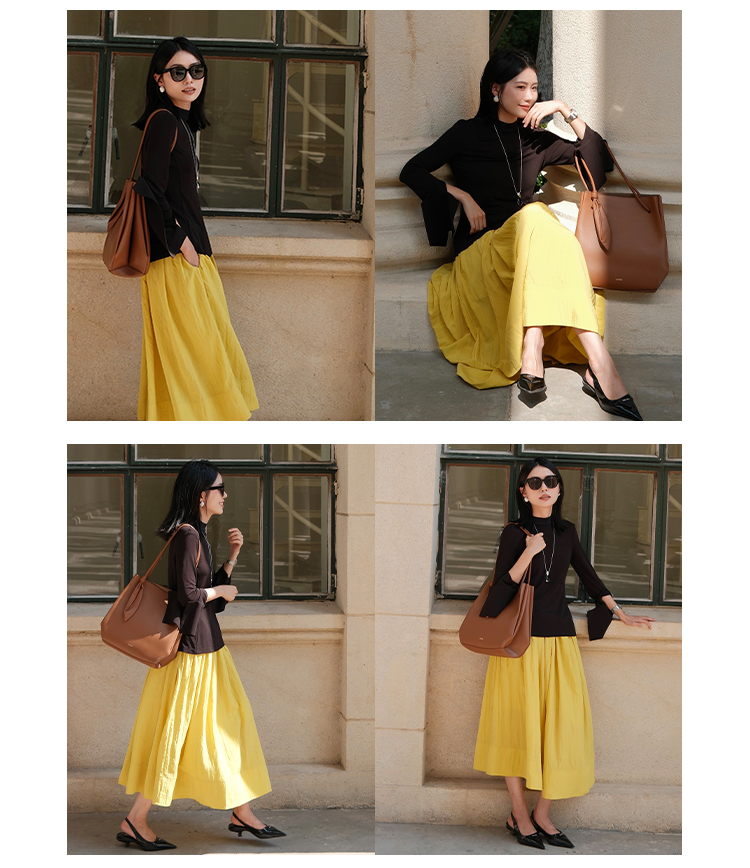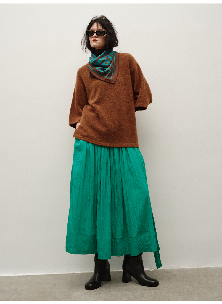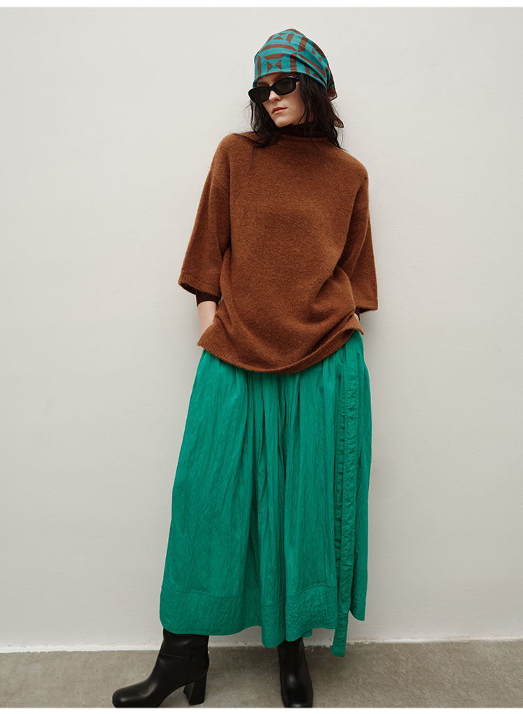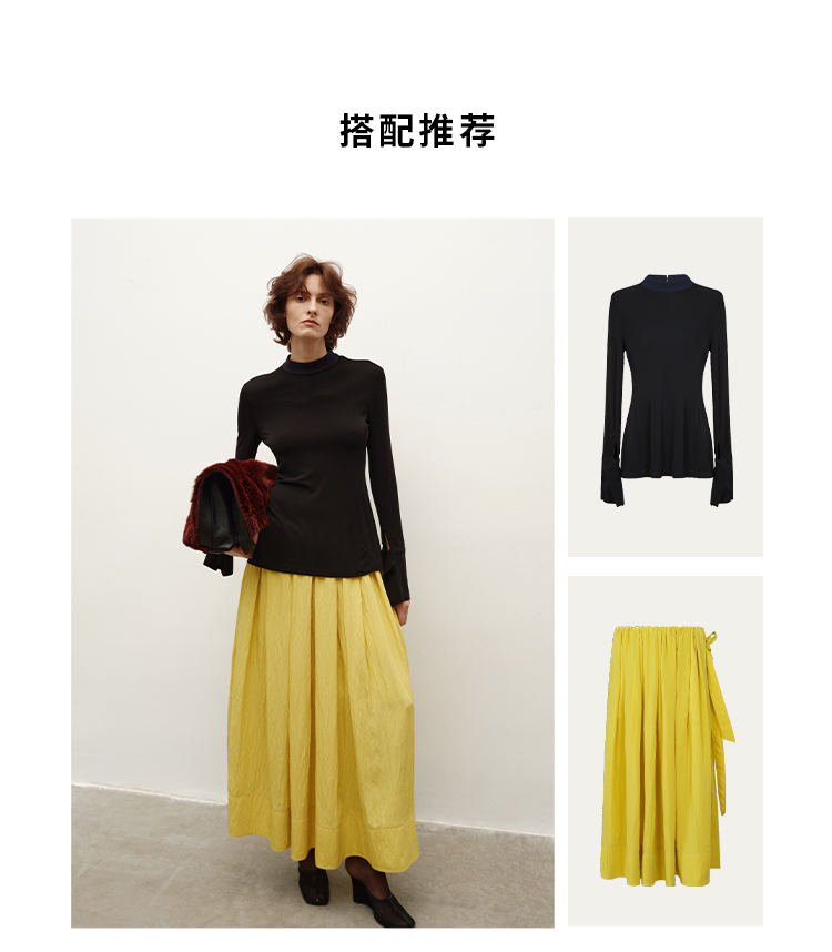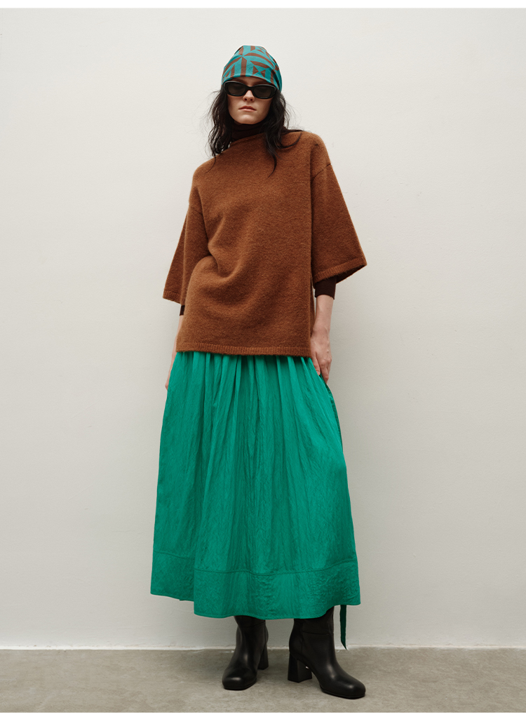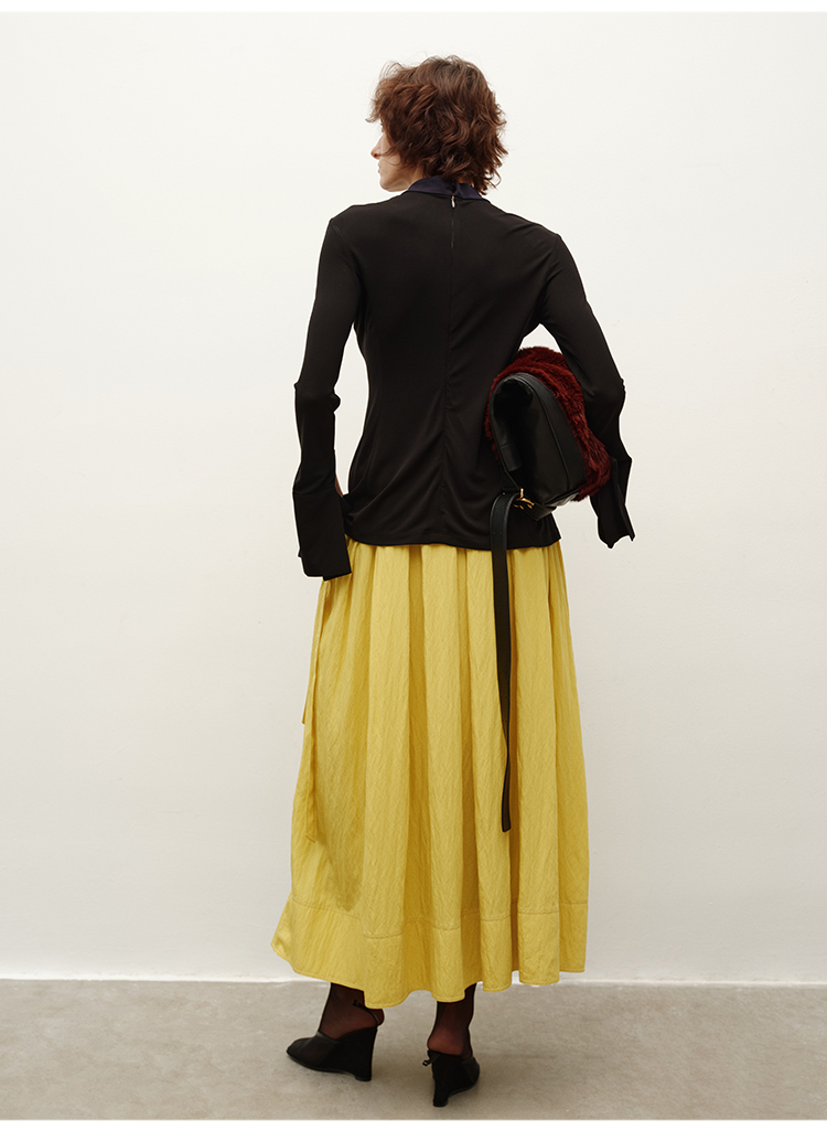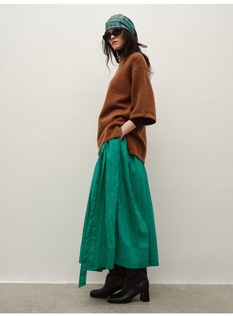 HIDEMI 【董生活同款】极简大伞状微褶皱艺术面料优雅时髦大花苞立裁褶皱半身长裙半身裙