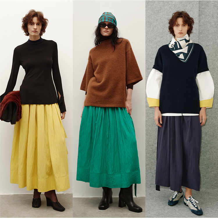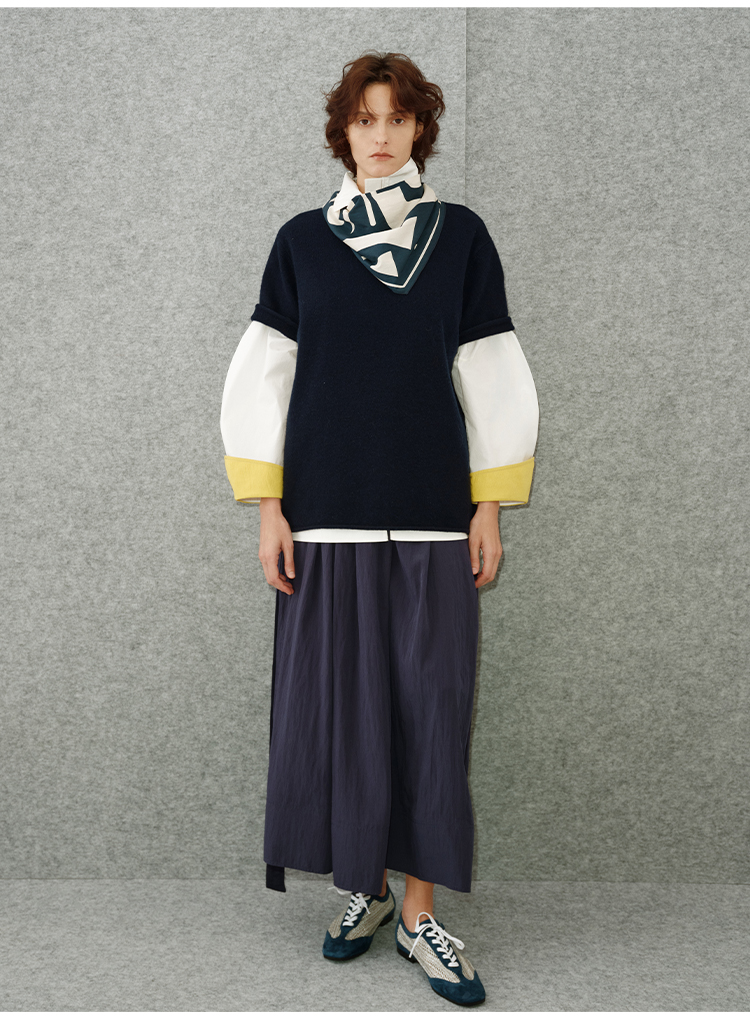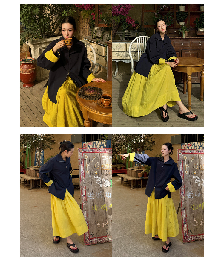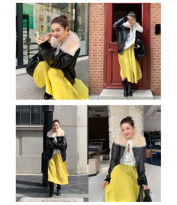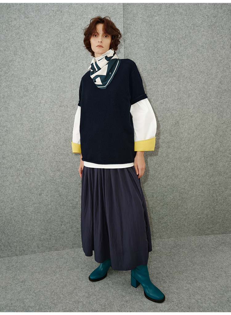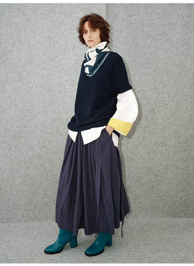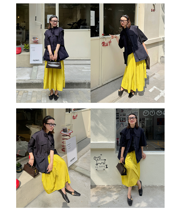 HIDEMI 【董生活同款】极简大伞状微褶皱艺术面料优雅时髦大花苞立裁褶皱半身长裙半身裙