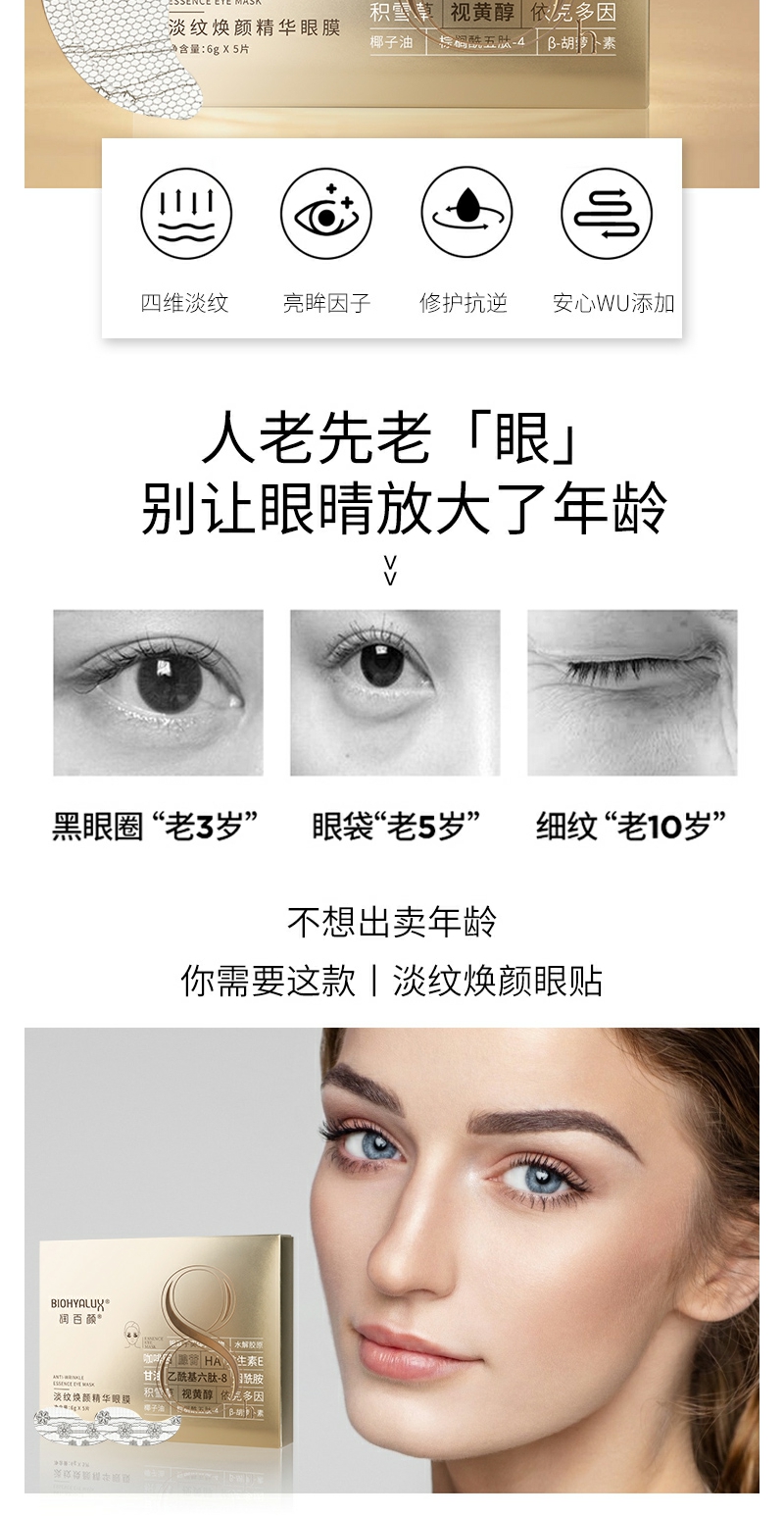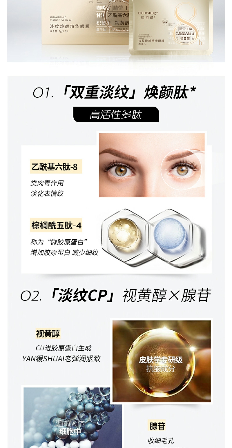 【YZ】润百颜淡纹精华眼膜保湿紧致冻龄胶原蛋白滋养睡眠面膜