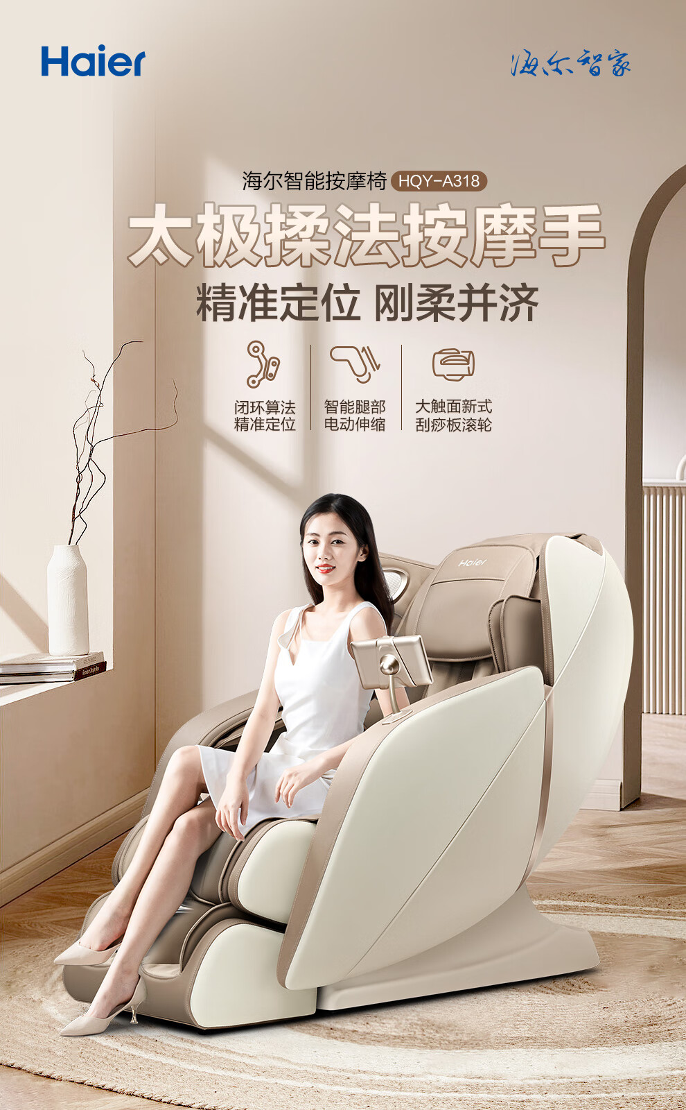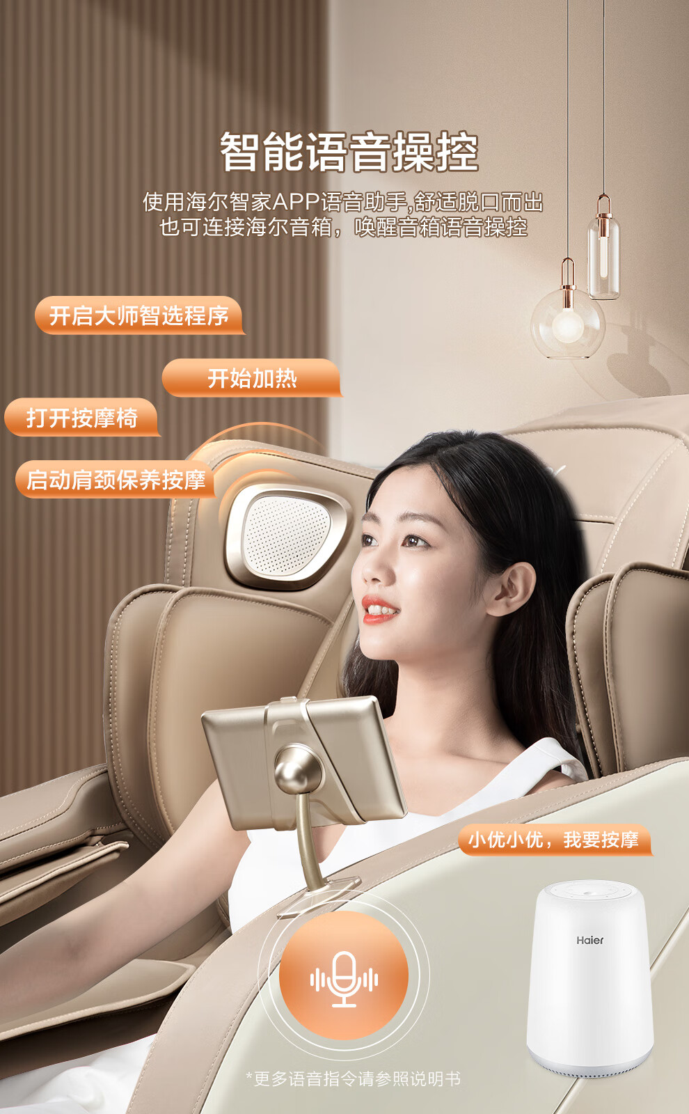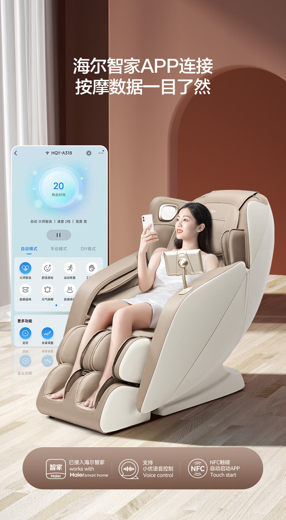 海尔(haier)按摩椅家用全身零重力全自动多功能电动按摩沙发椅子3D智能语音太空舱猫大师生日礼物实用送爸妈 HQY-A318ZU1