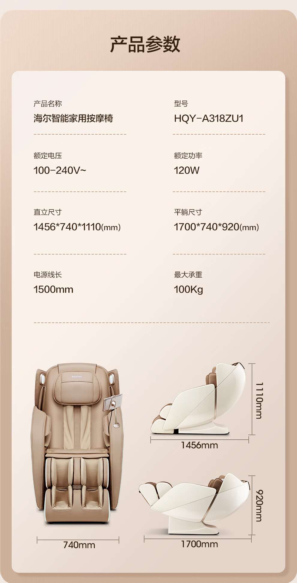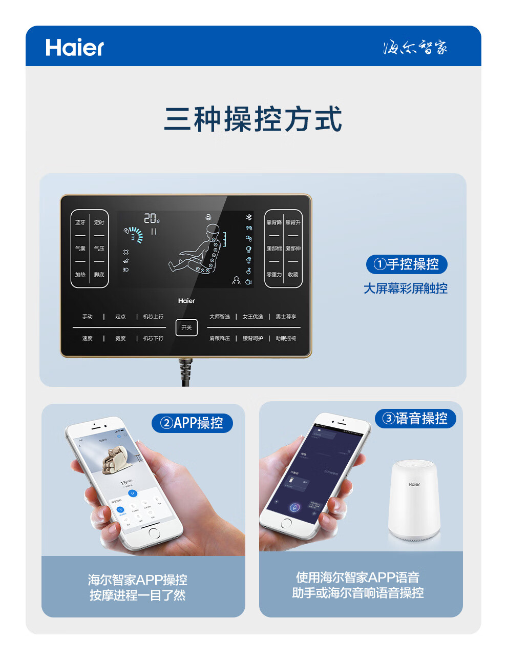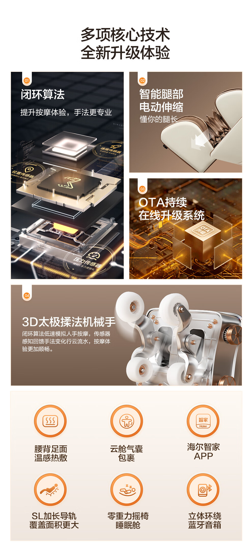海尔(haier)按摩椅家用全身零重力全自动多功能电动按摩沙发椅子3D智能语音太空舱猫大师生日礼物实用送爸妈 HQY-A318ZU1