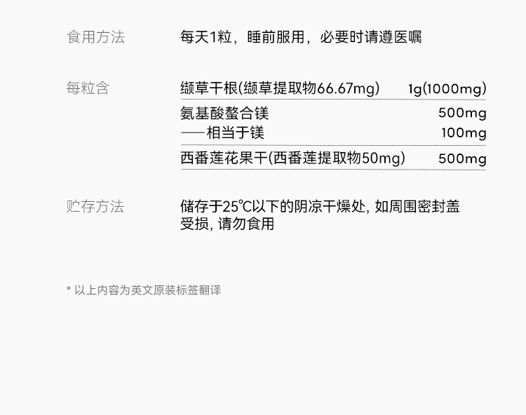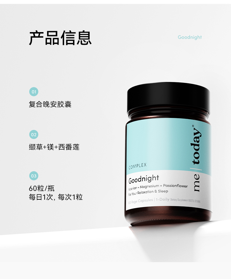 ²【MT新西兰进口晚安胶囊】缬草根1000mg+氨基酸螯合镁500mg+西番莲提取物50mg 60粒/瓶 HM02-CRMM-YYSJ
