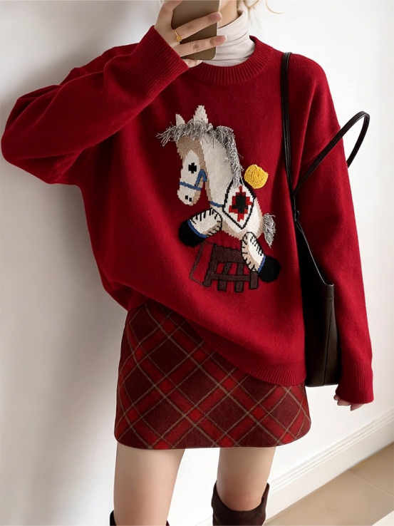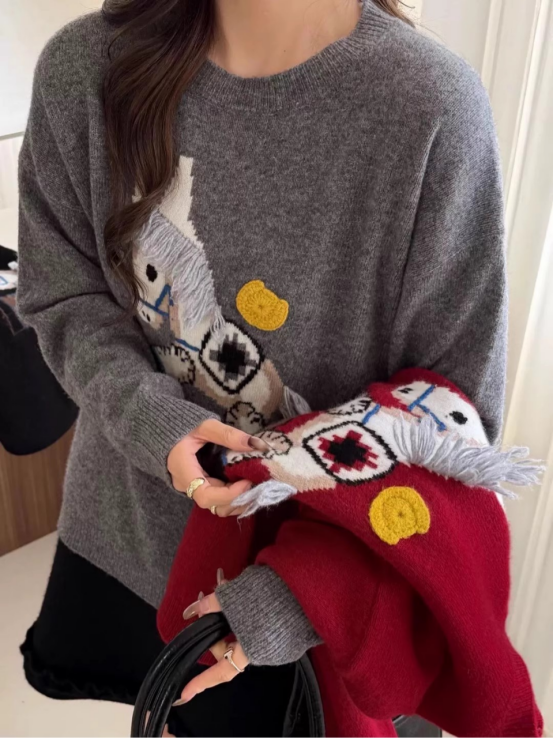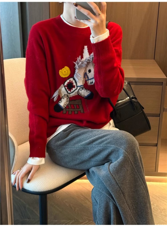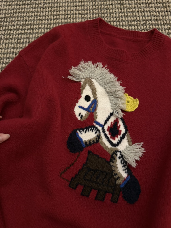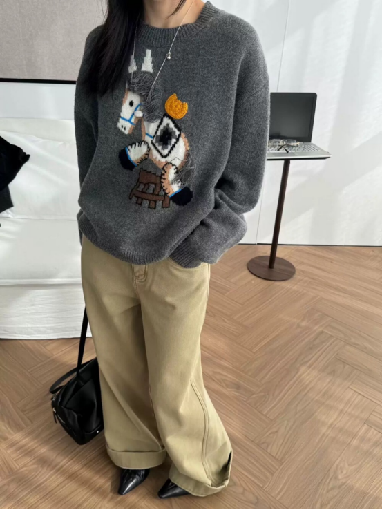 𝐰𝐮敌好穿的卡通小马毛衣呀~ 随手抓拍都好看📸 宽松版型不挑身材😎 百搭又减龄显嫩的经典毛衣系列!
