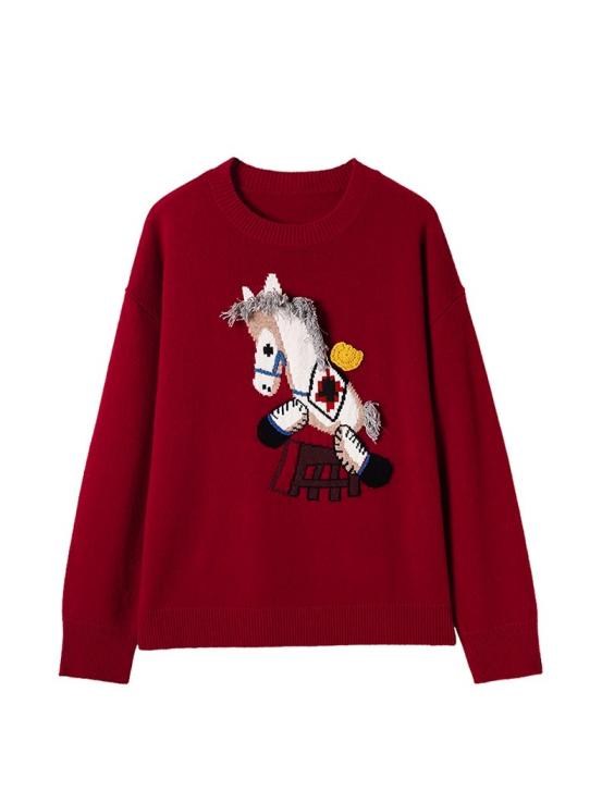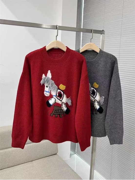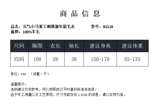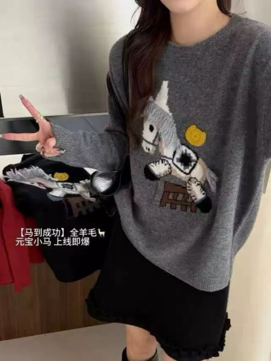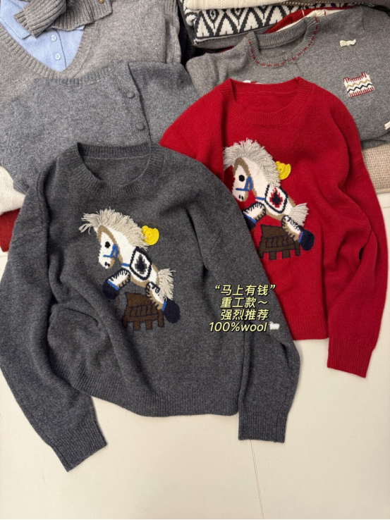 🥰【元气小马重工刺绣新年款羊毛衫92119】✅ 宽松的版型设计不挑人穿~既能包容腰腹赘肉又不会显得臃中拖沓✅ 一眼爱上的重工毛衣针织衫! 马到成功,马年必备!