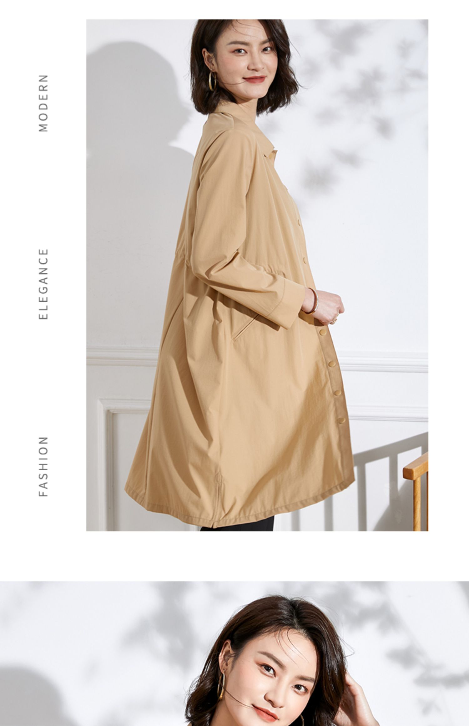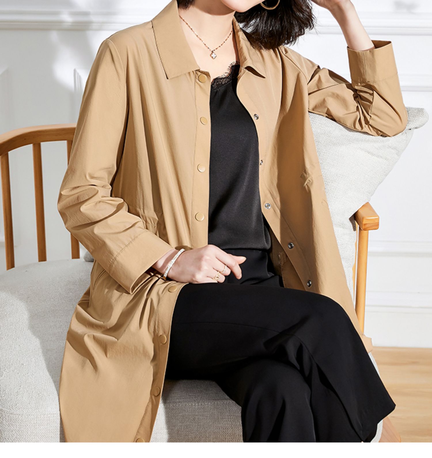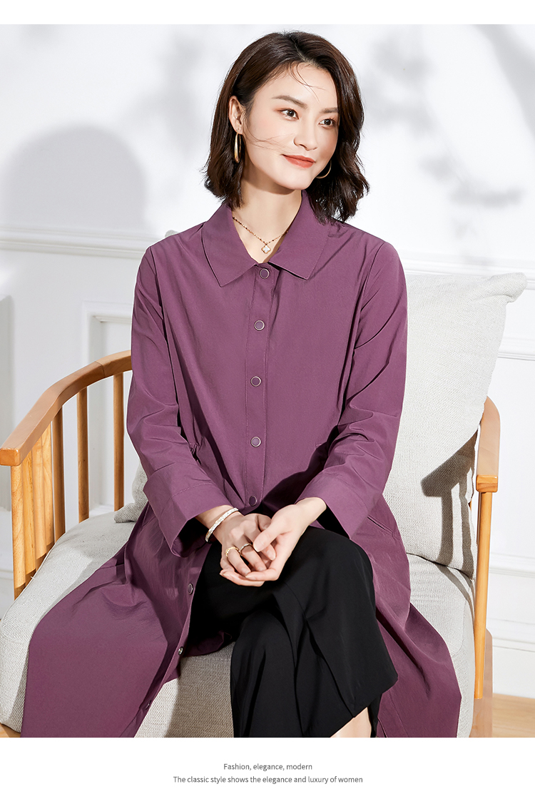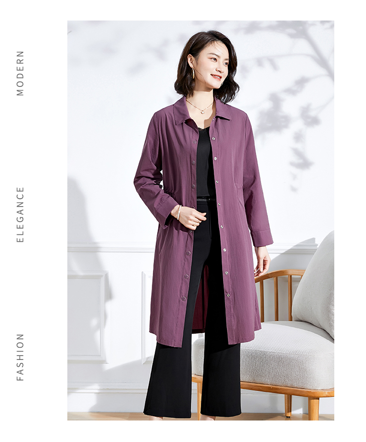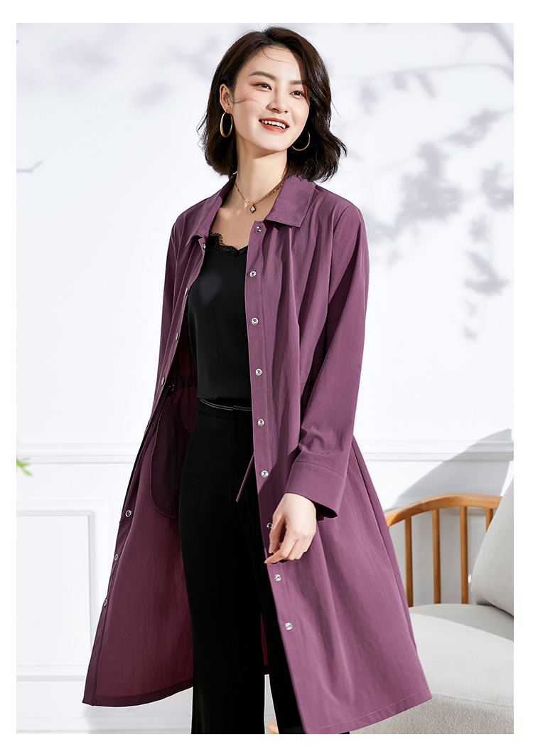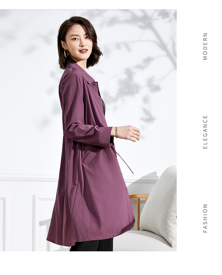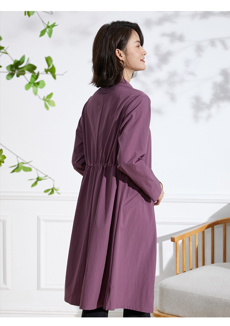 佐尔美2022 春夏新款 紫色卡其色长风衣大衣外套女E11FC19