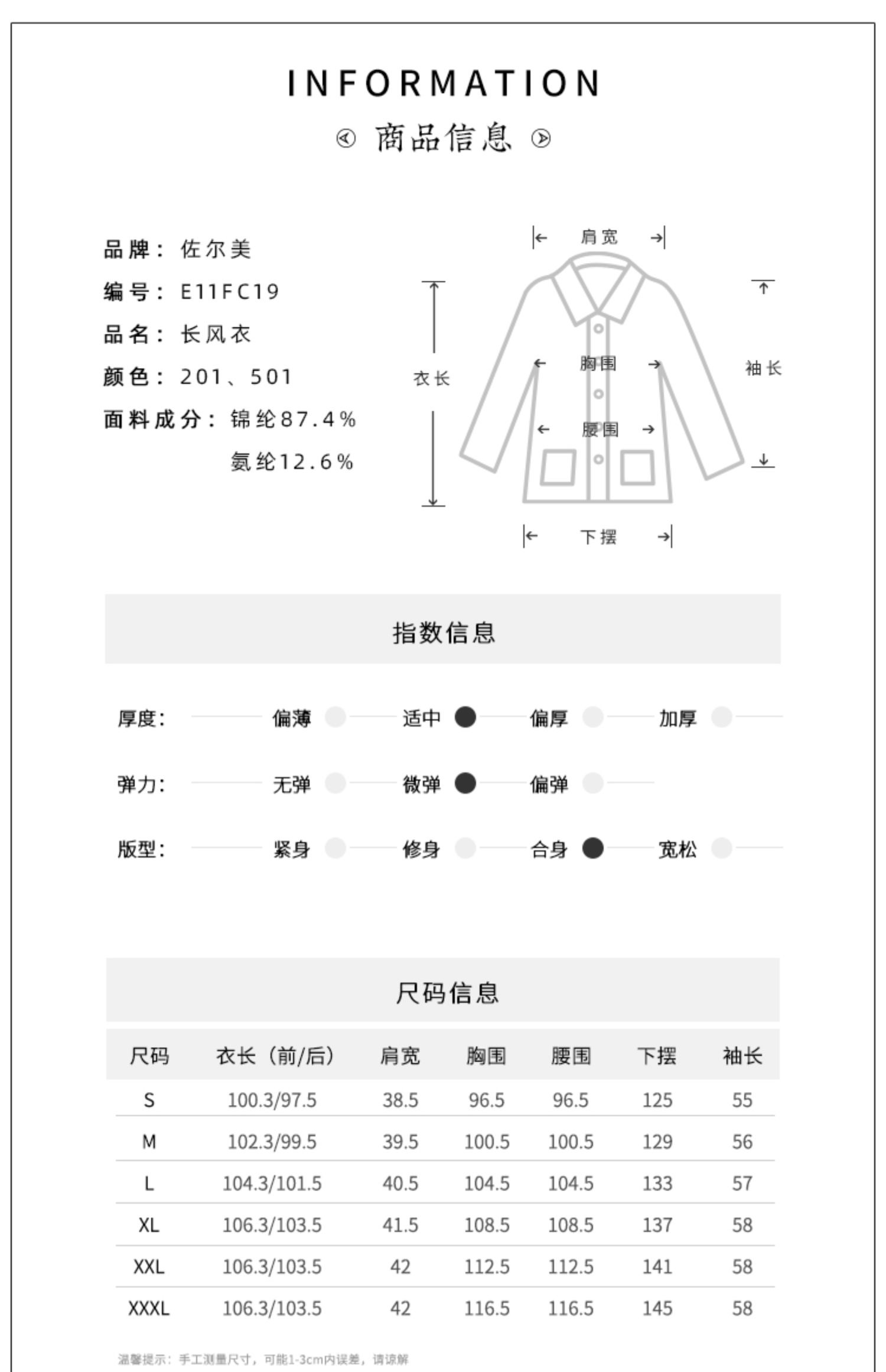 佐尔美新品秋季新品女士修身收腰七分袖气质V领长外套E81FZ15