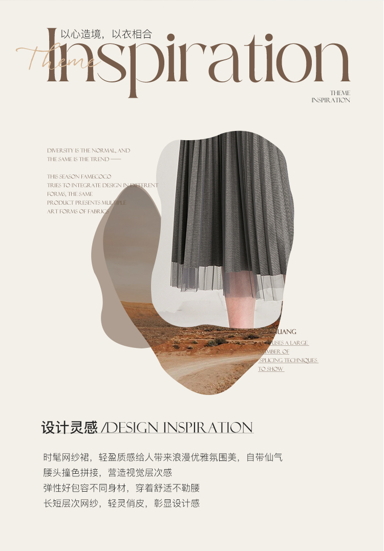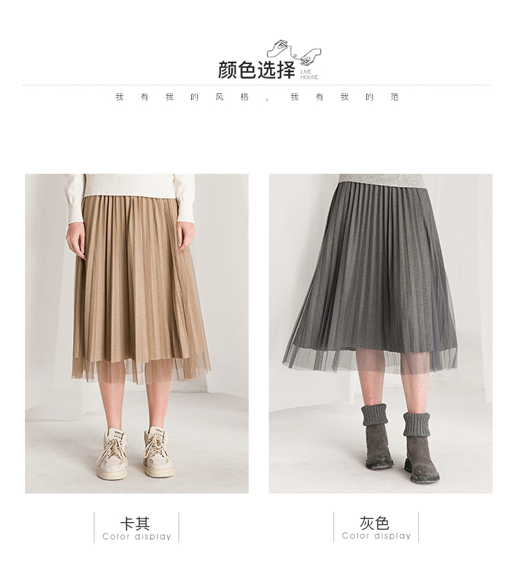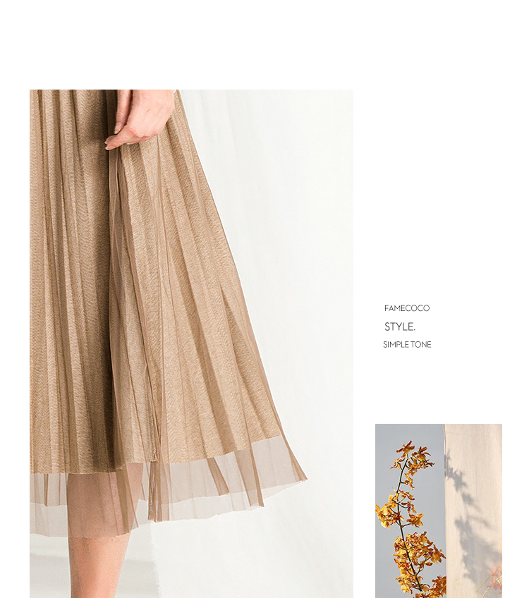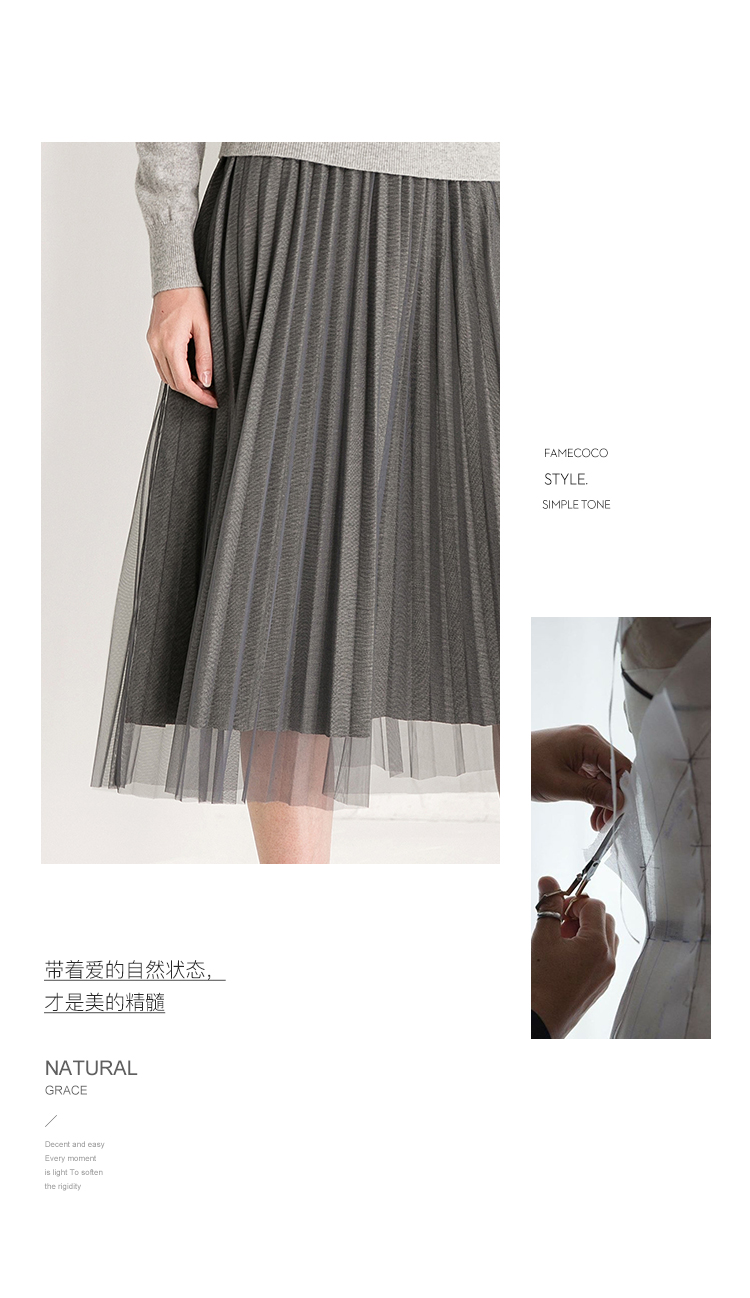 famecoco范可儿时尚百褶裙优雅纱裙半身裙F218HA006