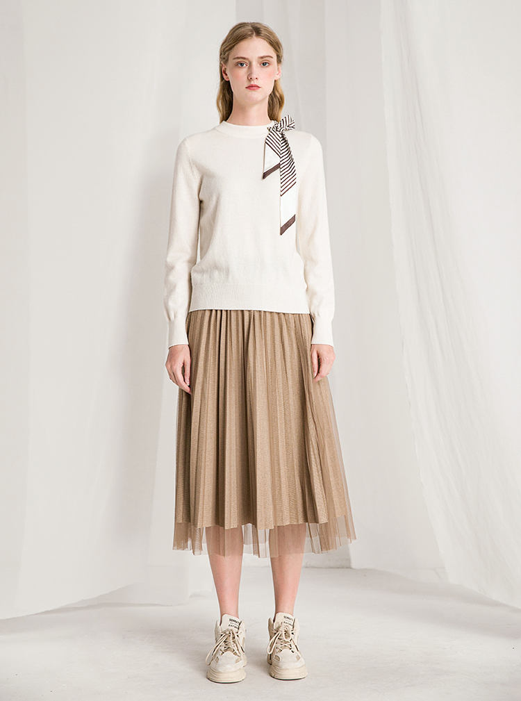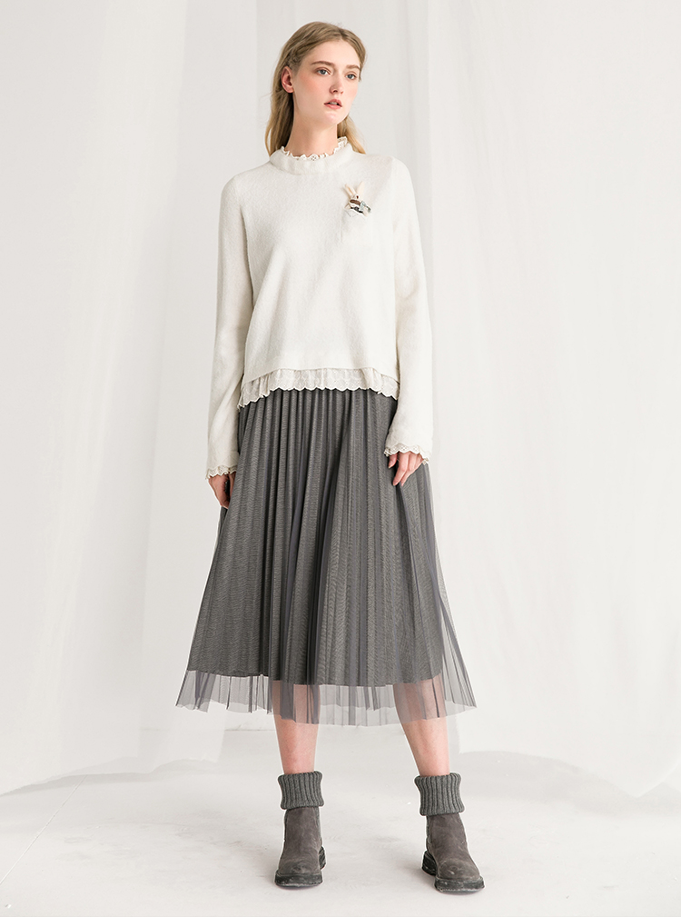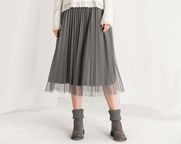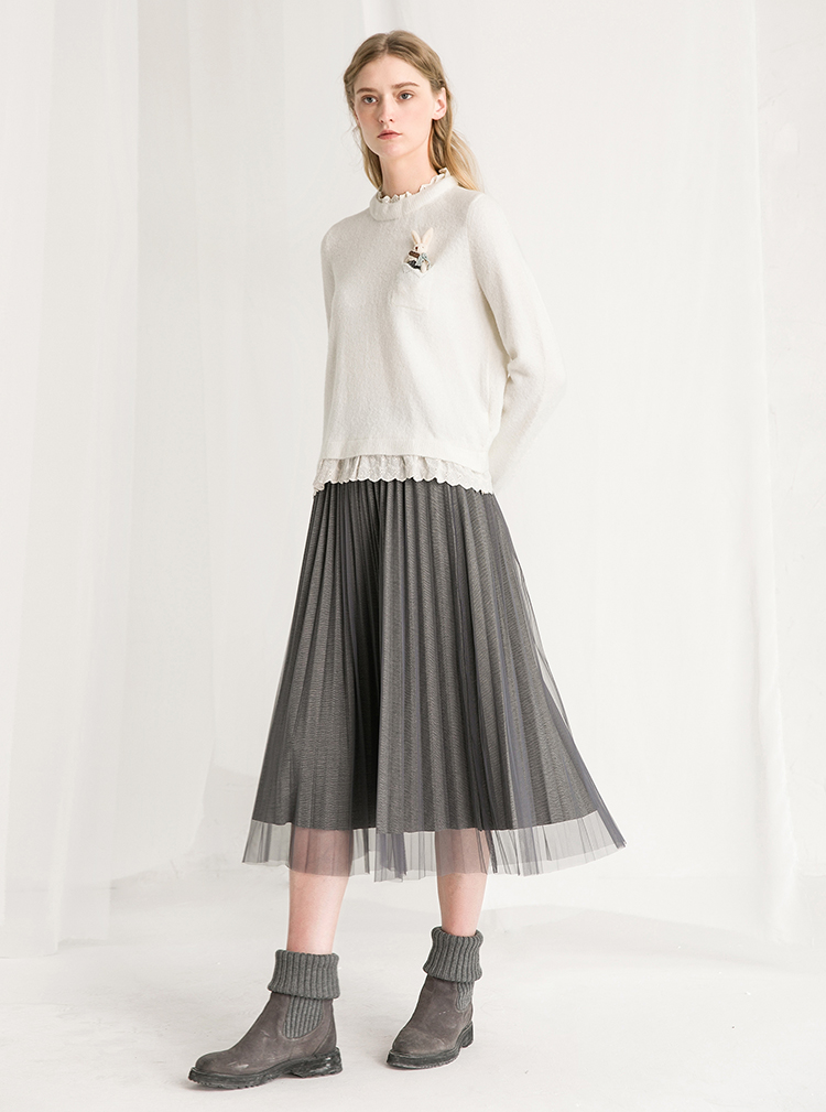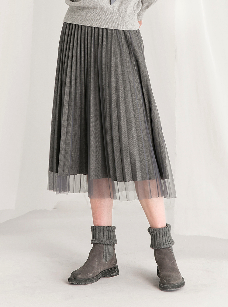 famecoco范可儿时尚百褶裙优雅纱裙半身裙F218HA006