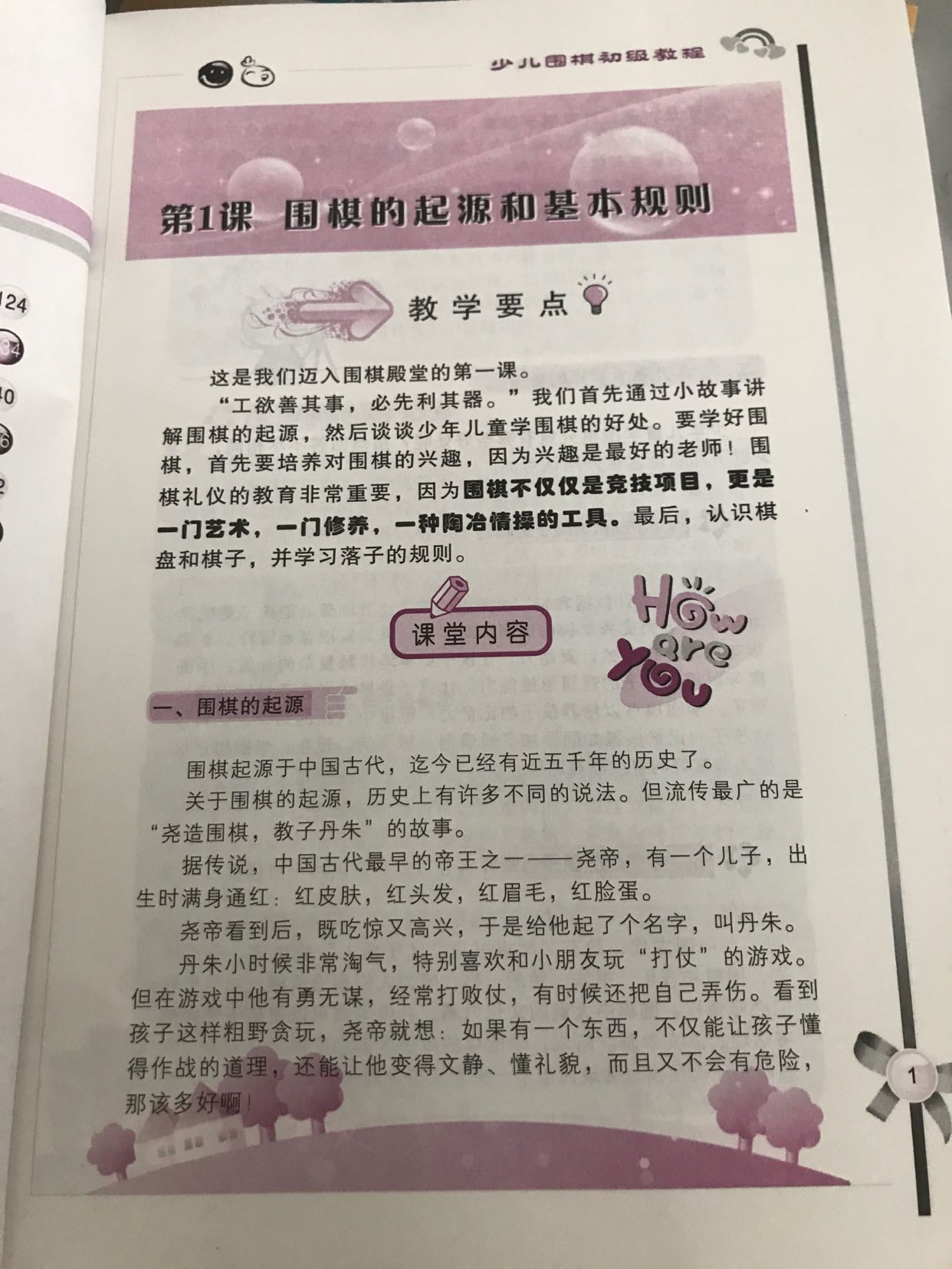 这套《少儿围棋初级教程》是世界冠军马晓春先生在围棋基础教学领域,潜心研究、实践数年后精心创作,吸取国内外现有围棋培训教材的优点,结合自身技术优势打造的精品围棋培训教材。内容上按教师授课习惯以课时安排层次,循序渐进,深入浅出,让孩子在轻松的学习过程中迅速提高棋艺。
