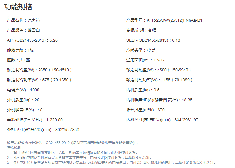 格力·凉之沁新国标一级节能大一匹挂式空调KFR-26GW/(26512)FNhAb-B1