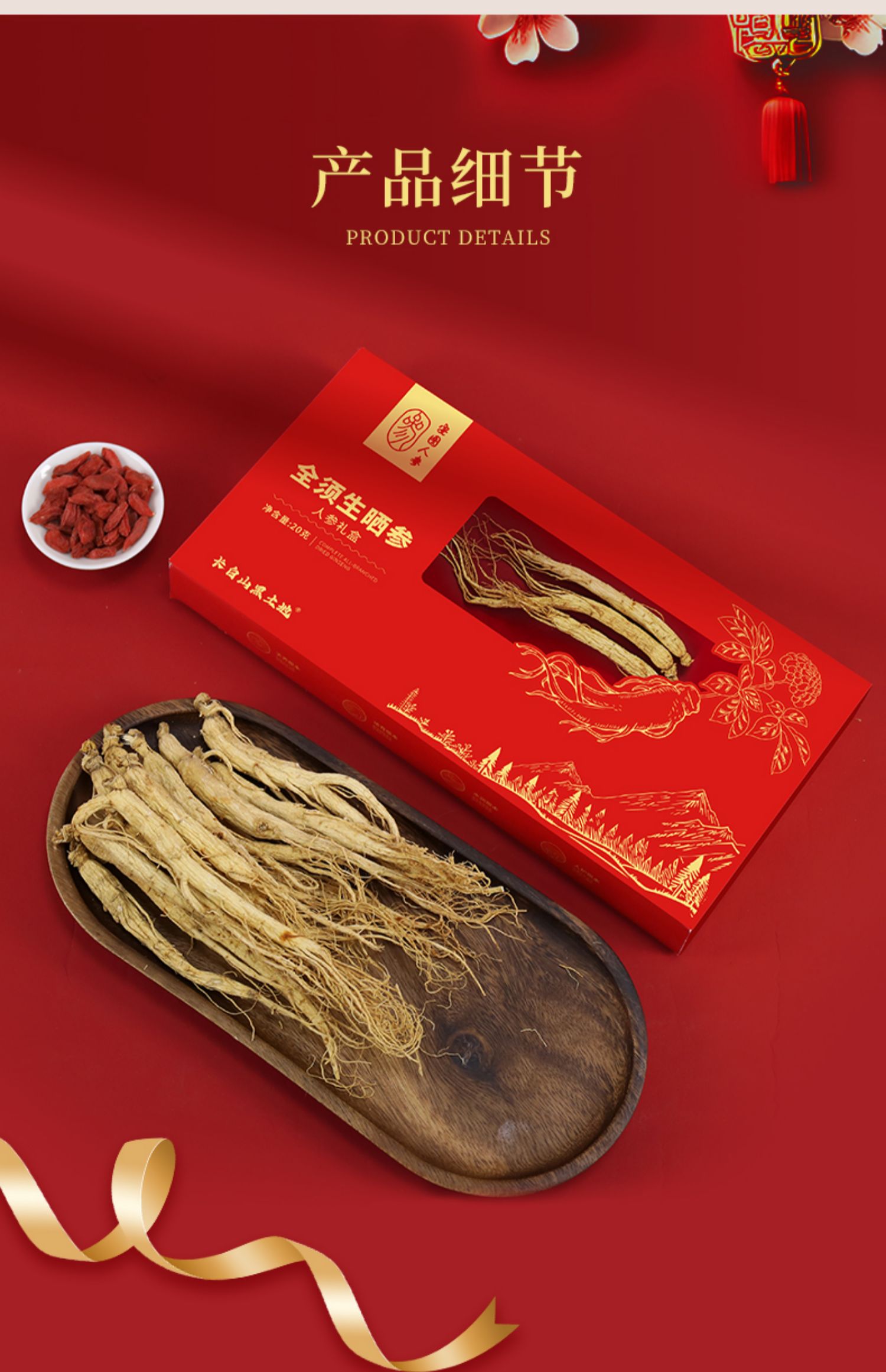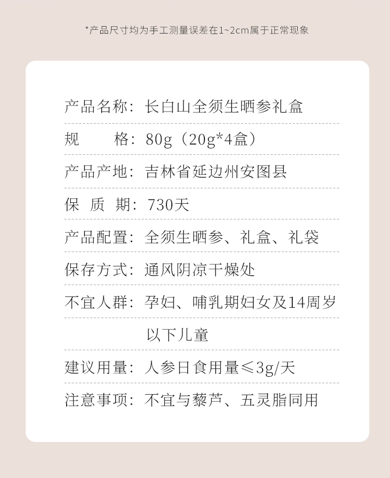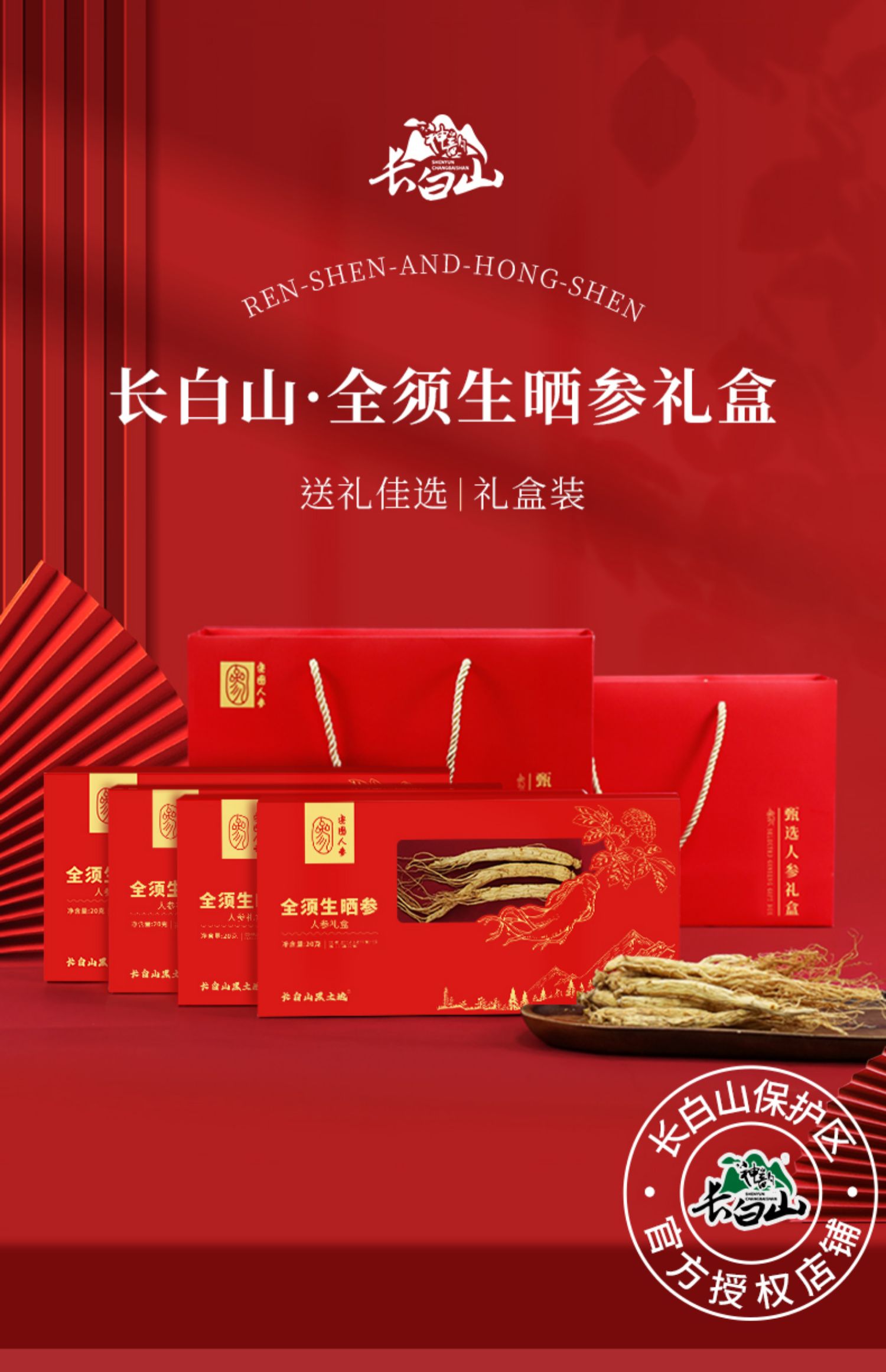 领券下单【东北公司】长白山全须生晒参20g/盒*4盒(送2个礼袋)