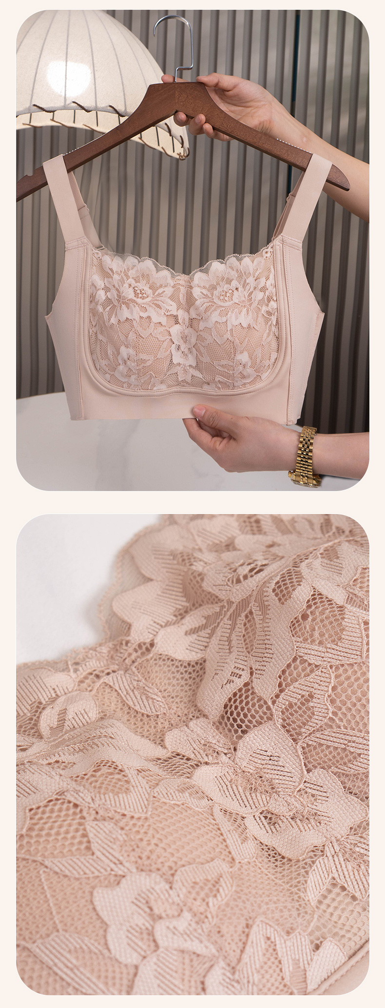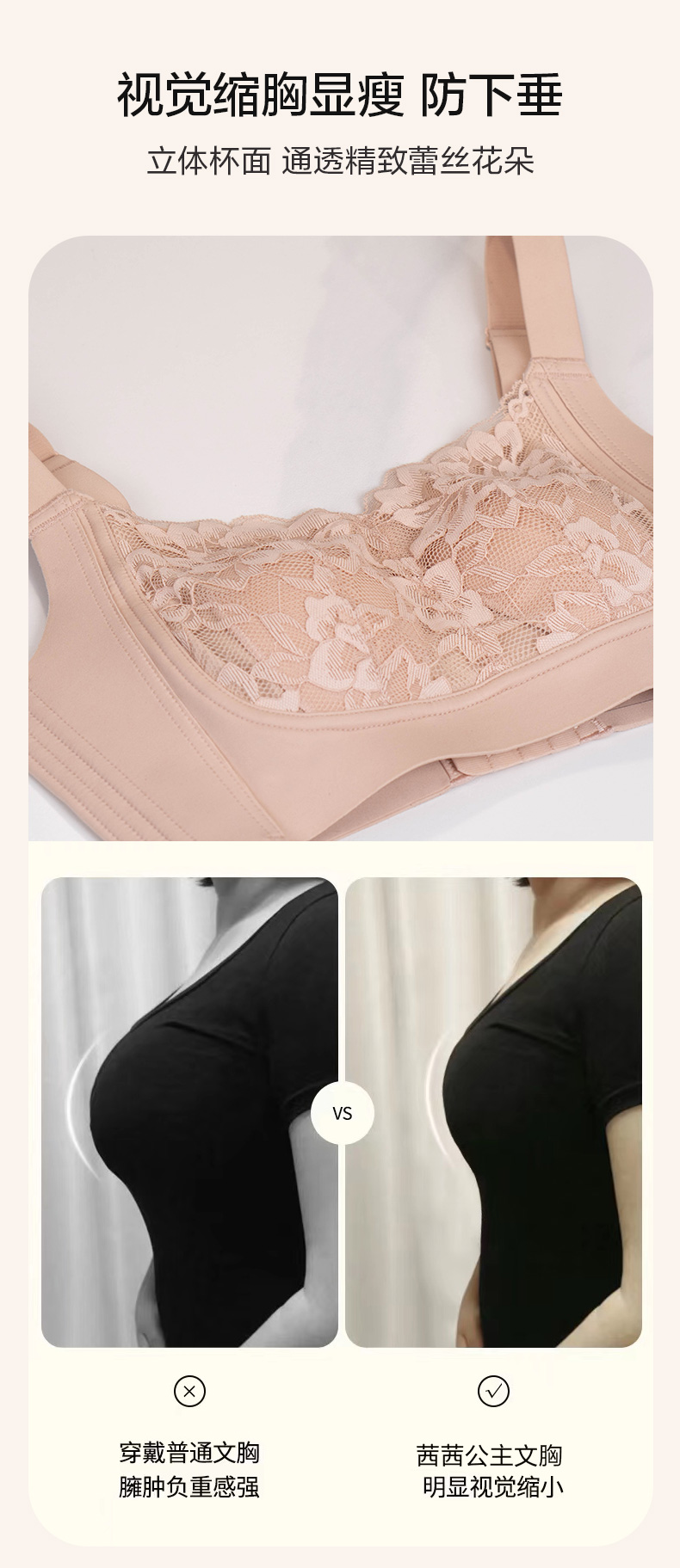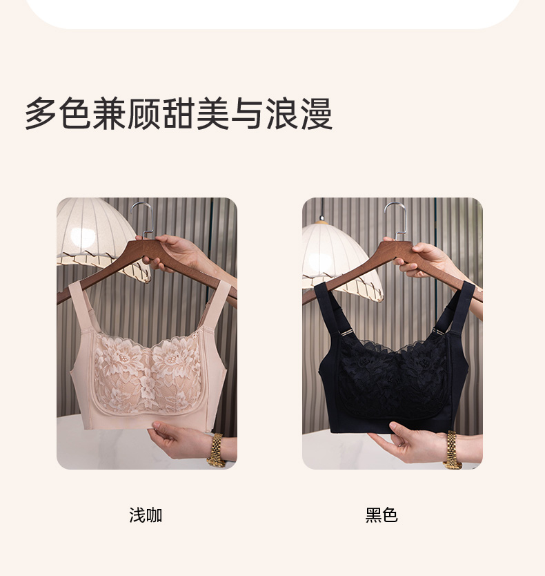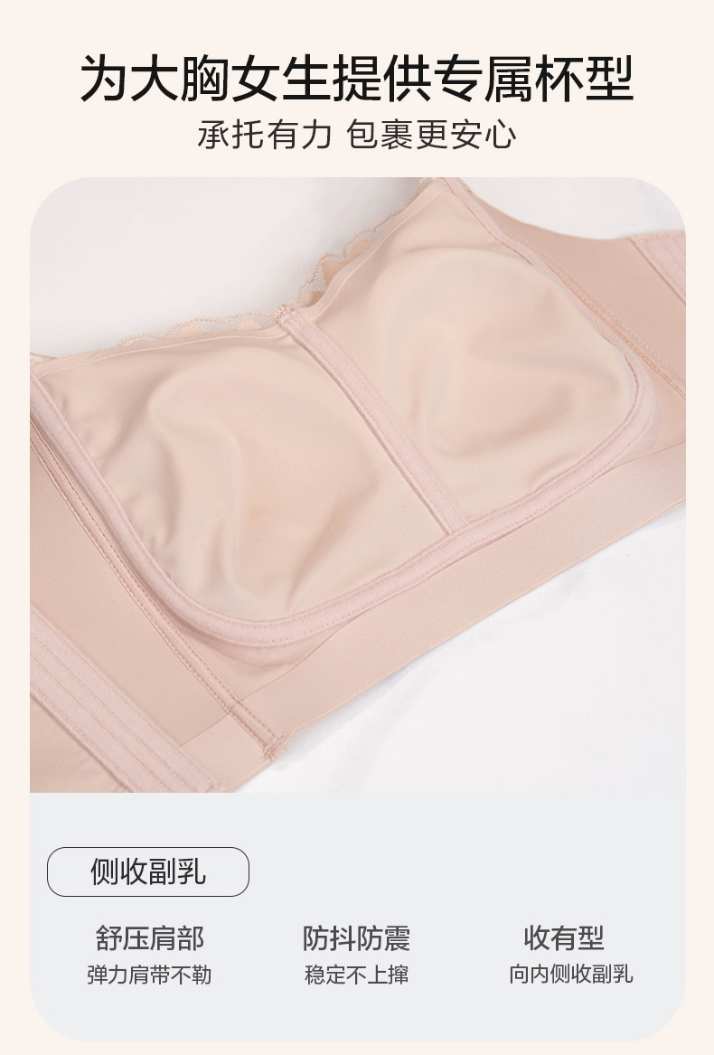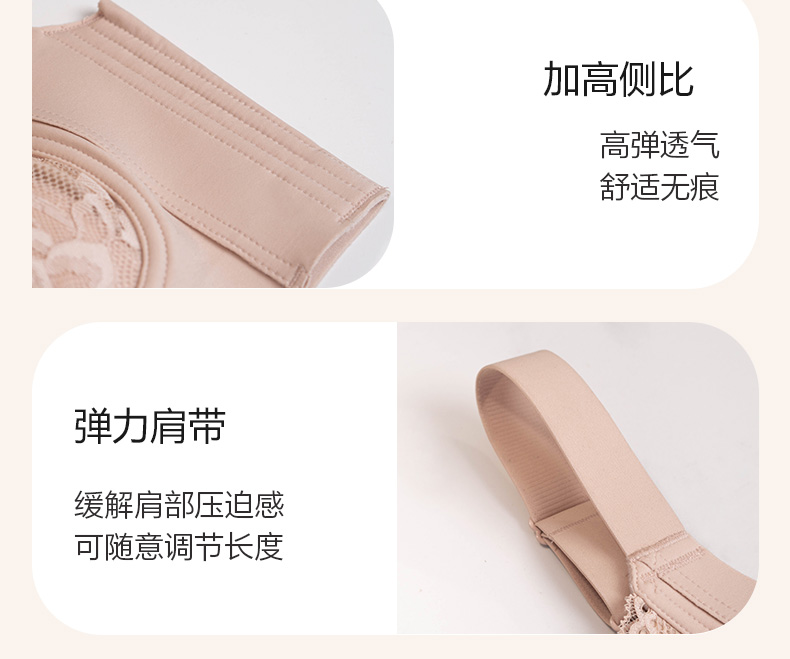 大胸显小 全罩杯轻薄透气 瑾瑢调整型文胸 无钢圈薄棉杯 玫瑰纤维里料 美白抗菌抑菌