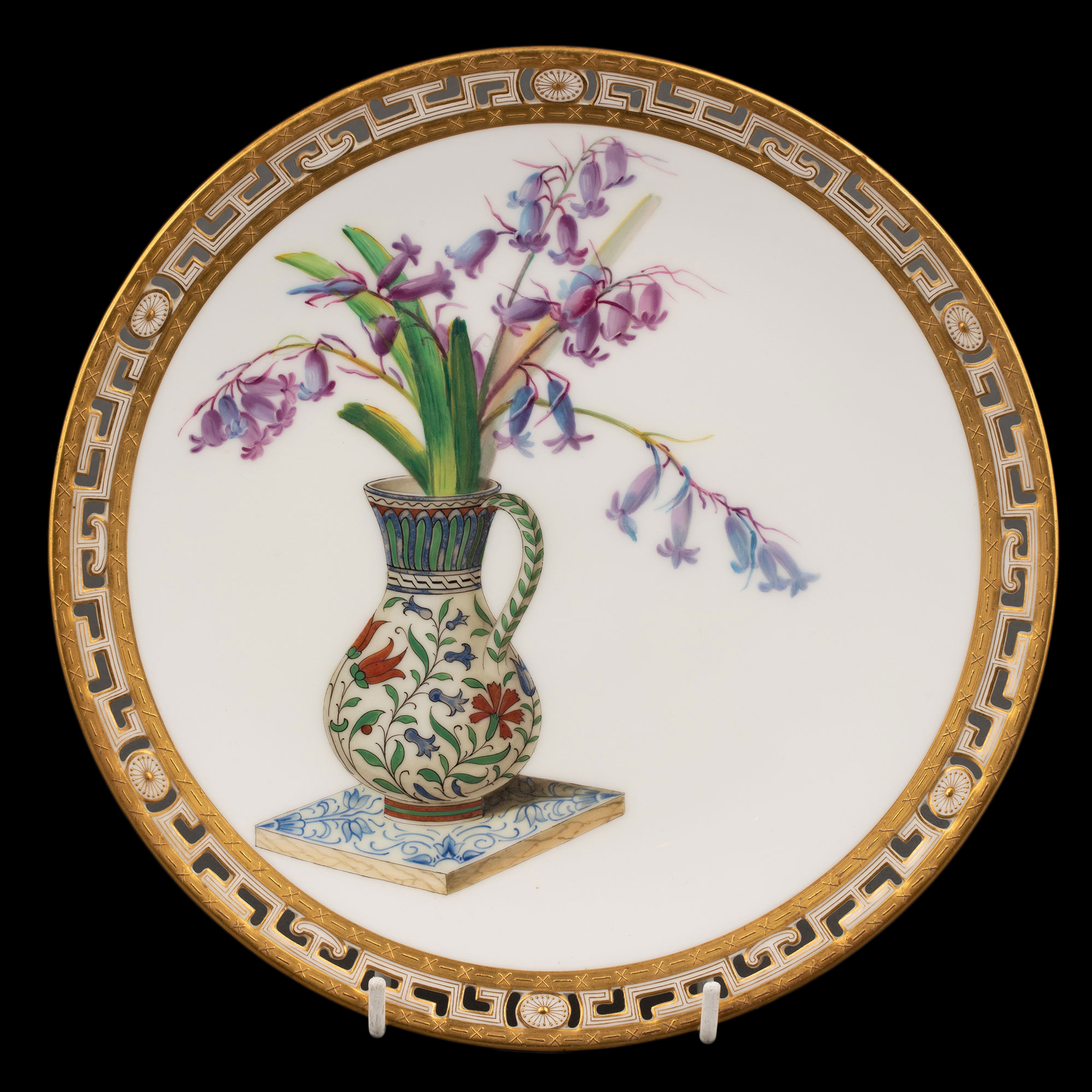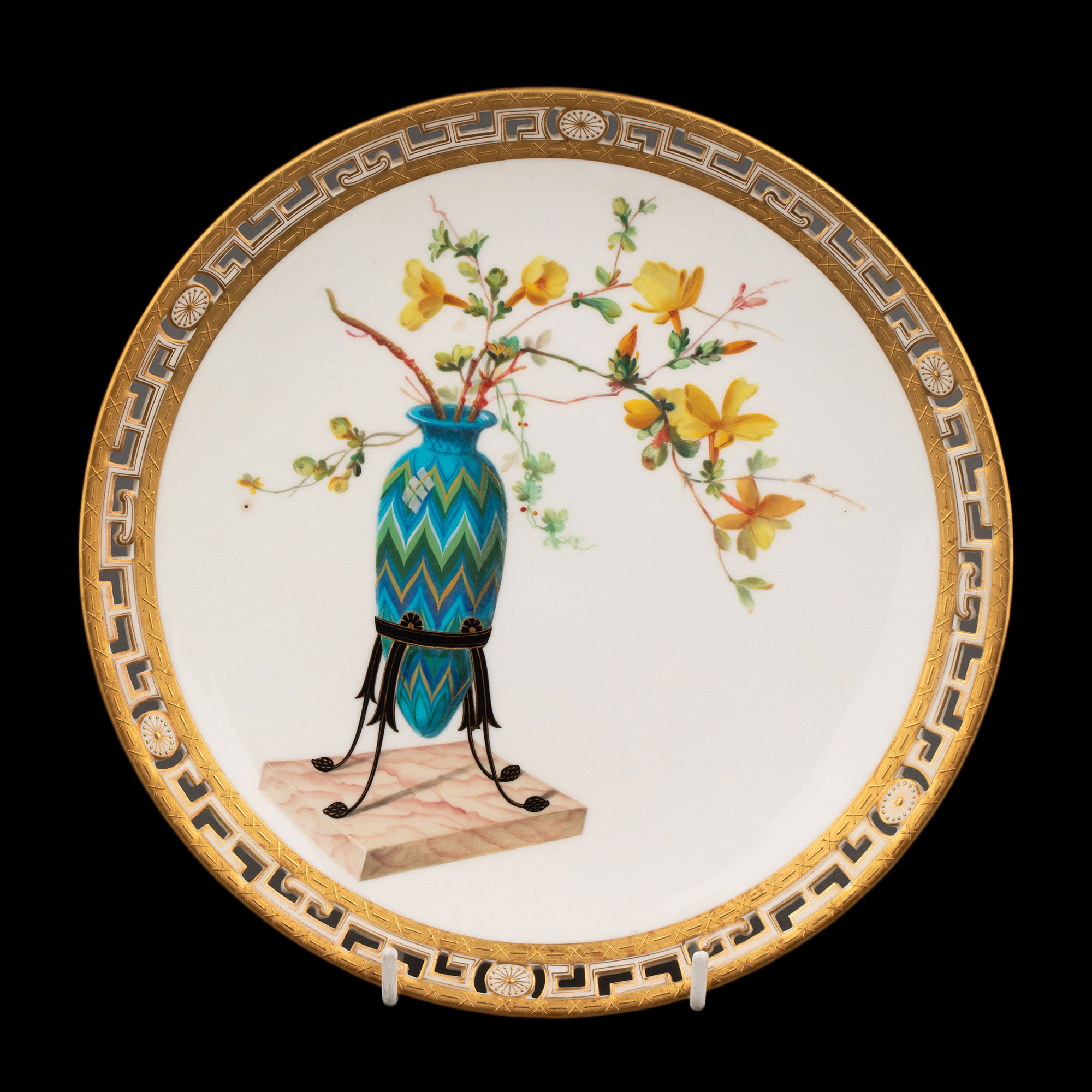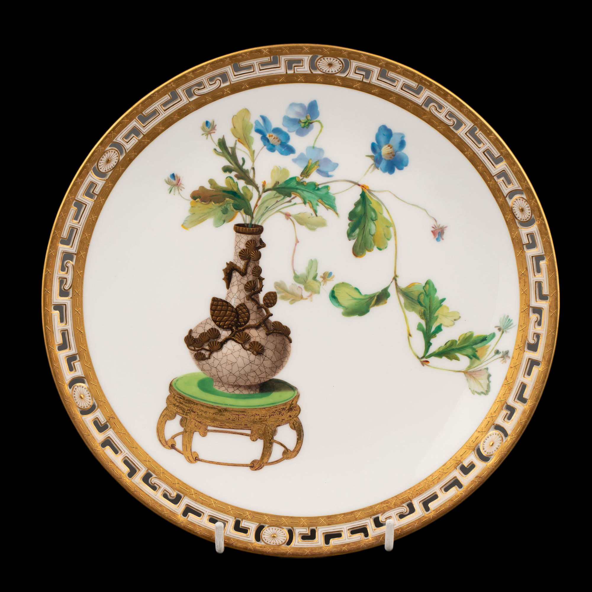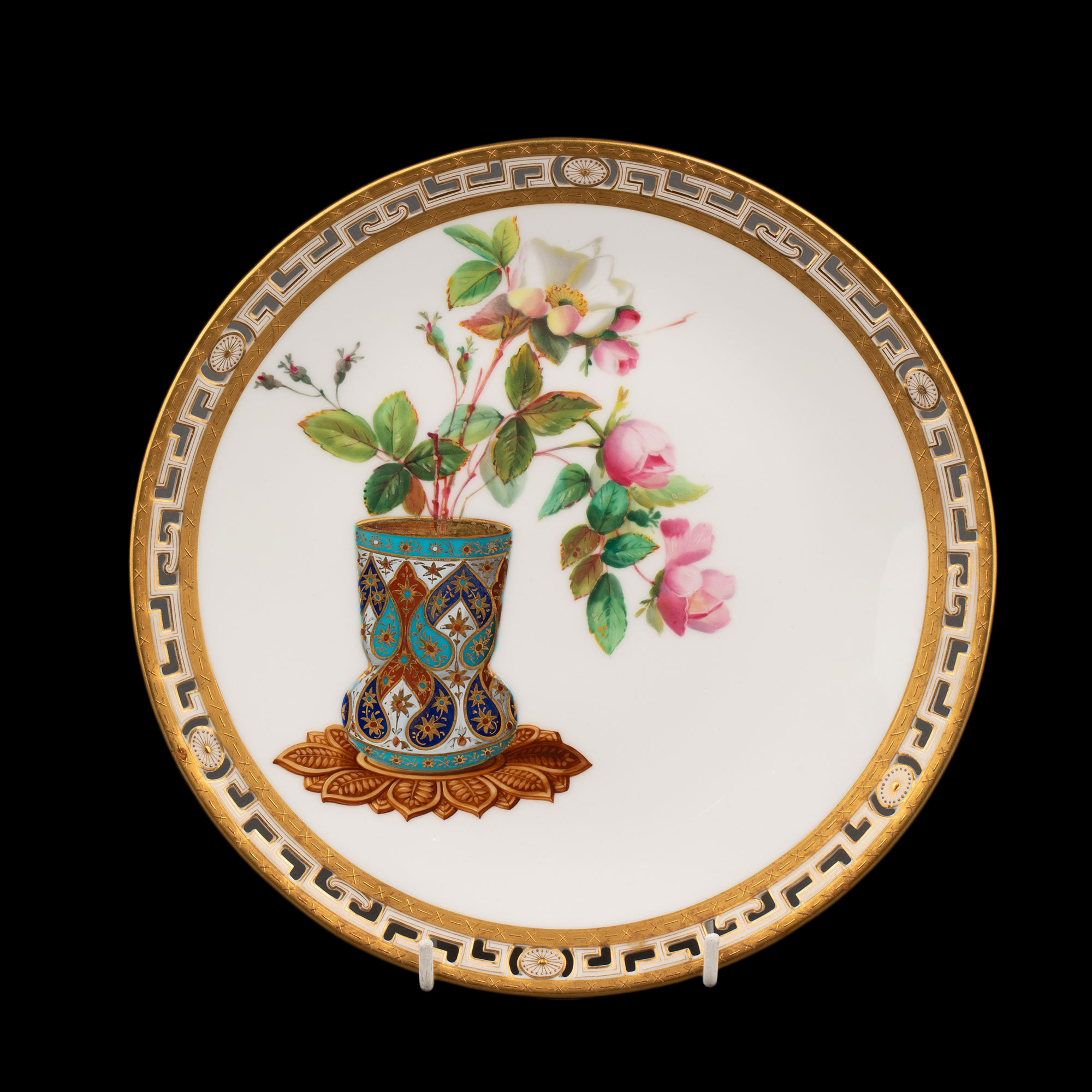 1880年代英国顶级陶瓷品牌明顿Mintons出品东方瓶花主题鎏金彩绘陶瓷赏盘九件套