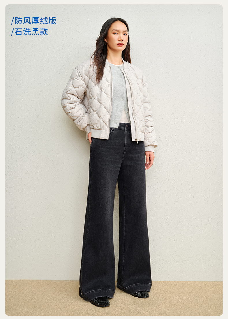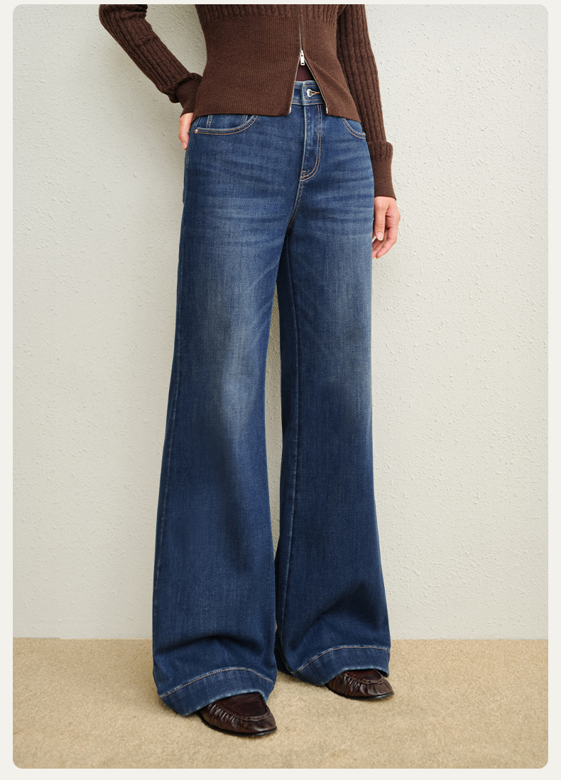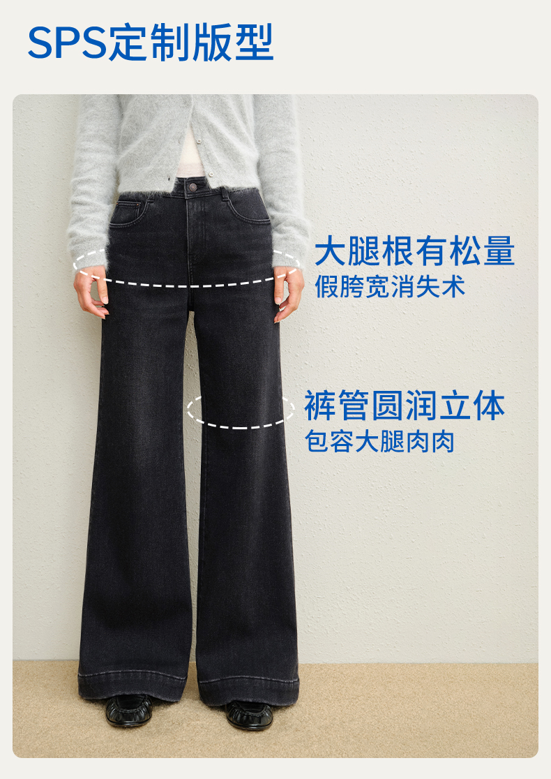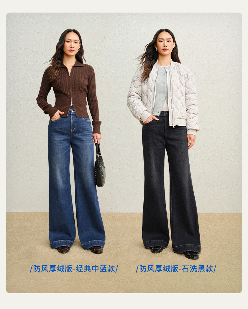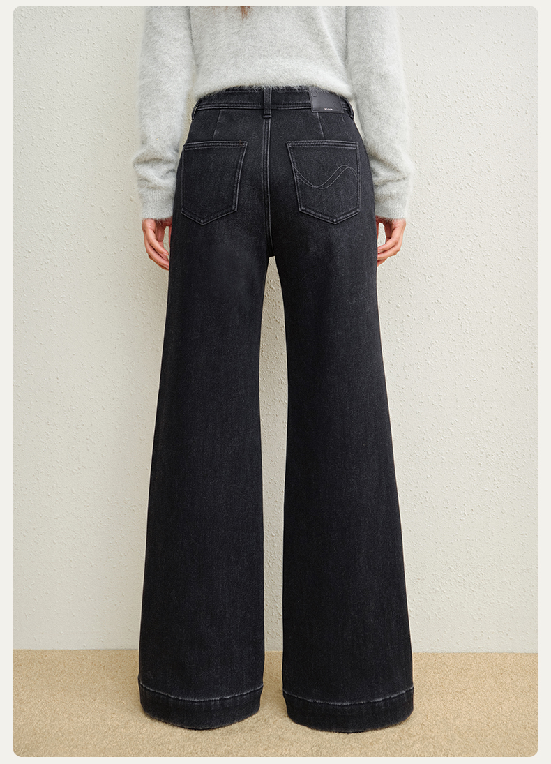 【保暖阔腿喇叭裤】simplepieces冬新款SPS牛仔裤黑色加绒拖地裤
