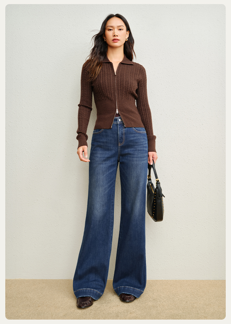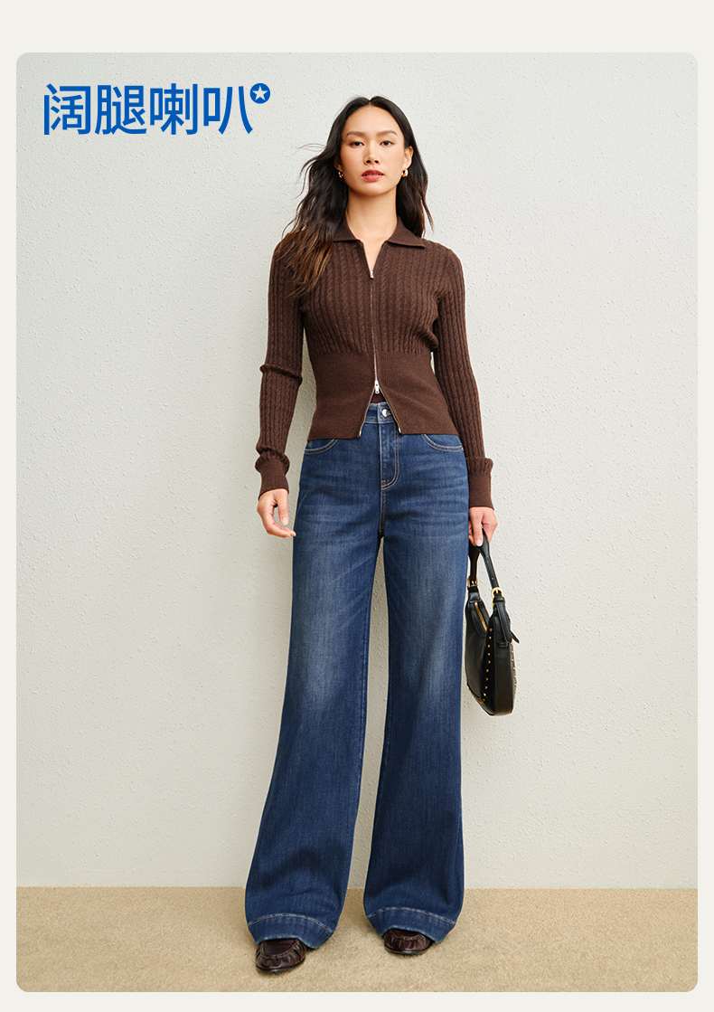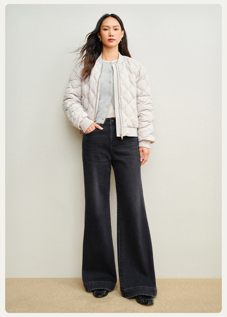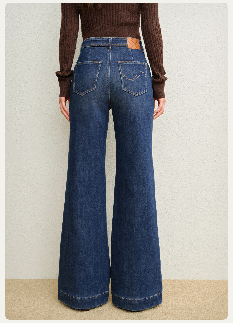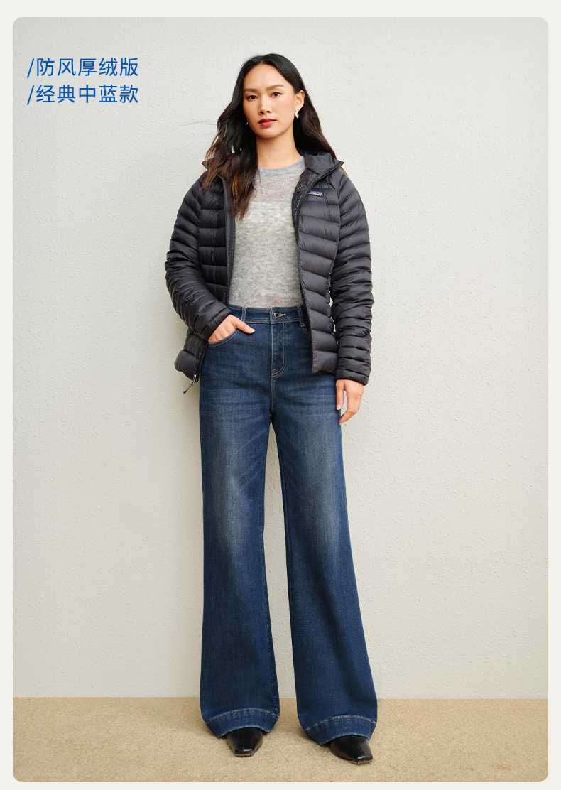 【保暖阔腿喇叭裤】simplepieces冬新款SPS牛仔裤黑色加绒拖地裤
