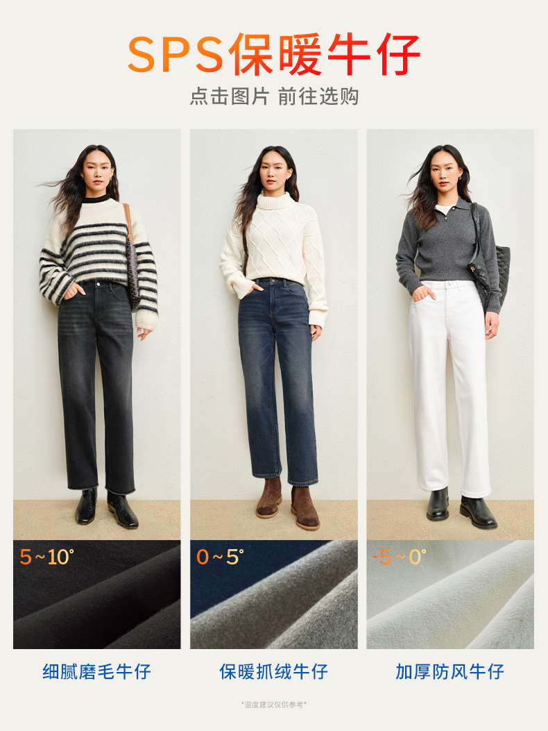 【保暖法棍裤】simplepieces秋冬款SPS牛仔四面弹磨毛九分直筒裤