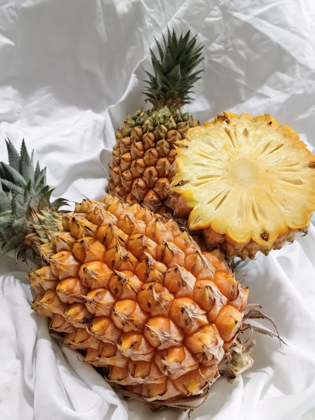生态凤梨,按有机标准种植,所以个头不大,是化学凤梨的2/3或1/2大小。生命力顽强,风味饱满