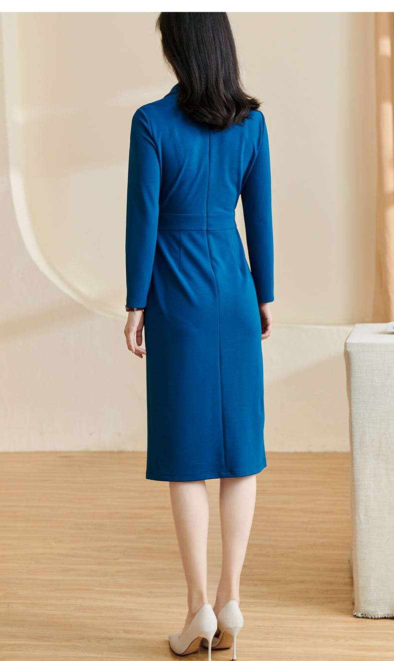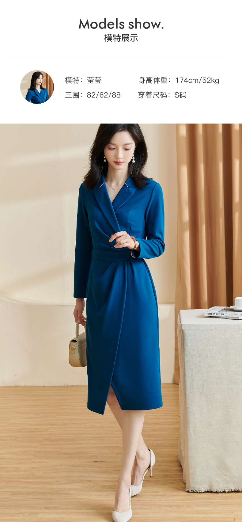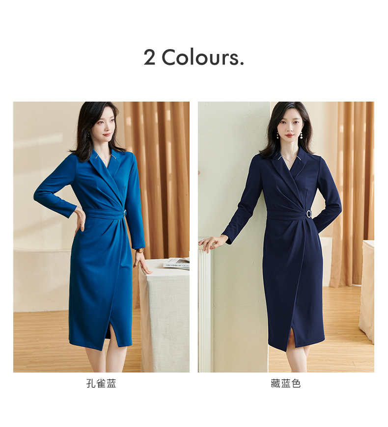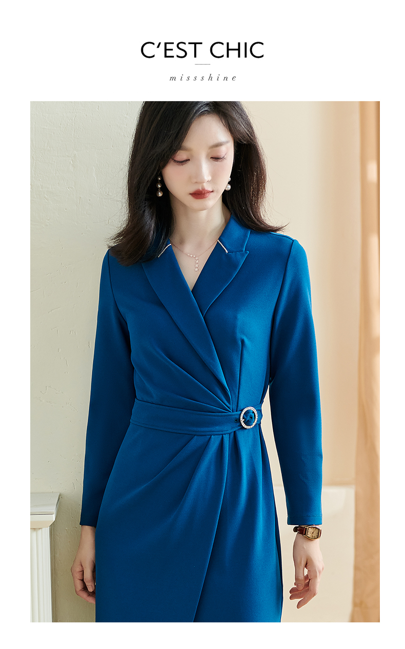 剩S/M 米思阳2026春季新款优雅气质净色连衣裙收腰褶皱系带长袖裙子2143