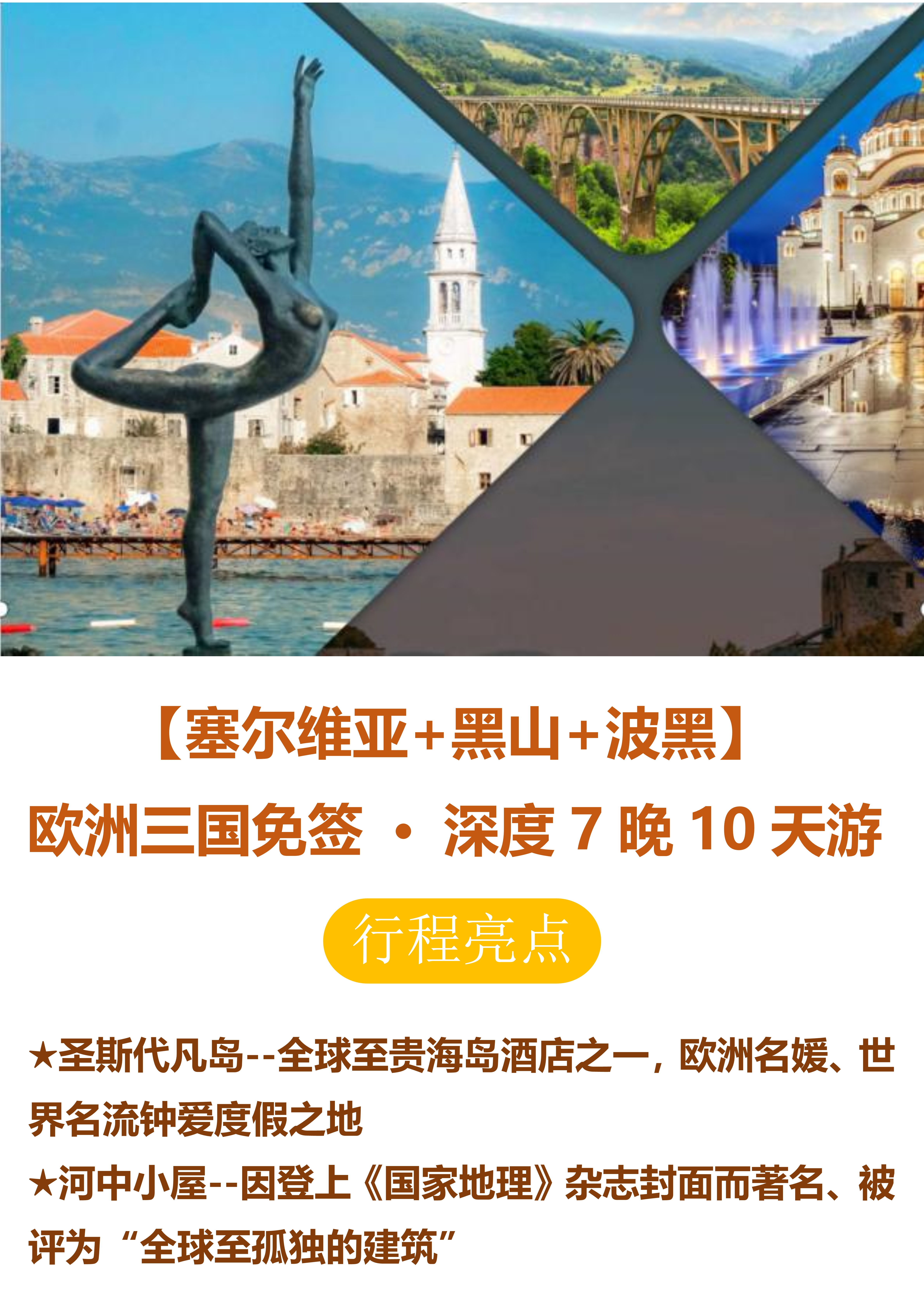 【塞尔维亚+黑山+波黑】 欧洲三国免签 · 深度 7 晚 10 天游