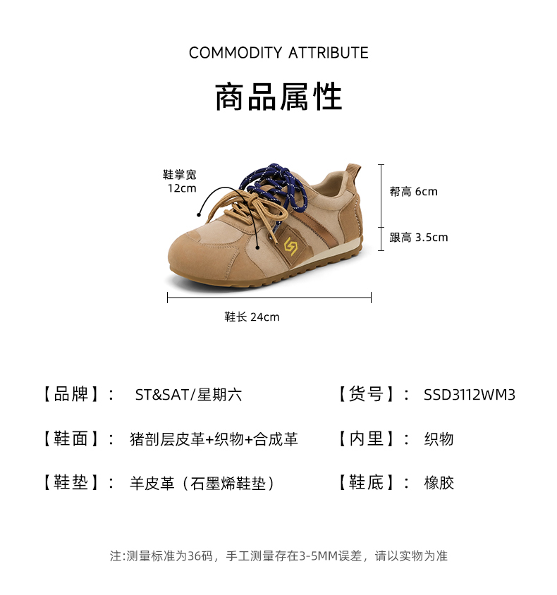 星期六舒适圆头复古百搭阿甘鞋SSD3112WM3