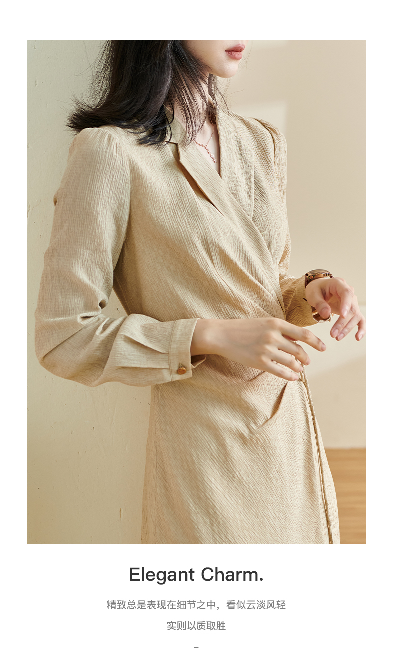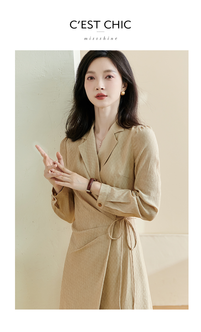 剩S/XL/XXL 米思阳2026春季新款知性优雅净色连衣裙修身缩褶西装领茶歇裙1753