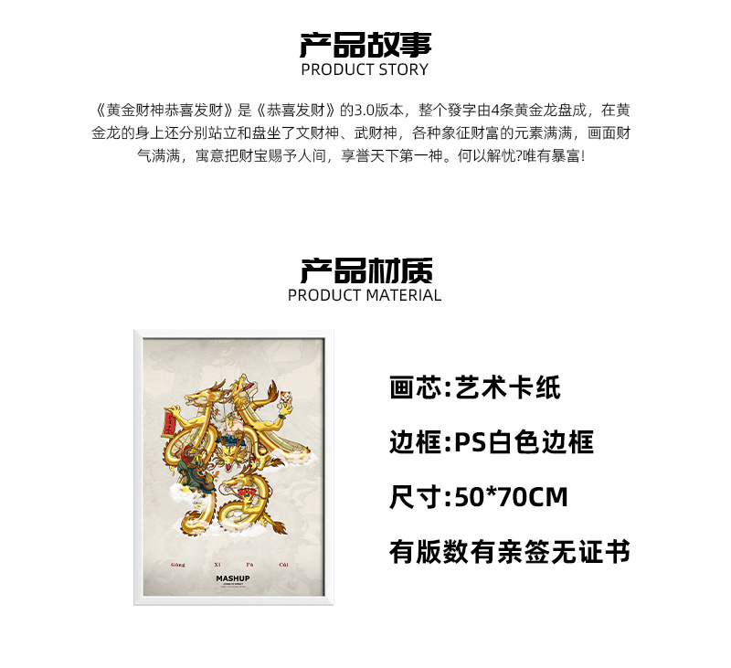 收藏系列《黄金财神恭喜发财》 潮流艺术版画 限量888版 52.5*72.5cm