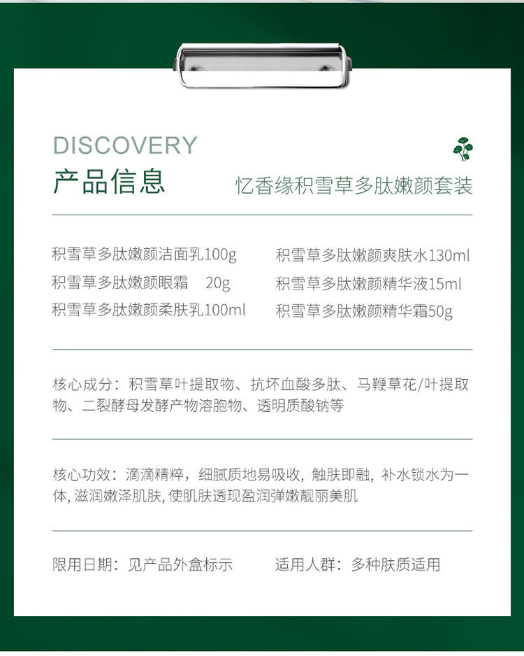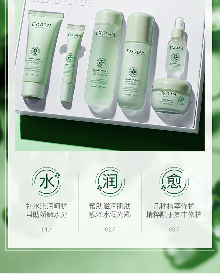 积雪草多肽嫩颜护肤品六件套保湿补水亮肤清爽化妆品