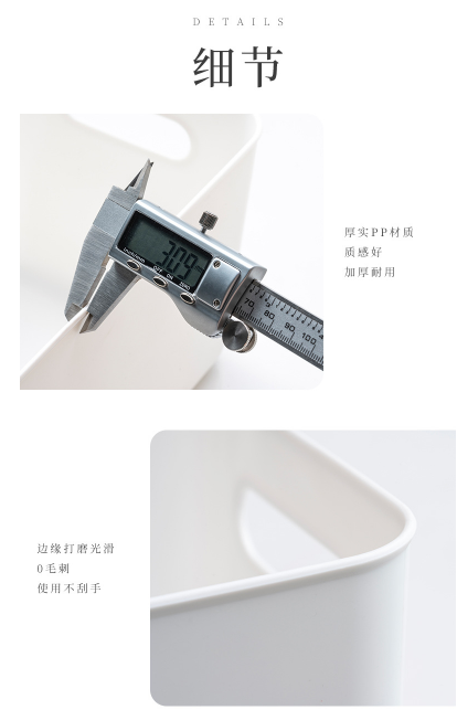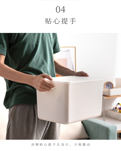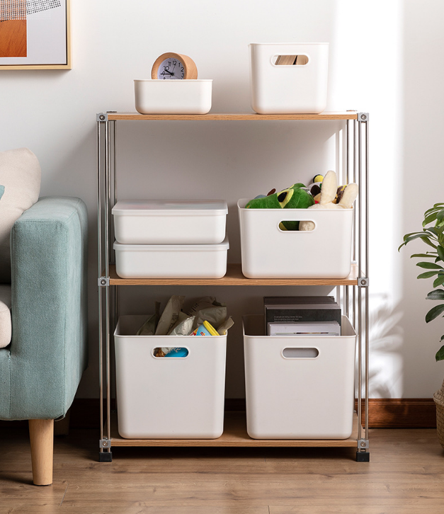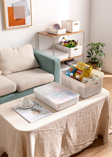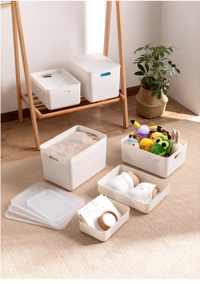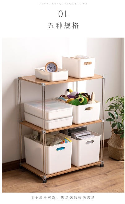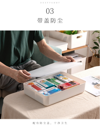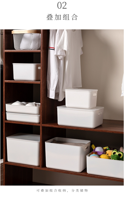 日式带盖收纳盒 桌面整理篮筐白色厨房置物框家用化妆品储物零食箱2.2