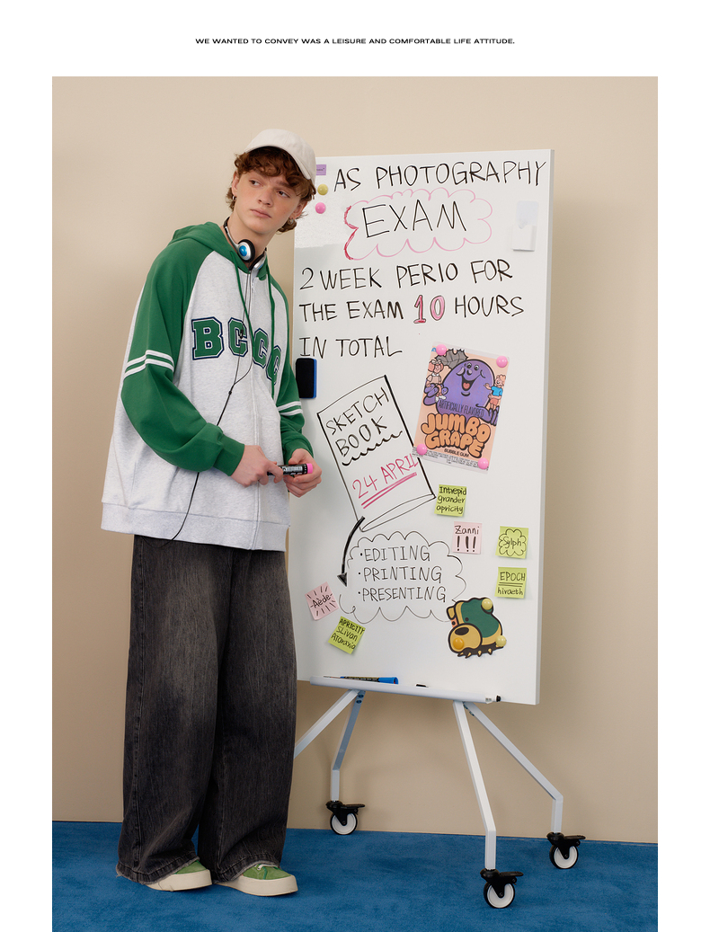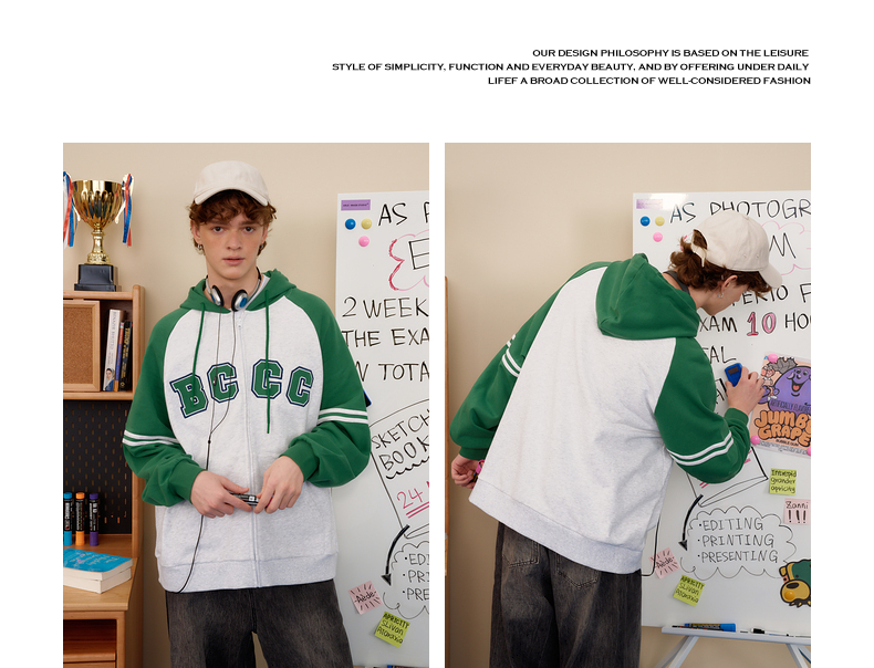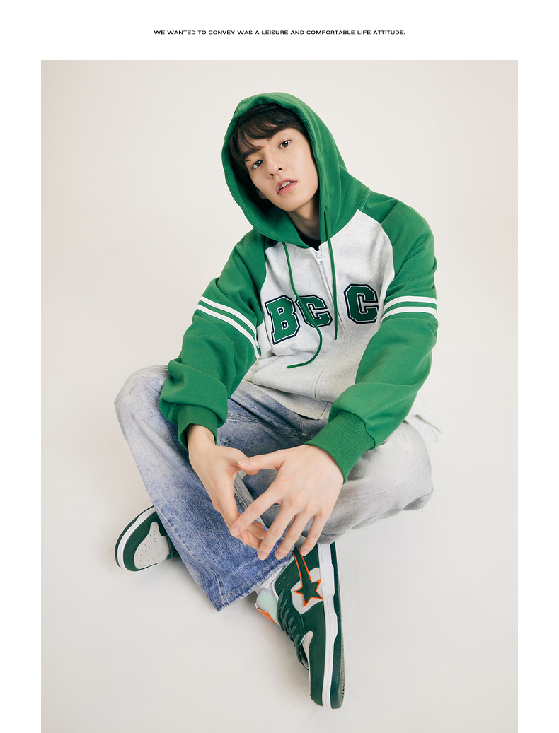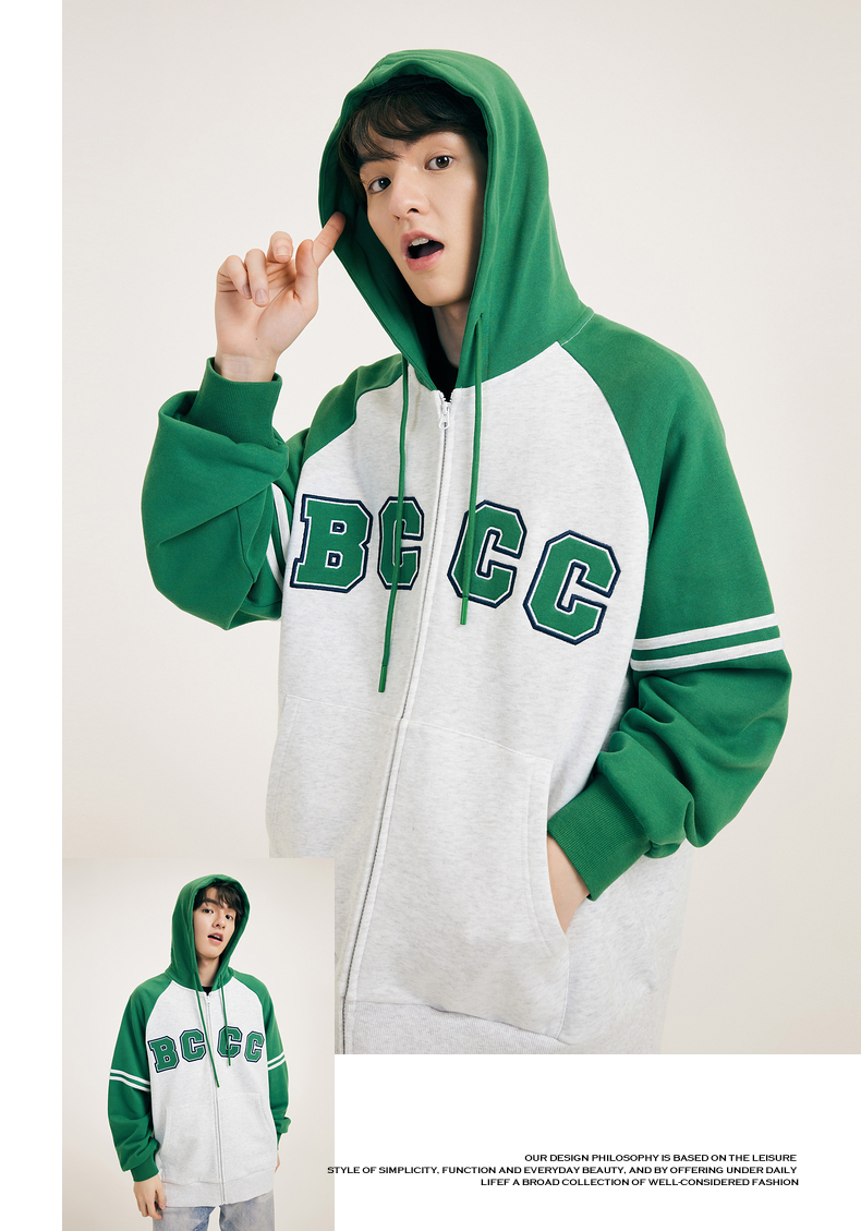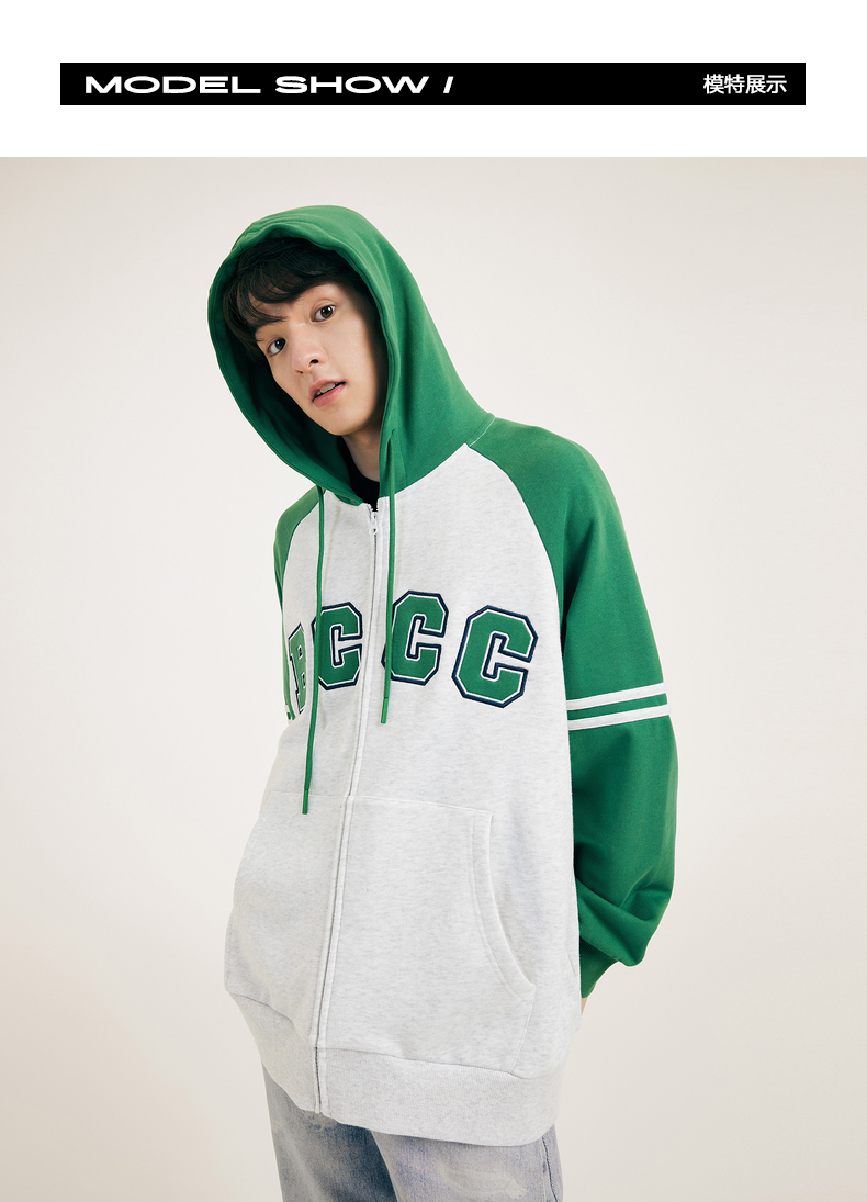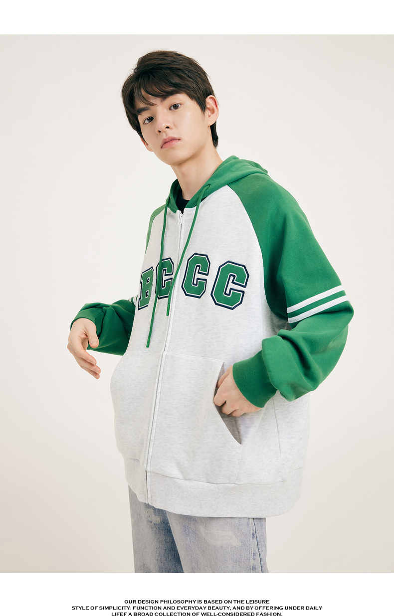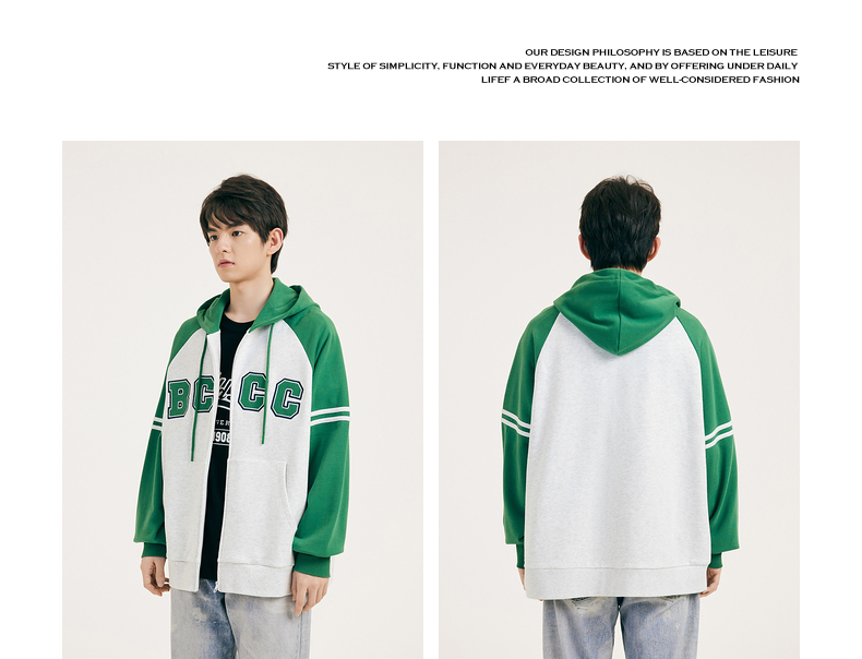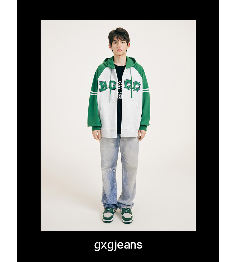 gxgjeans男装春季撞色拼接夹克学院风减龄连帽夹克外套男