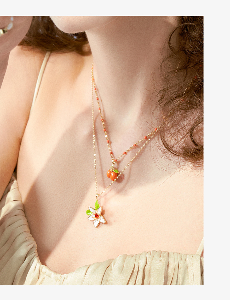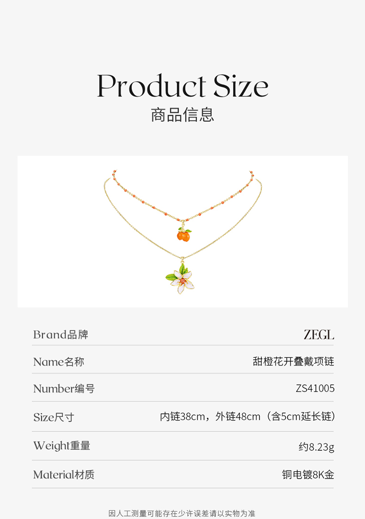 ZEGL设计师甜橙花开系列花朵双层叠戴项链女轻奢小众锁骨链配饰品