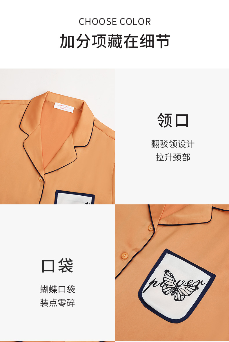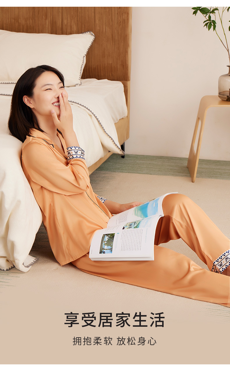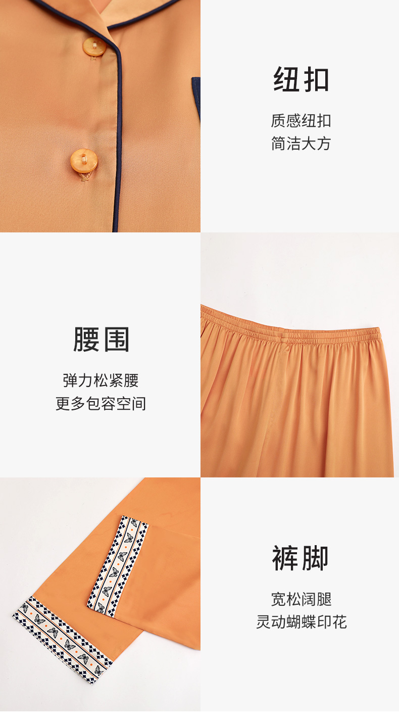 【M码绿色】熳洁儿 秋冬长袖长裤冰雪丝灵动蝴蝶印花气质撞色女款家居服套装商场同款22703112
