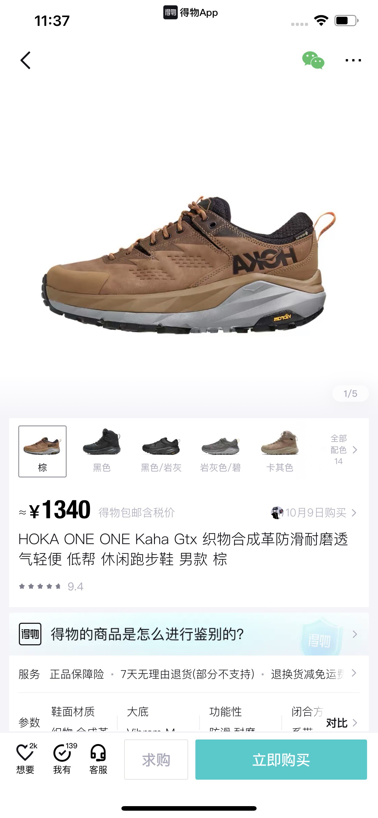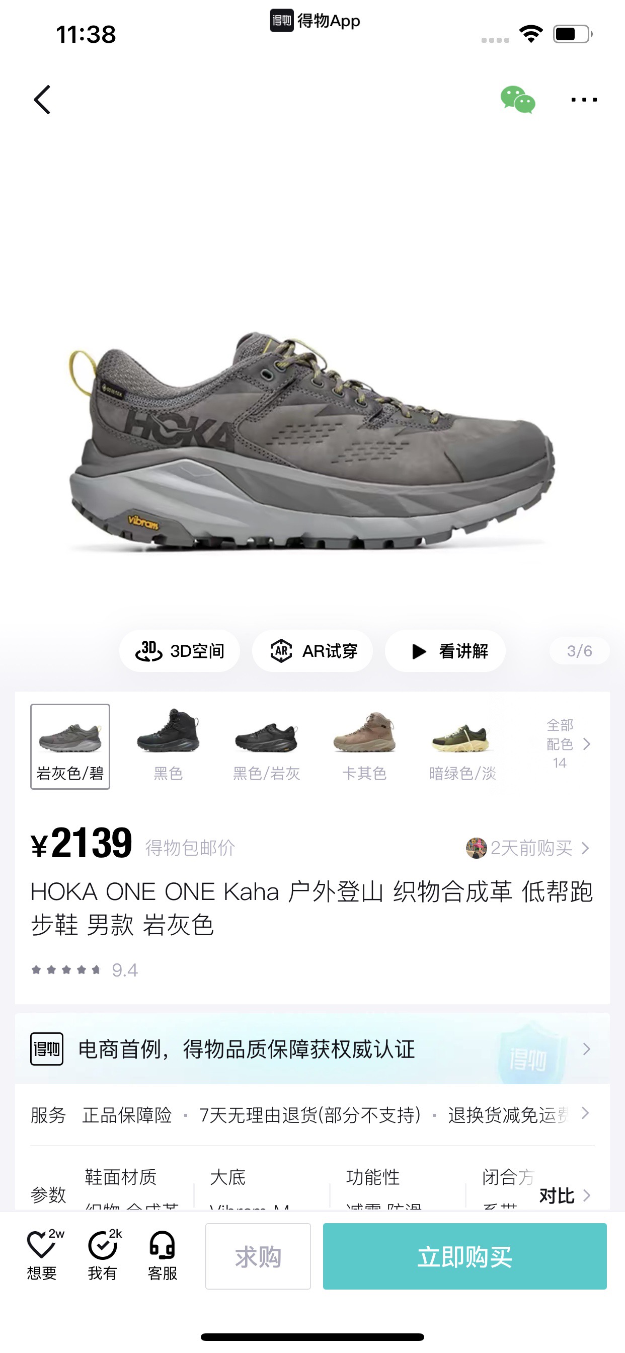 李现同款!HOKA One One M KSY KAHA GTX Low 卡哈底帮系列厚底轻量坦克军靴户外防水登山运动鞋