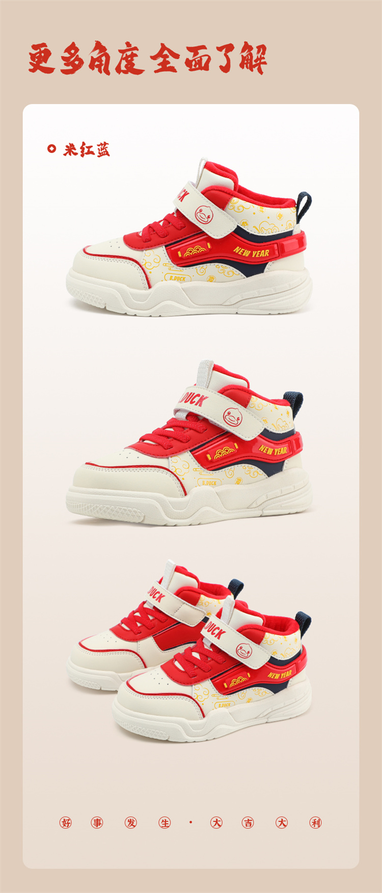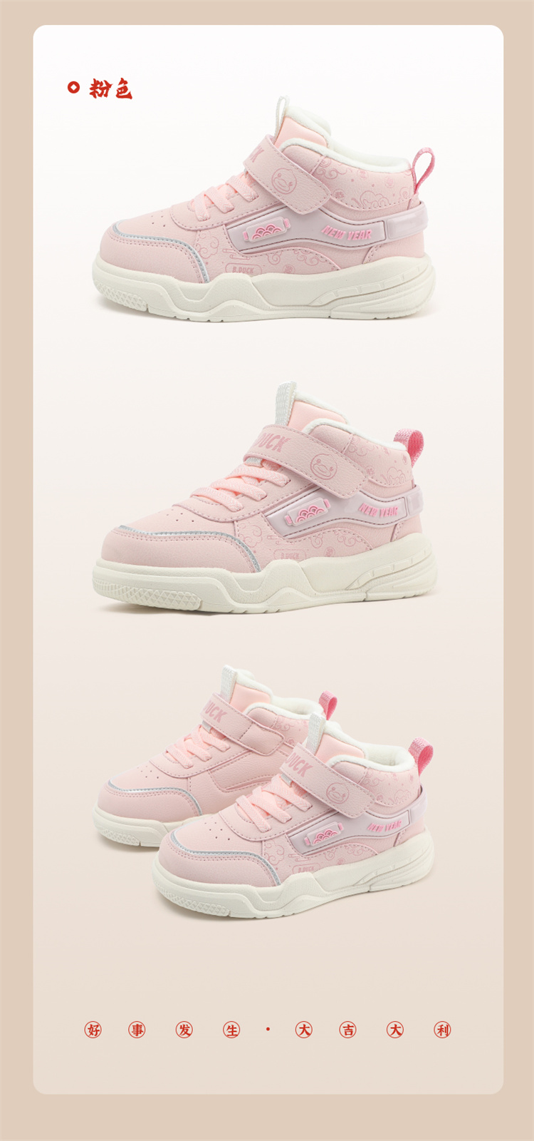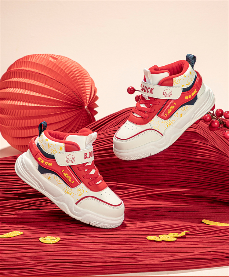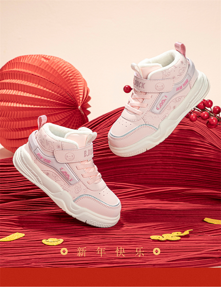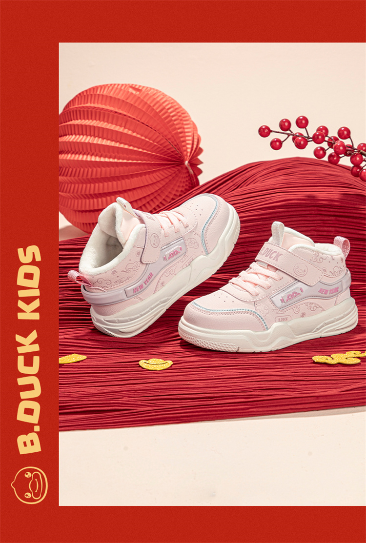 B.Duck小黄鸭童鞋冬季男女童魔术贴板鞋加绒保暖高帮鞋26-30 B5586945