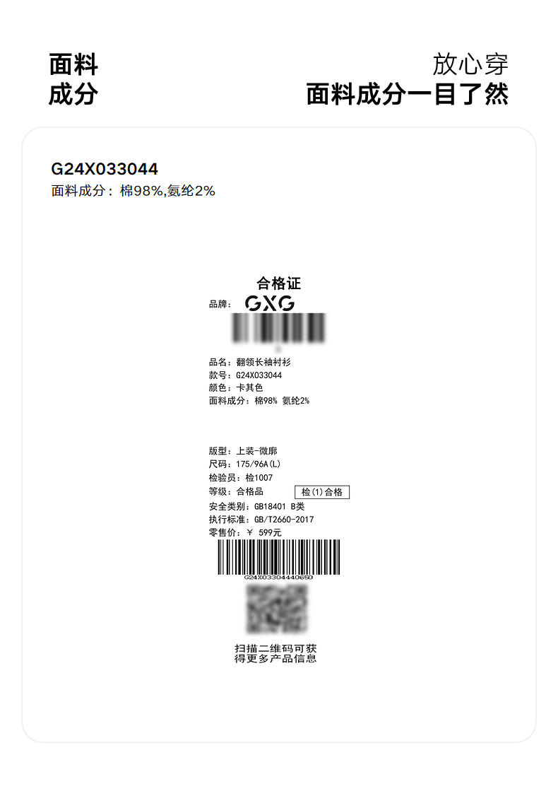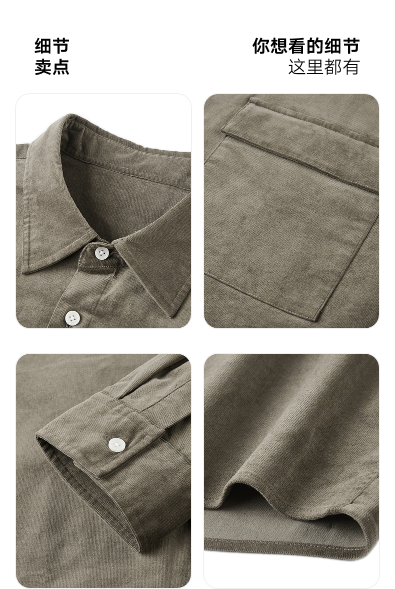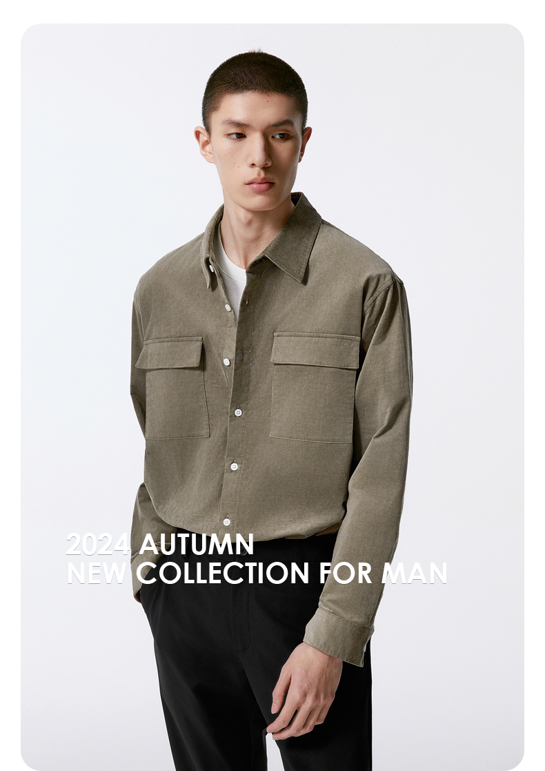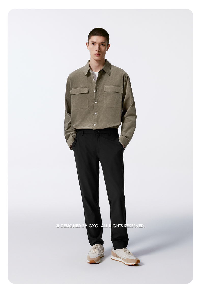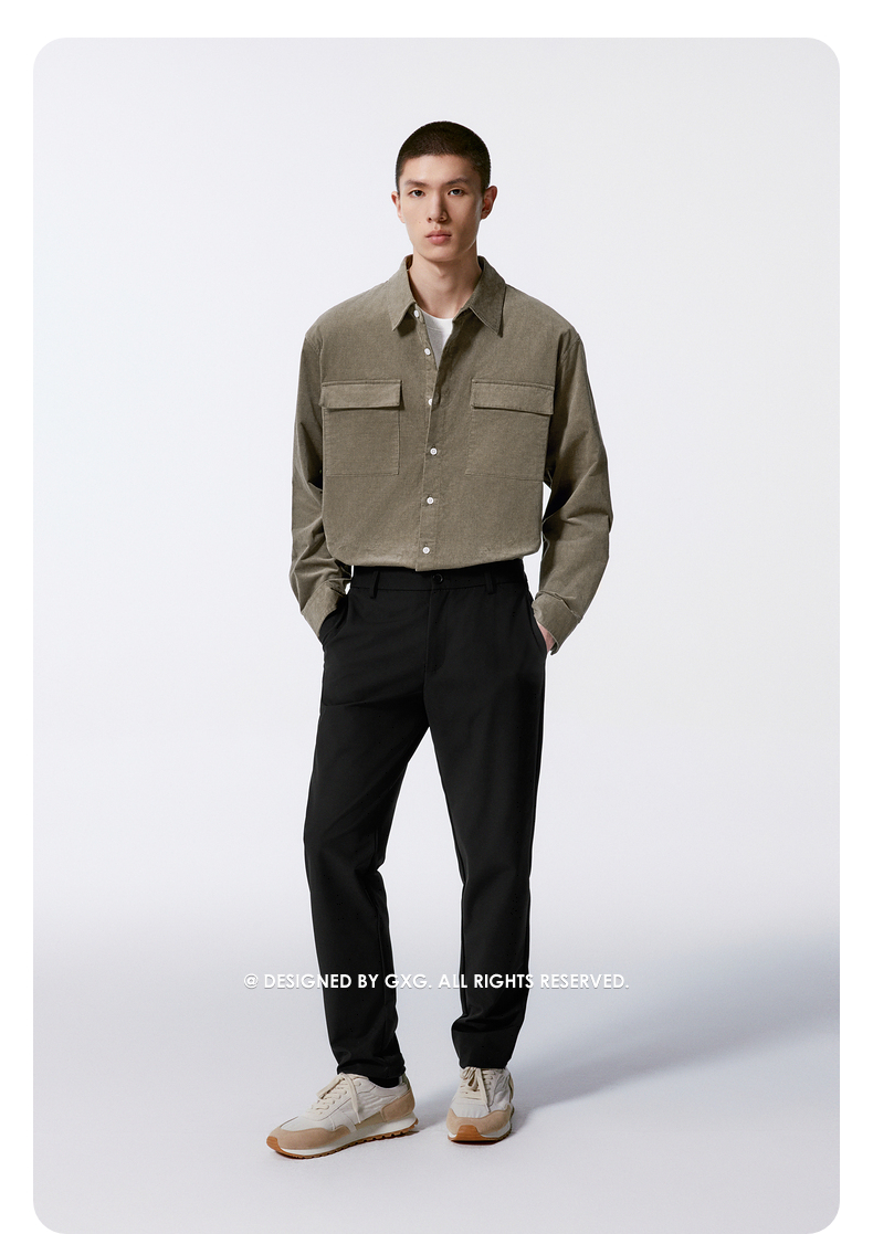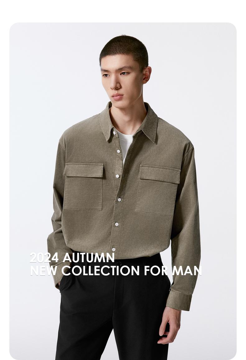 GXG男装 卡其色灯芯绒简约翻领长袖衬衫 秋季热卖G24X033044