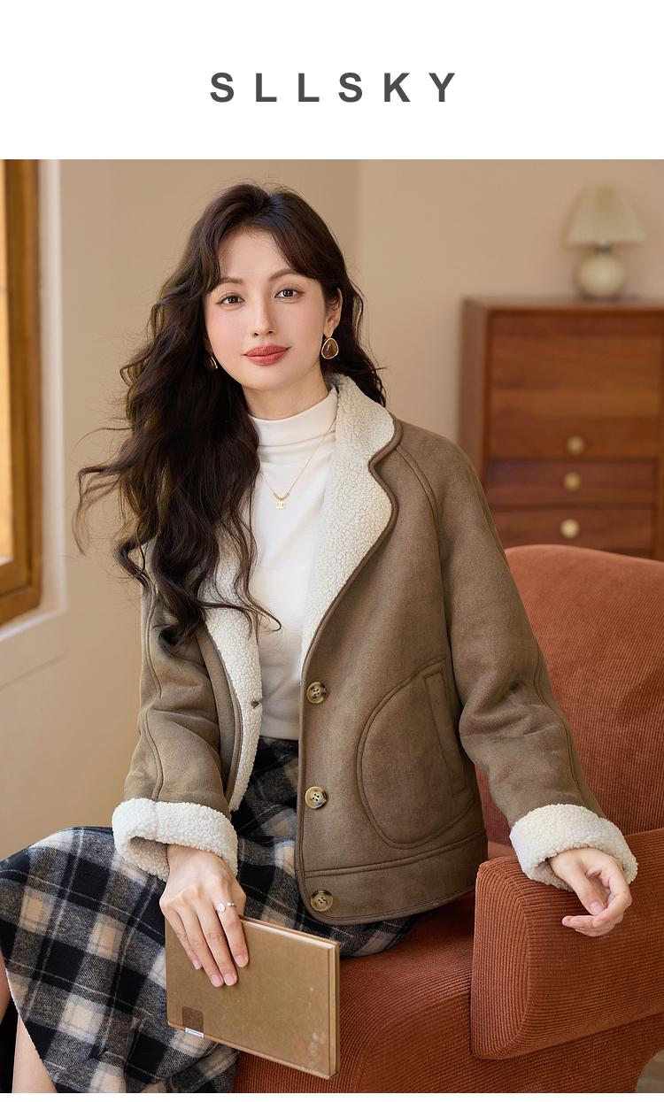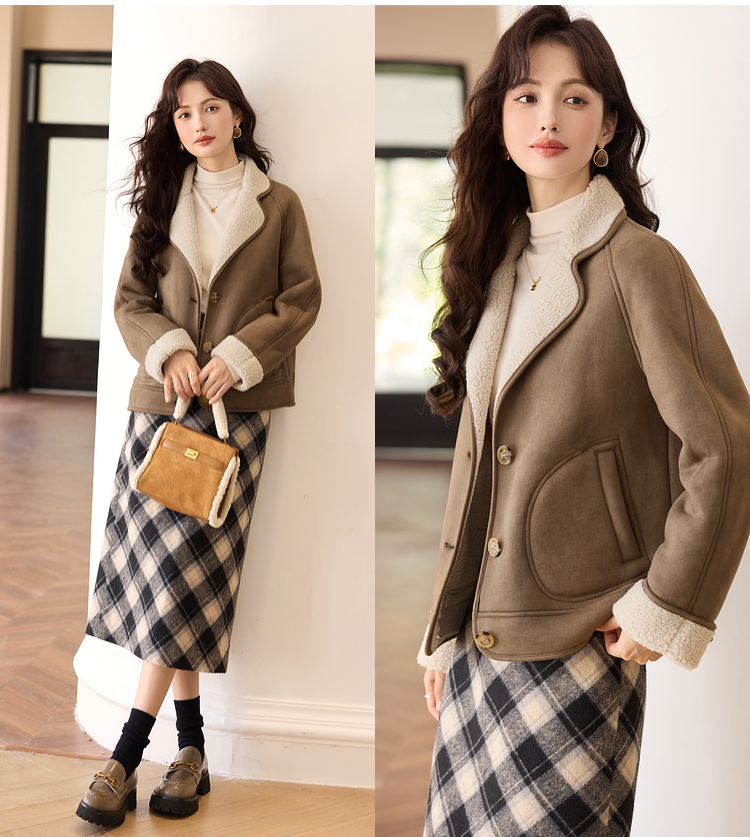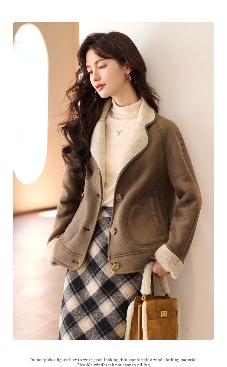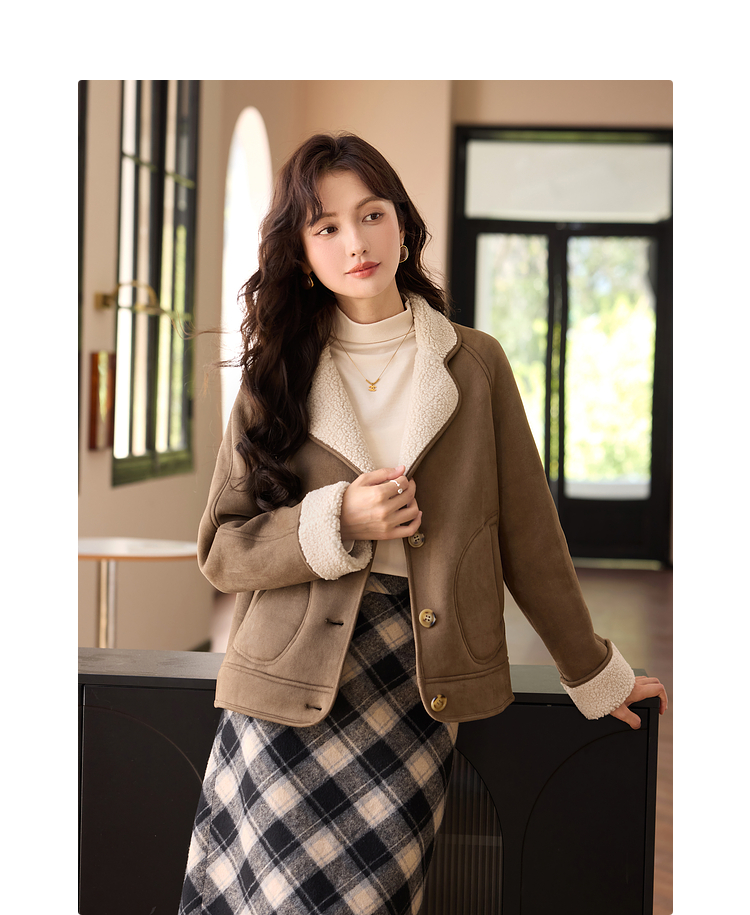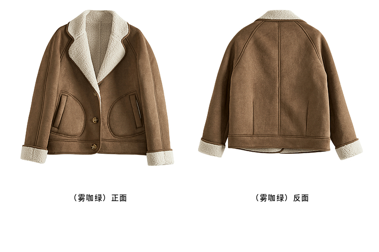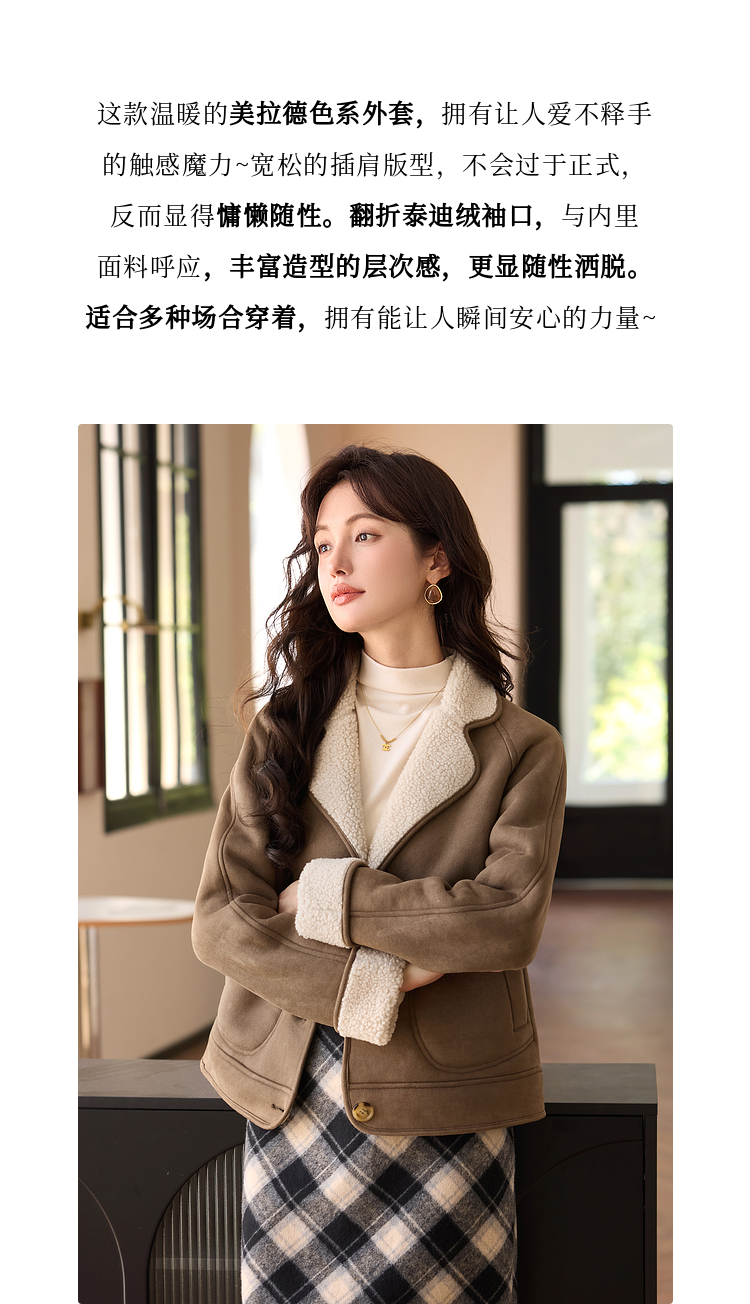 【年终特卖】熙世界美拉德麂皮绒短外套冬季新款小个子加厚保暖皮毛一体大衣