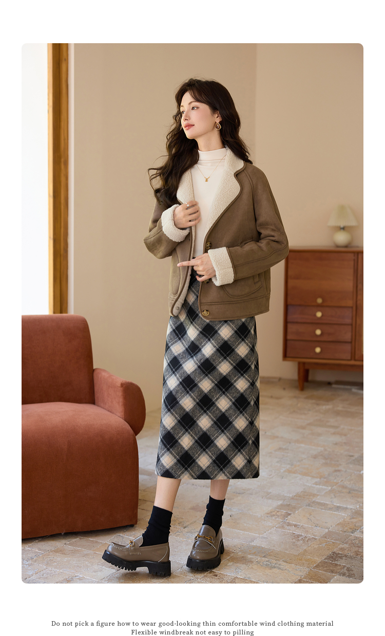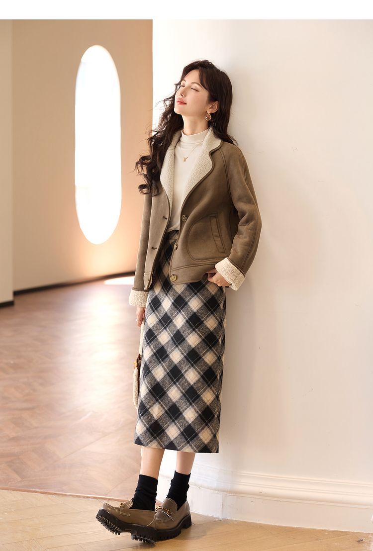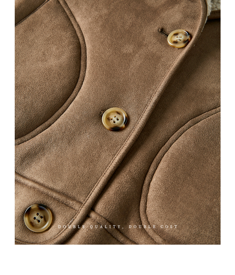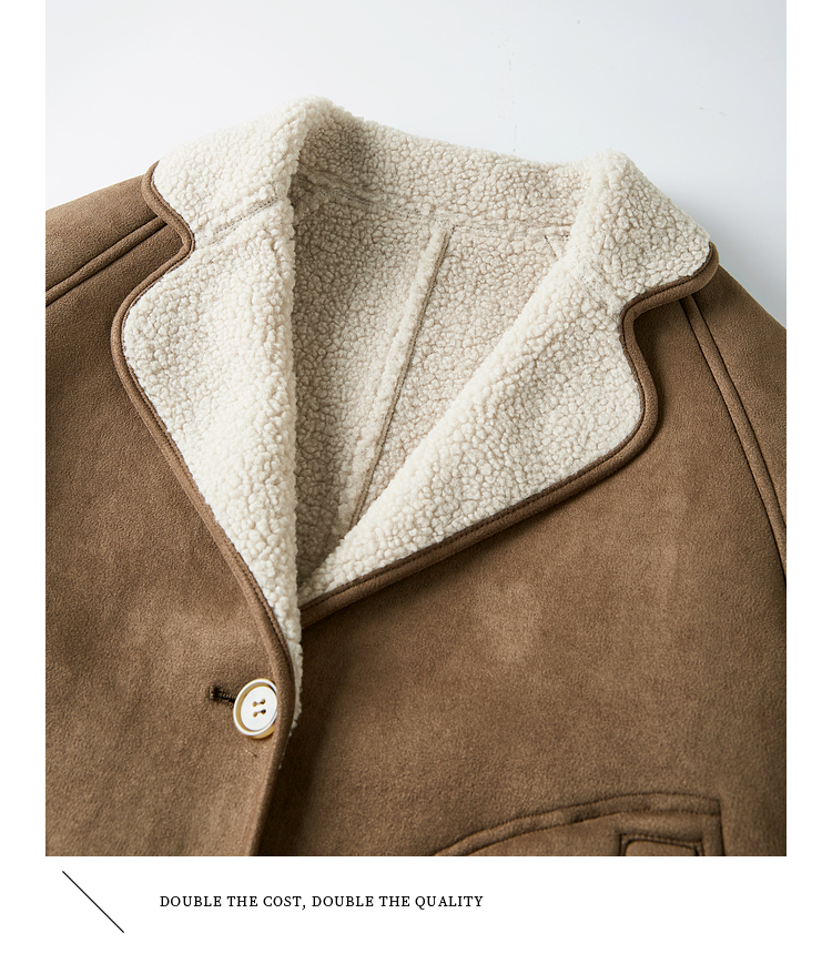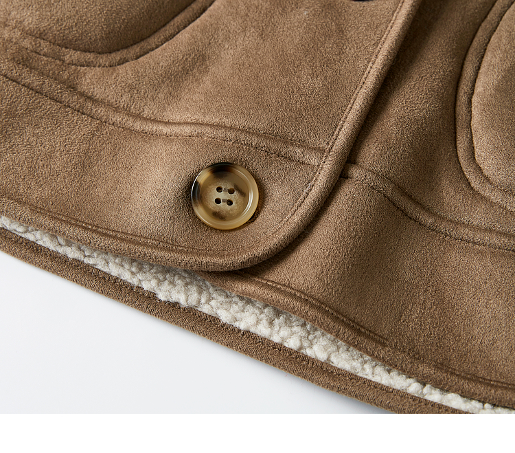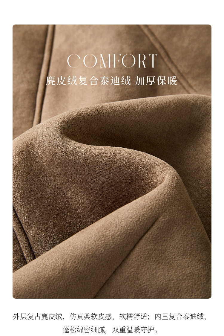 【年终特卖】熙世界美拉德麂皮绒短外套冬季新款小个子加厚保暖皮毛一体大衣
