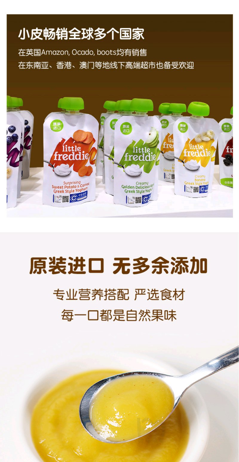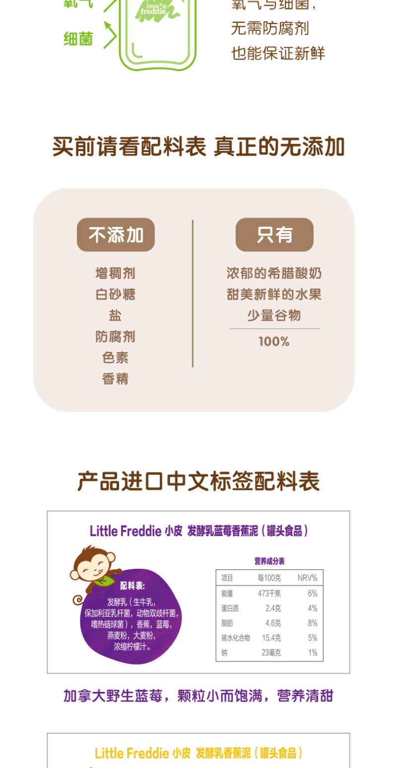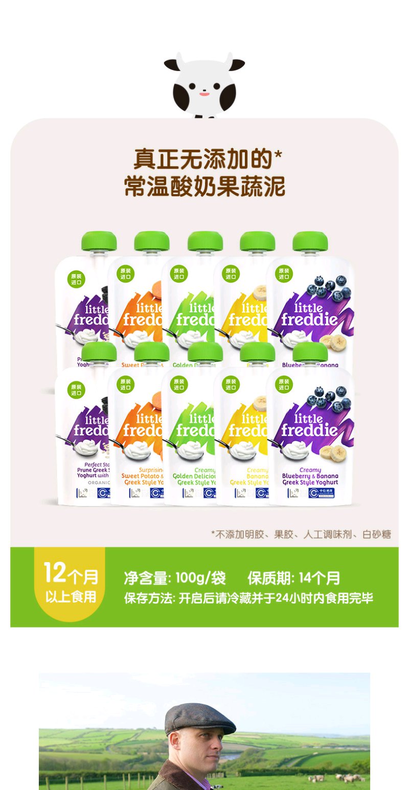 (超值)英国小皮little freddie 欧洲原装进口多种口味果蔬泥 酸奶谷物水果泥