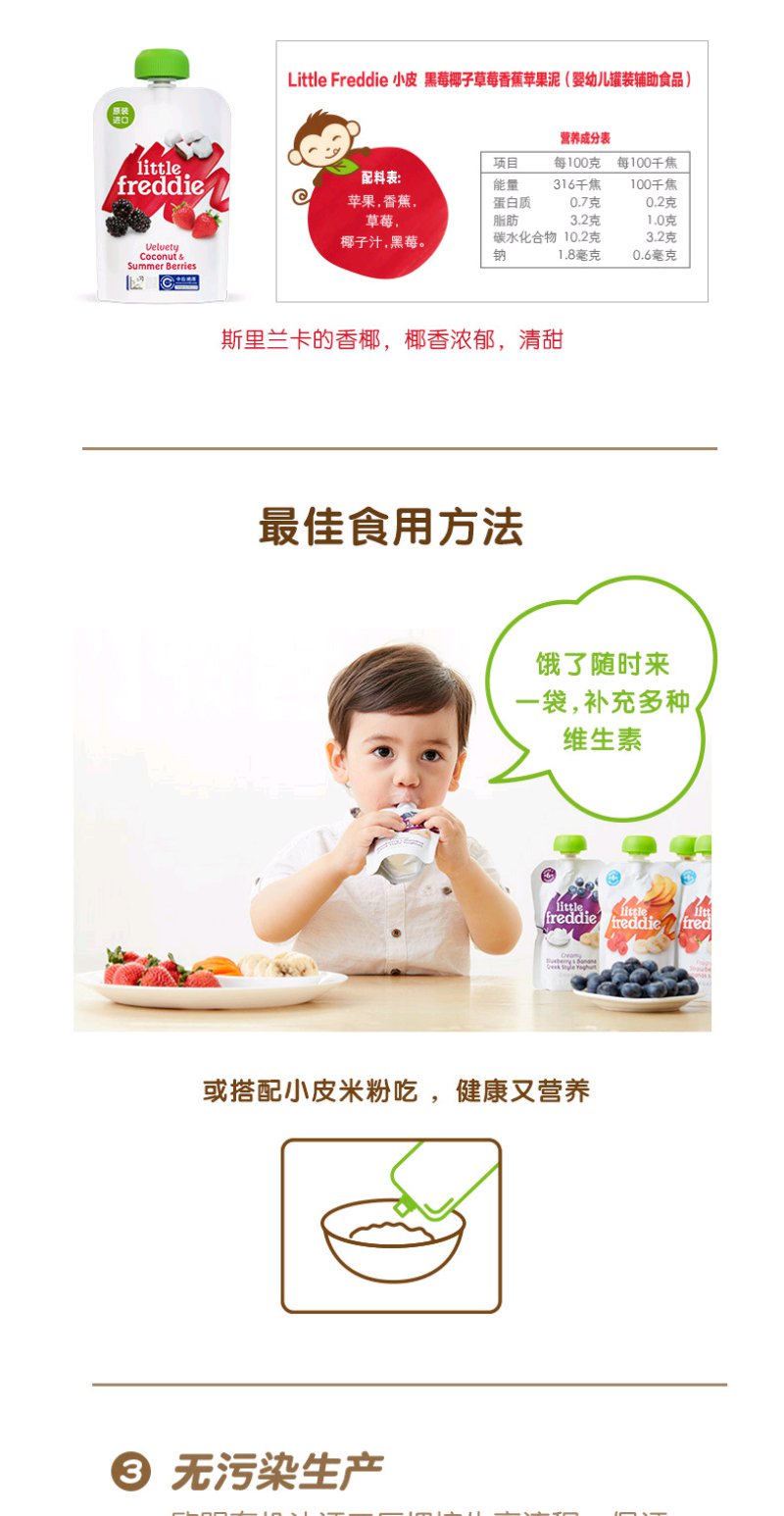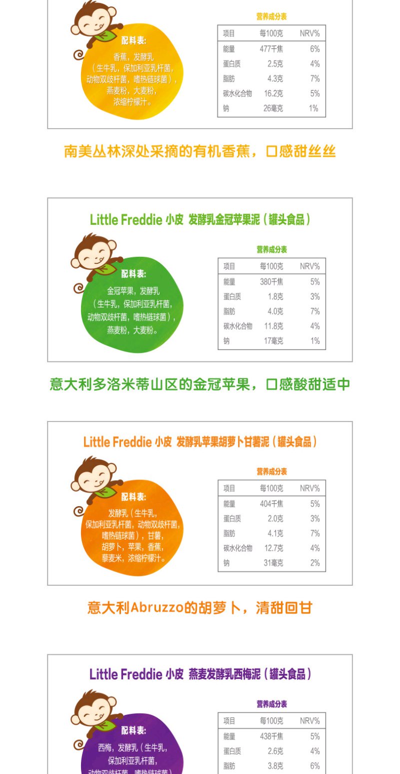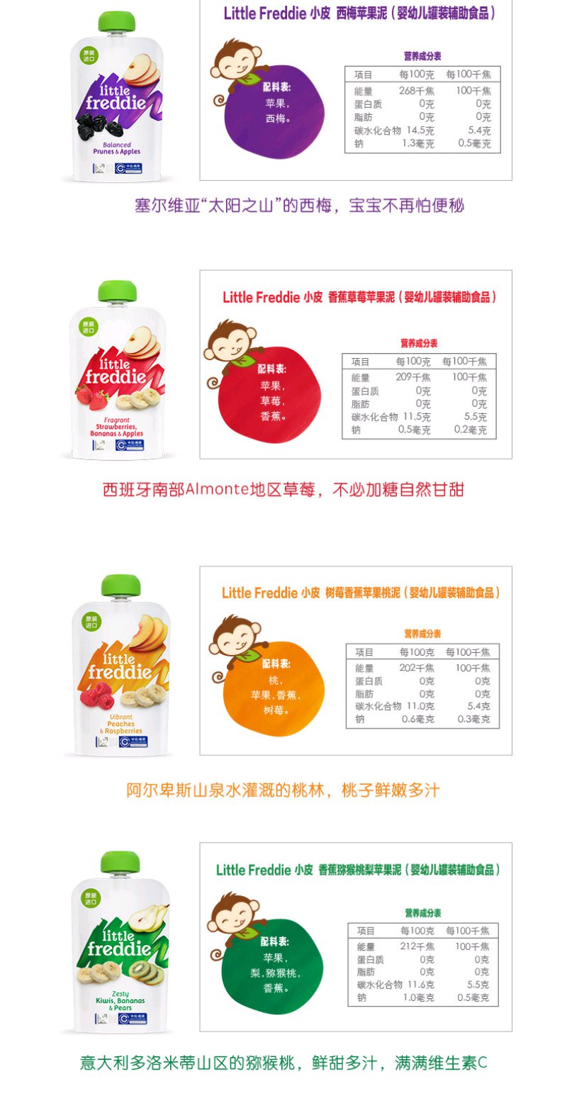 (超值)英国小皮little freddie 欧洲原装进口多种口味果蔬泥 酸奶谷物水果泥