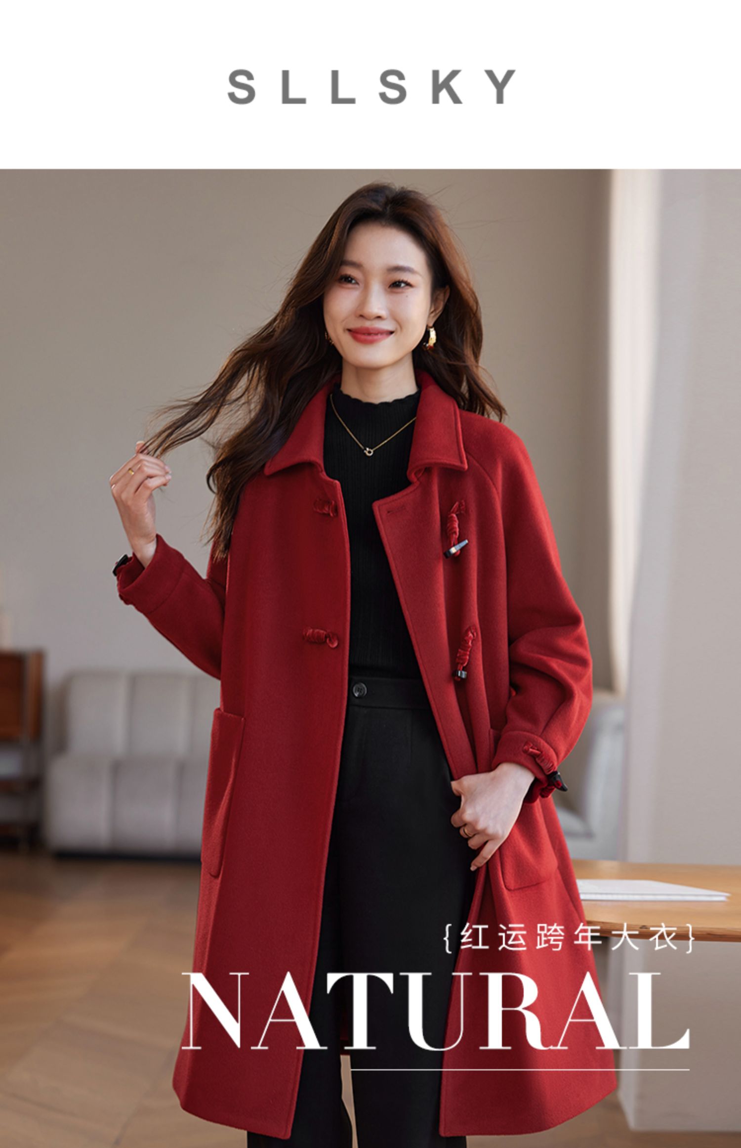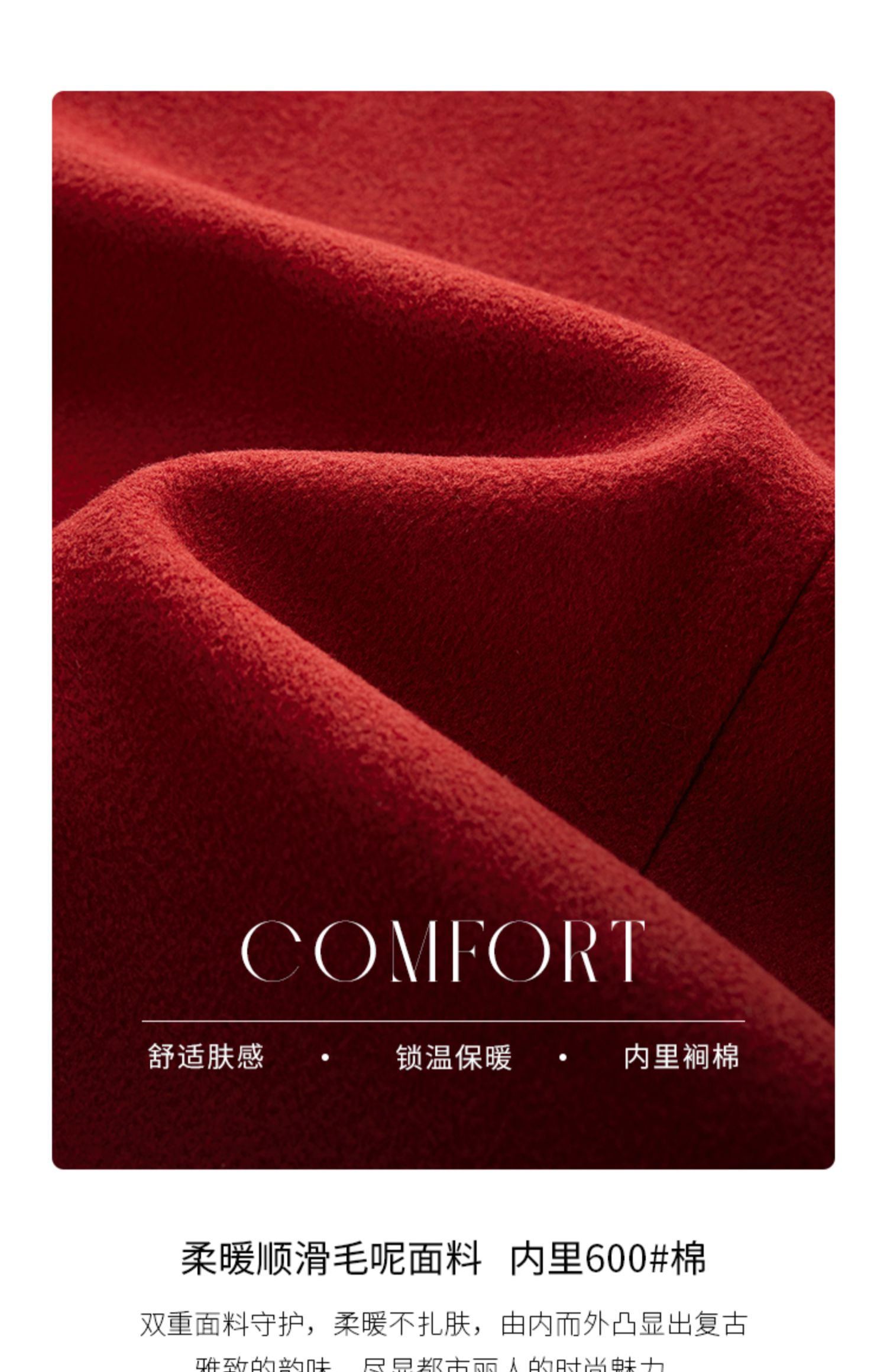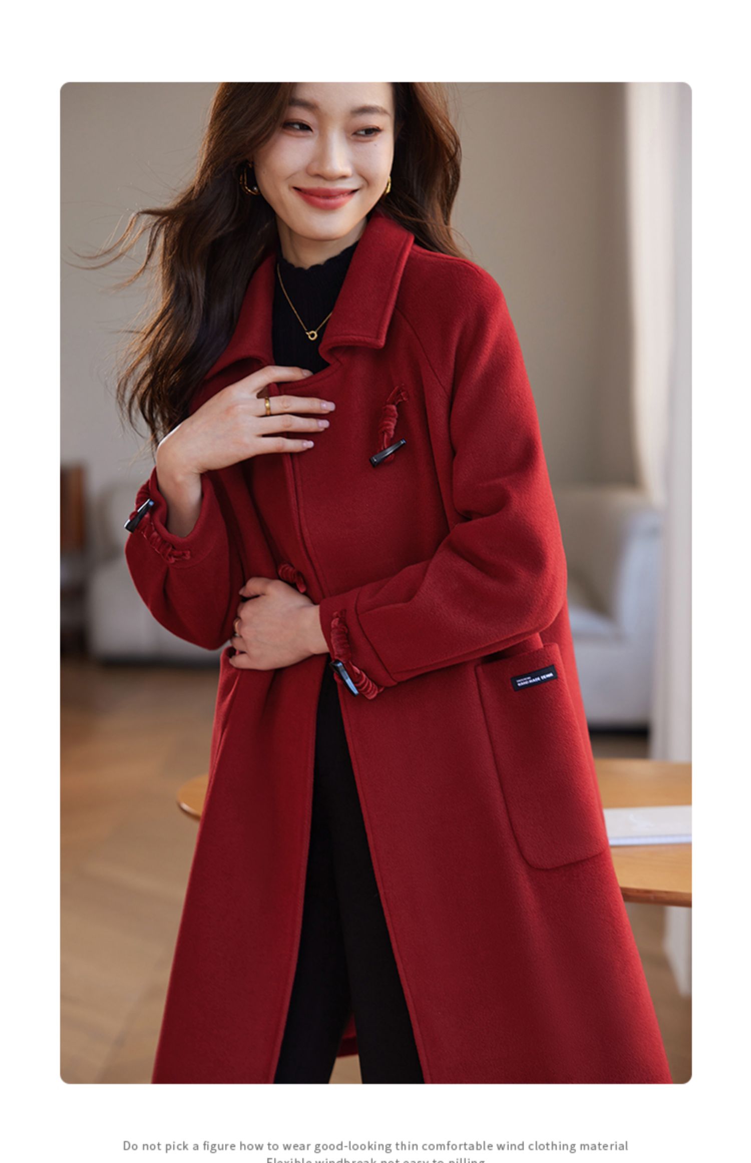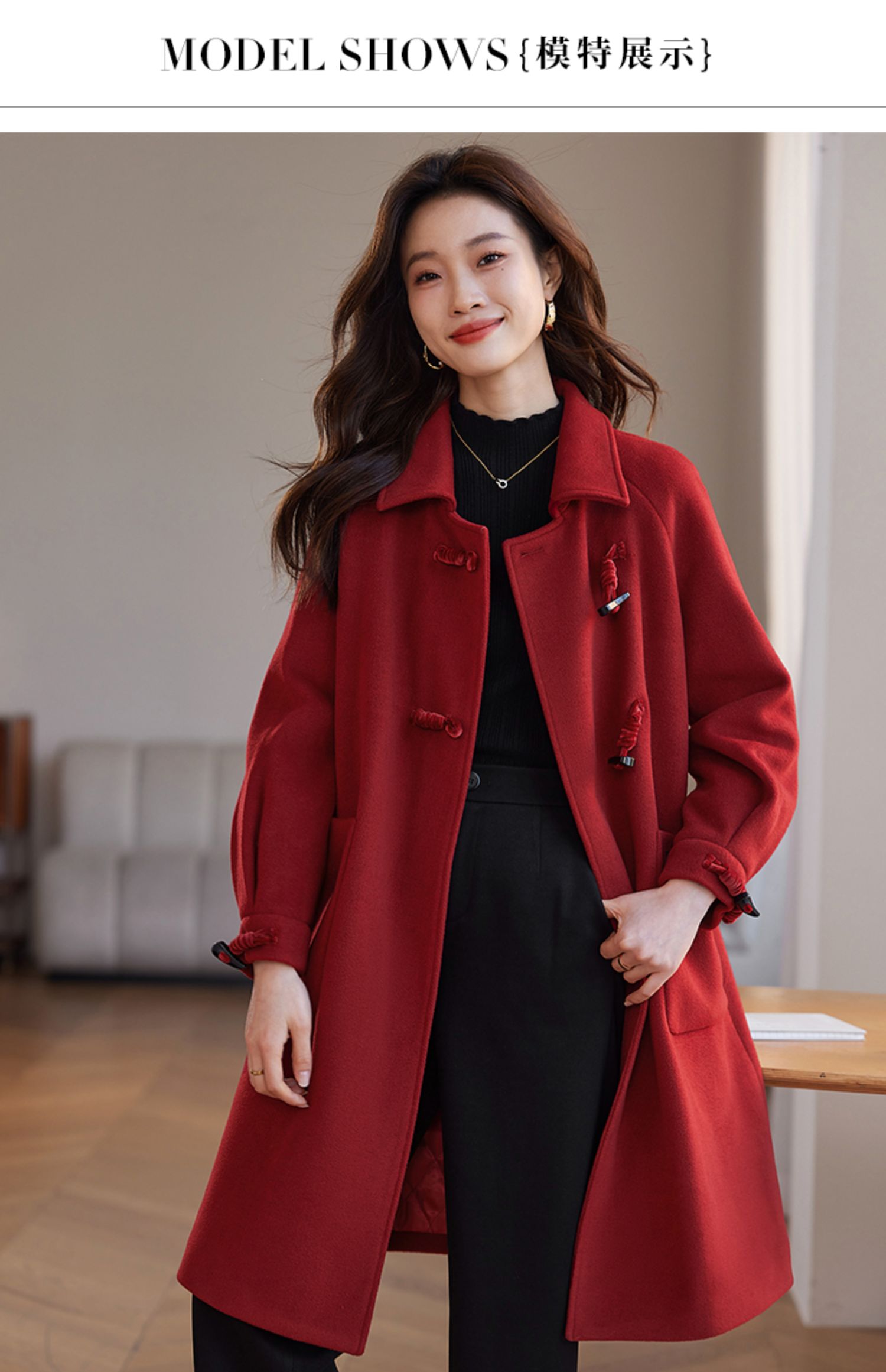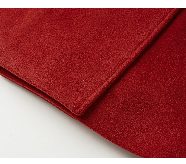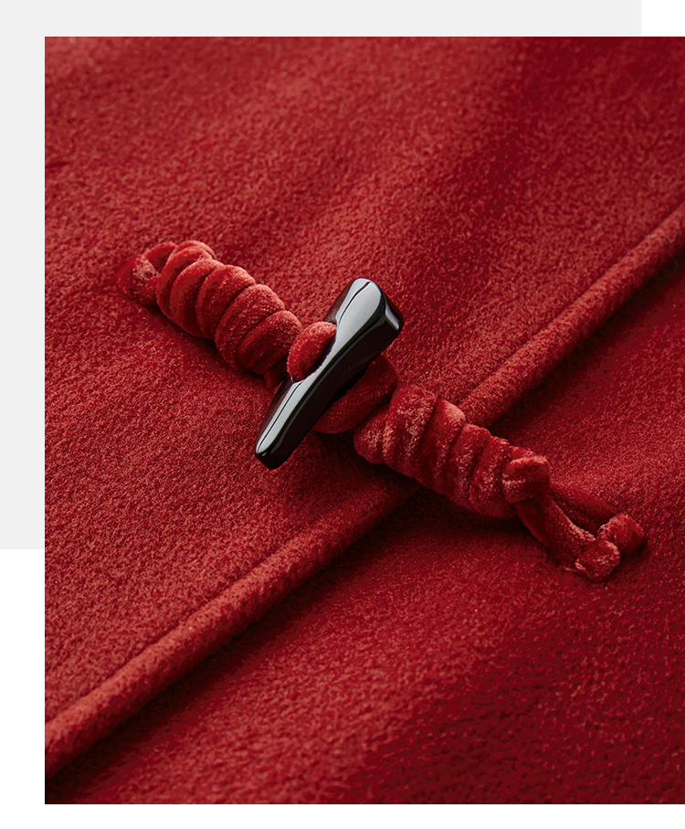 【年终特卖】熙世界红色牛角扣毛呢大衣设计感秋冬款加厚夹棉呢子外套中长款