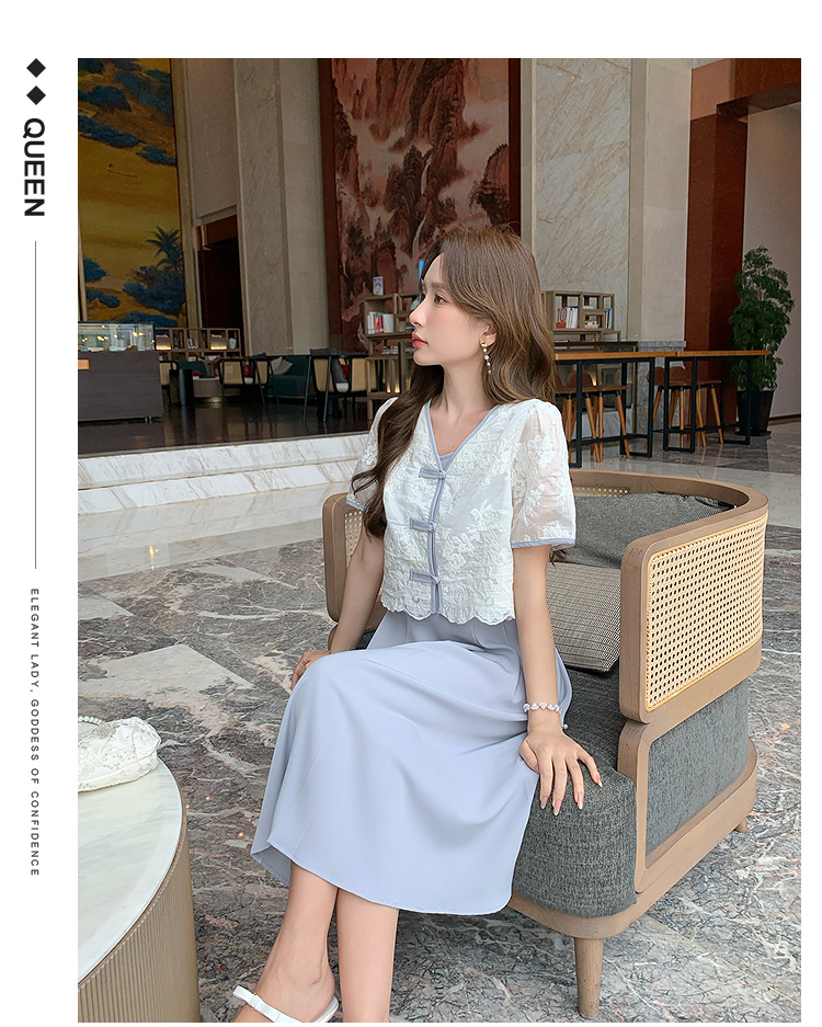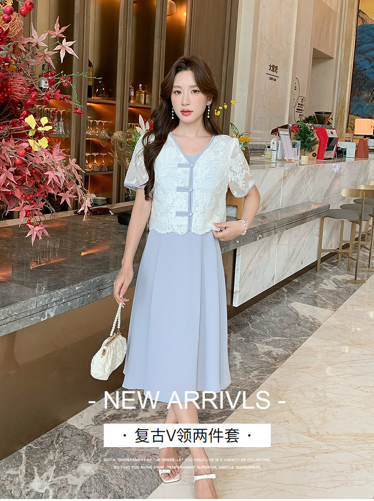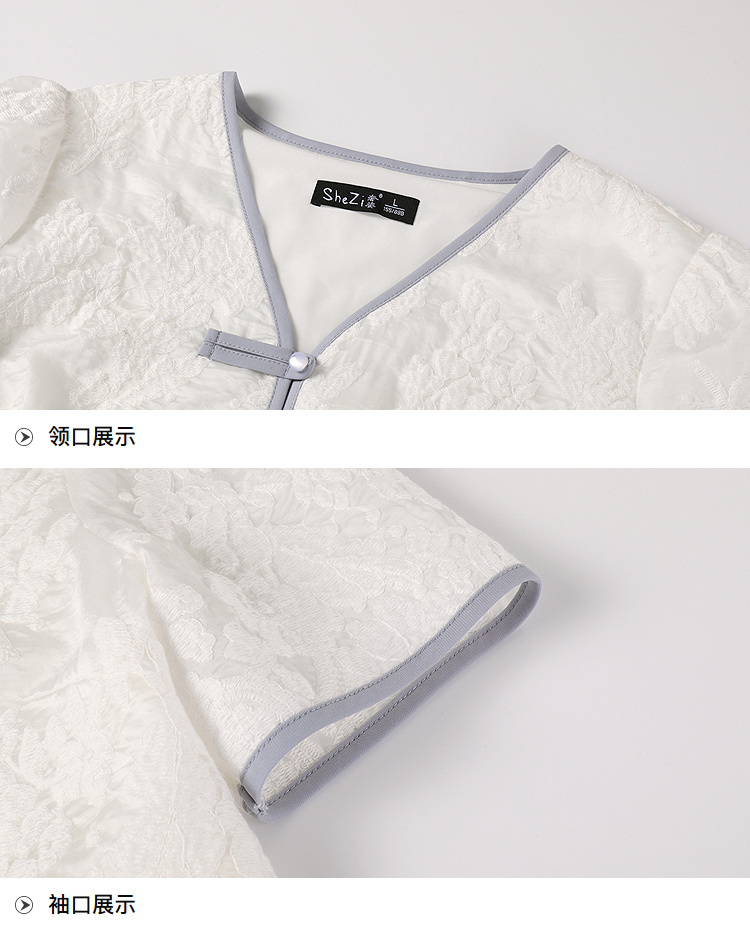 奢姿大码女装2025夏季复古气质V领两件套胖妹妹国风新中式套装9952953421
