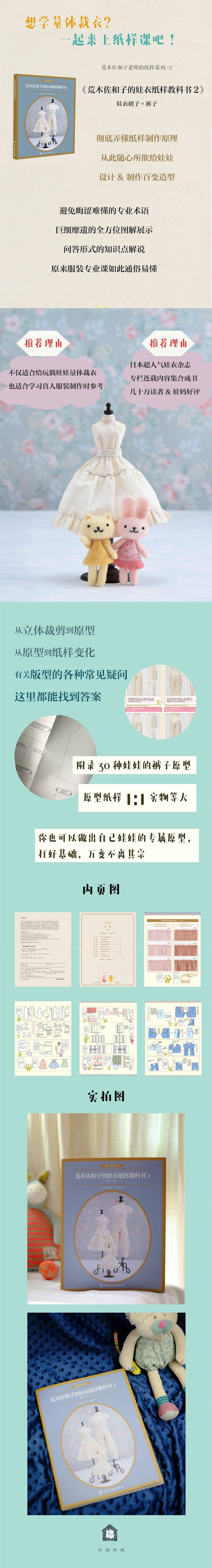 越来越多的娃娃收藏爱好者想亲手给自己的娃娃设计并制作衣服,现成的娃衣版型不一定正好符合自己的娃娃体型。本书堪称是学裁剪缝纫从新手到高手的工具书式的教科书。就连学了几年服装的科班出身的小编读完这本书,也收益颇深,虽然是一本娃衣纸样教科书,但是很多细节讲解甚至超过了很多专业打版书。因为作者用很详细的图解来教学,没有很多专业的术语,让你一看就能明白服装制版的原理,学会了基础版型,然后再根据自己设计的款式再做各种各样的变化,什么款式都难不住自己了!书后还附录了作者制作出来的30种常见娃娃的裤子原型纸样,可供读者参考。你更可以根据学到的方法,给自己的娃娃制作出专属于自己的原型纸样,然后在原型基础上再去变化出各种款式的纸样。