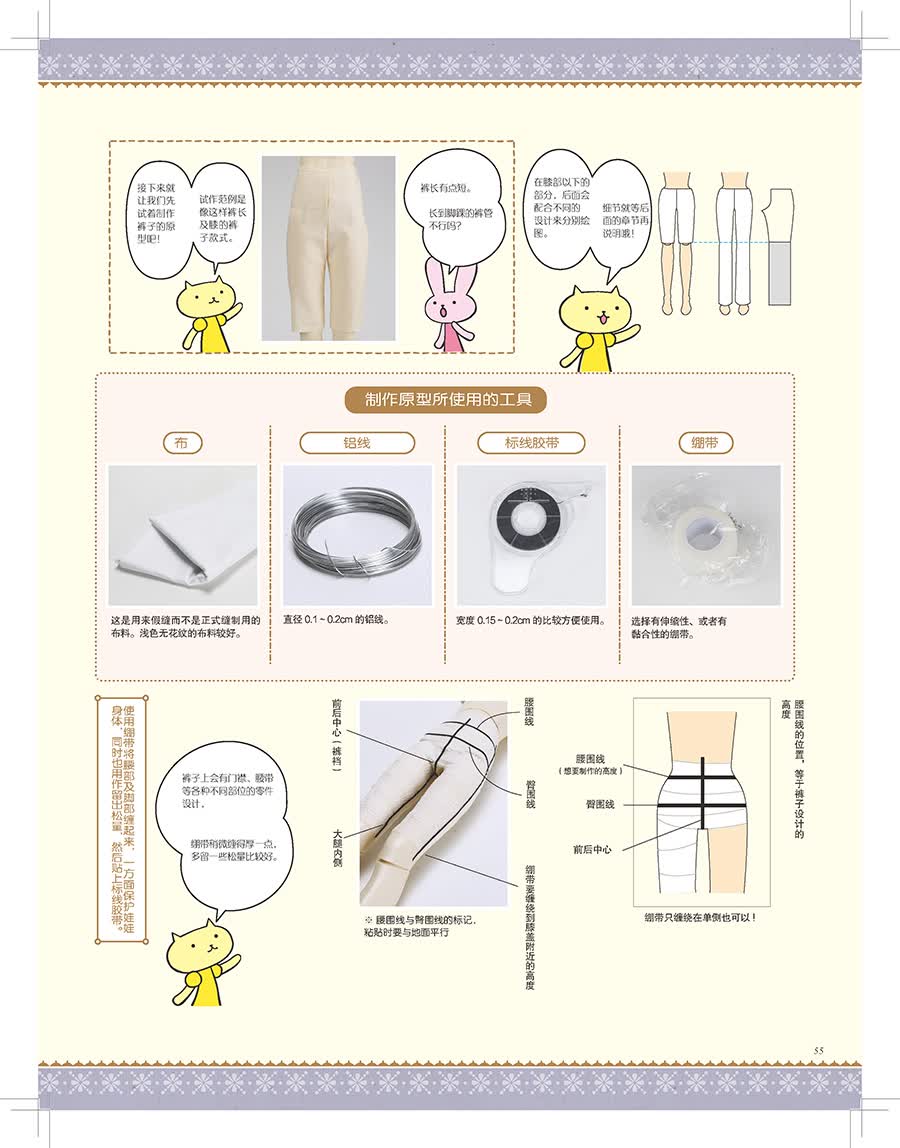 本书不同于一般的娃衣缝制教程,通过在娃娃上进行立体裁剪,来展示纸样的制作原理。本书为裙子和裤子的立体裁剪和纸样制作、纸样变化专业教程书,对各种技术基础知识和要点都有详细讲解,并且对初学者常常发生疑问的地方采用一问一答样式,加深了学习印象。本书非常适合想给自己娃娃量体裁衣的娃娃爱好者,给娃娃设计好款式后,就可以像专业版型师一样,做出自己娃娃专属的原型纸样,并且可以根据纸样原理,在原型纸样的基础上,调整细节设计、缩放尺寸等,再也不用担心看到好看的款式,但是纸样尺寸不适合自己的娃娃了。本书尽量不使用复杂难懂的专业术语,但是对每个细节要点的讲解都一丝不苟,很多知识点完全适用真人服装,所以也适合想给自己做衣服的读者参考。